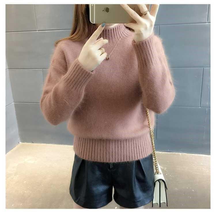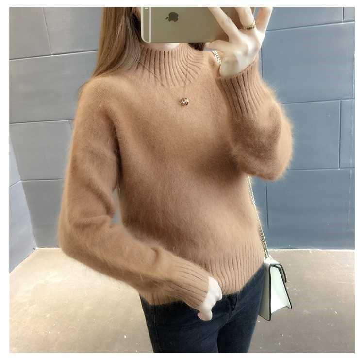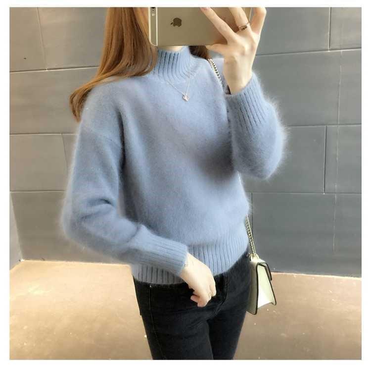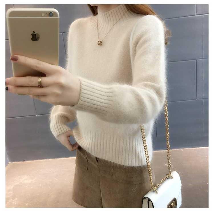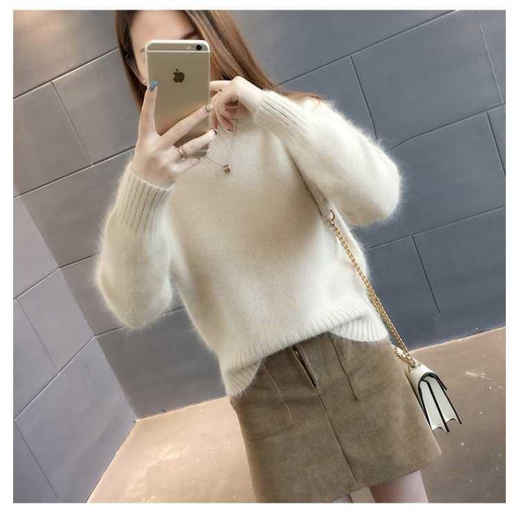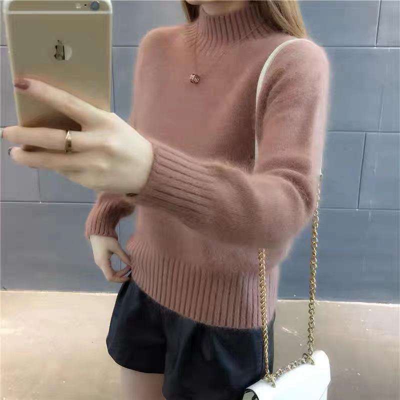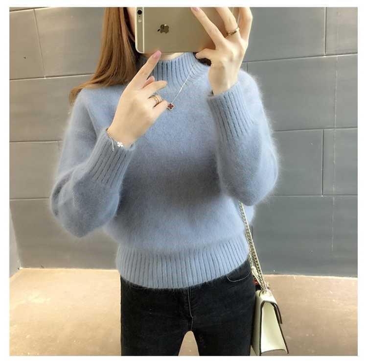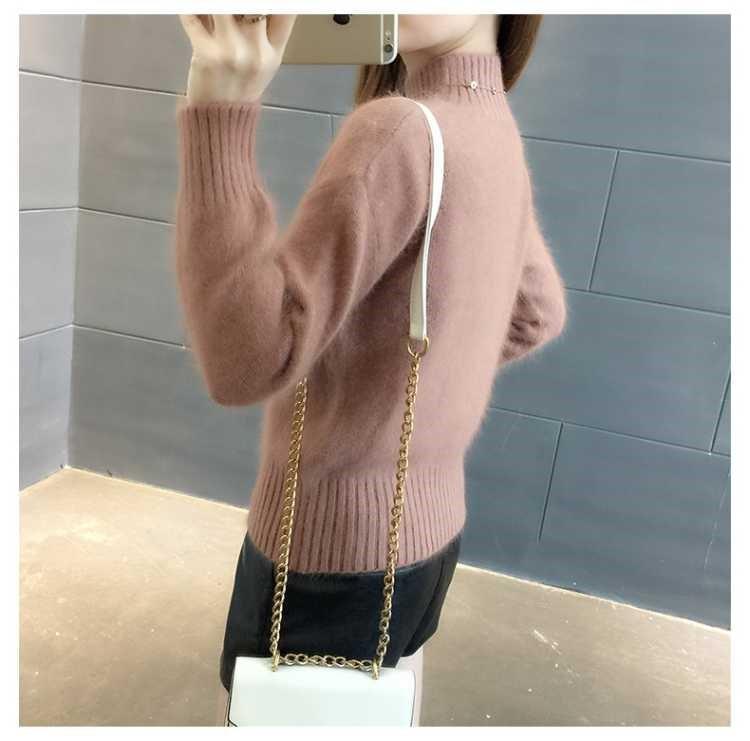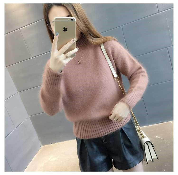[탈모 없음] 밍크 벨벳 스웨터 여성 가을 · 겨울 새 짧은 반쪽 높은 목 풀오버 니트베이스 셔츠스토어 가기