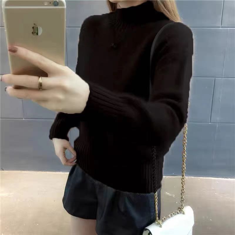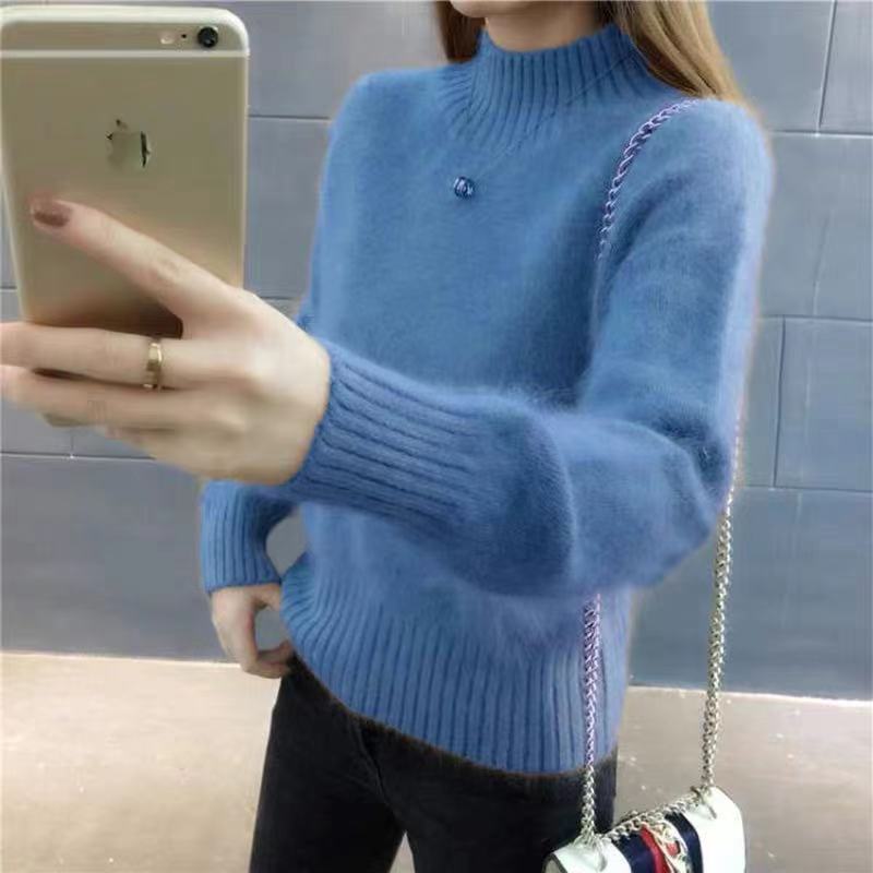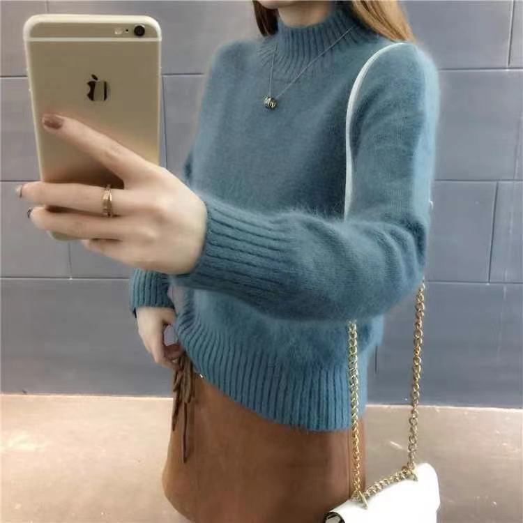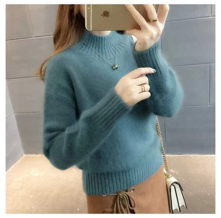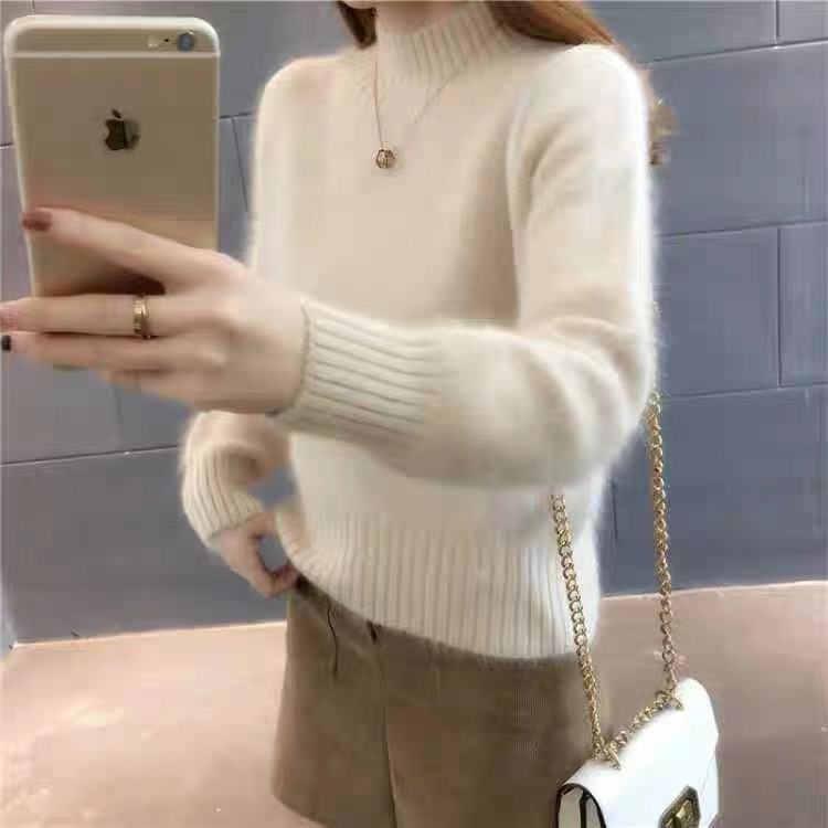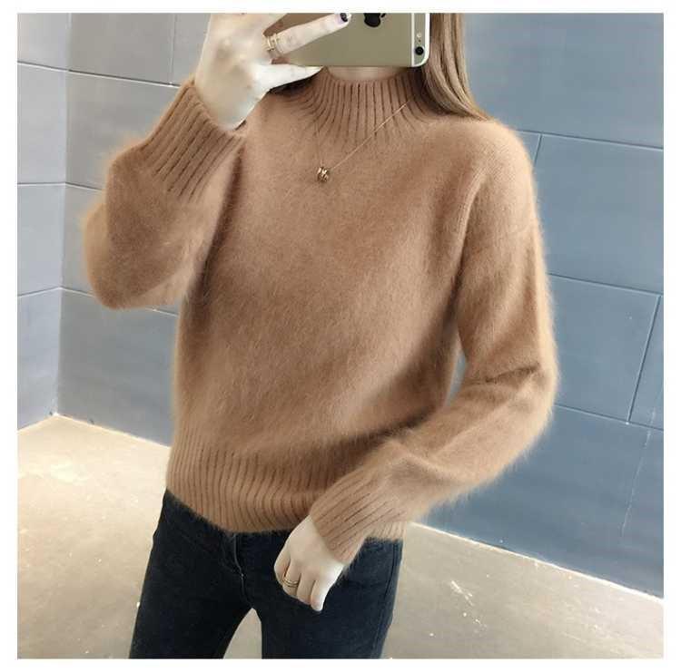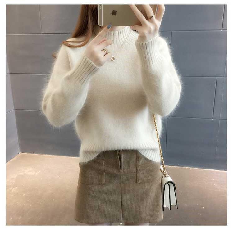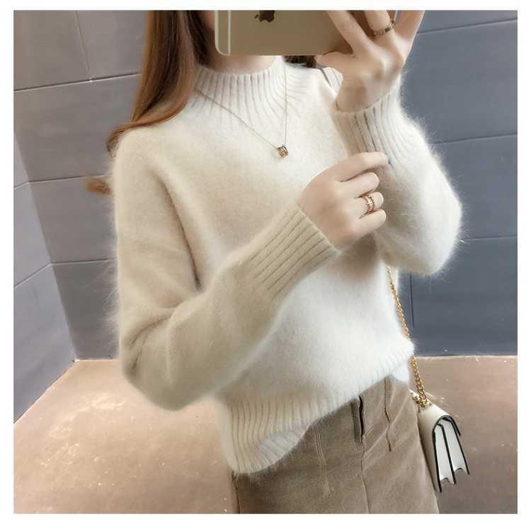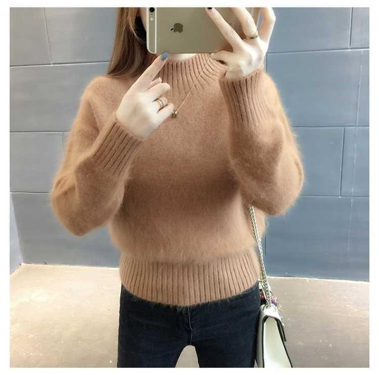 [탈모 없음] 밍크 벨벳 스웨터 여성 가을 · 겨울 새 짧은 반쪽 높은 목 풀오버 니트베이스 셔츠스토어 가기