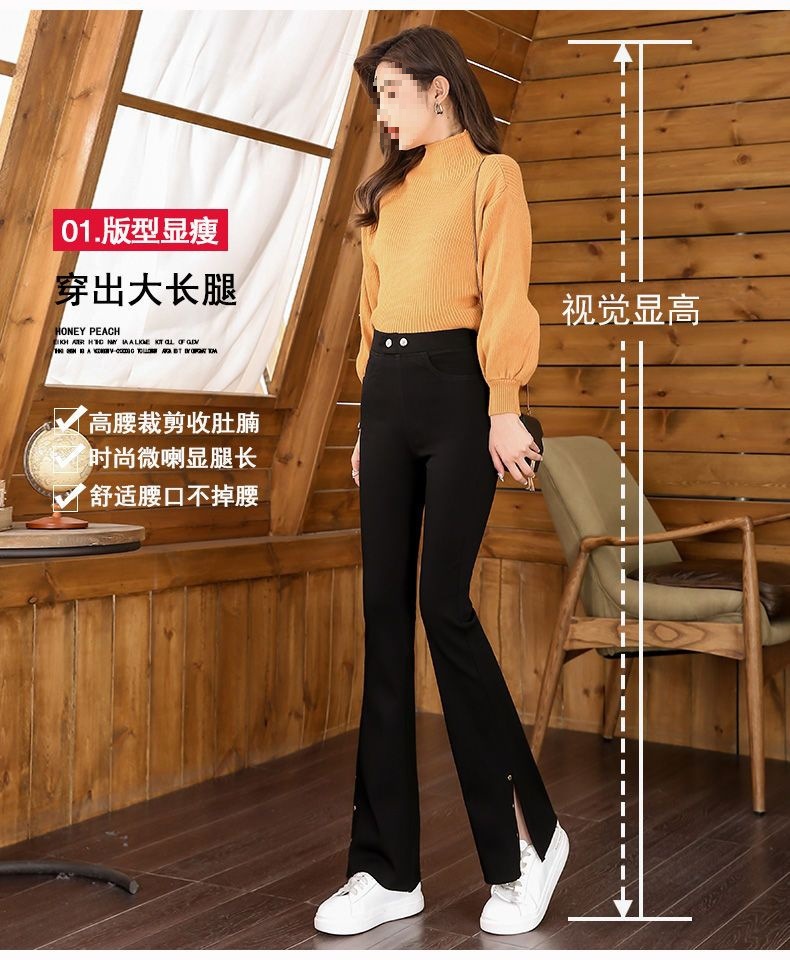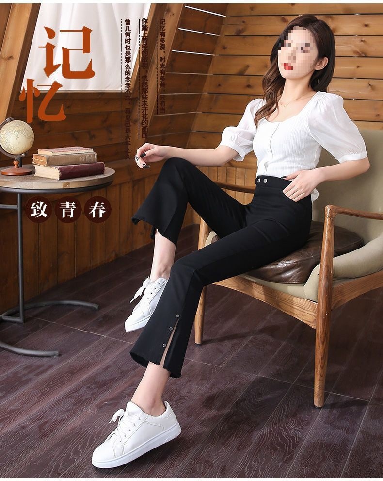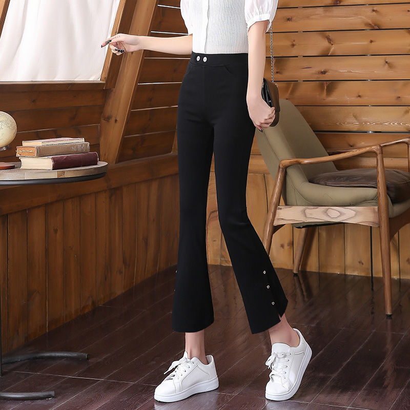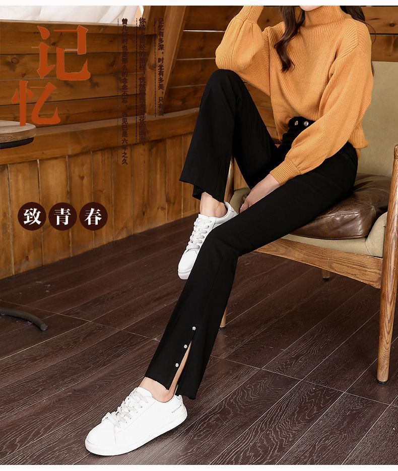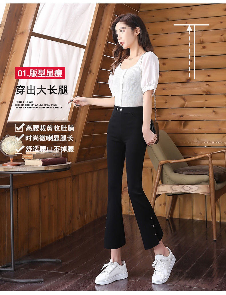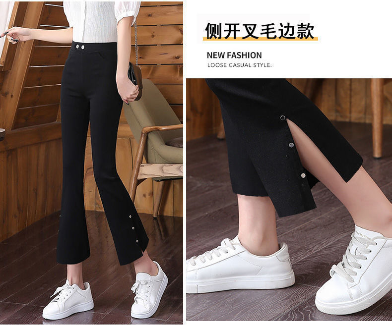 스플릿 플래 팬츠 여성의 높은 허리 슬리밍 작은 9 점 외부 착용베이스 와이드 레그 스프링 새로운 도착 마이크로 팬츠스토어 가기