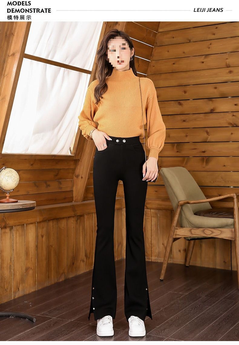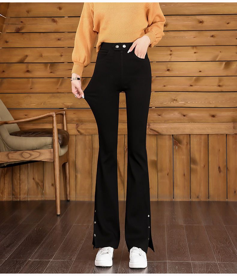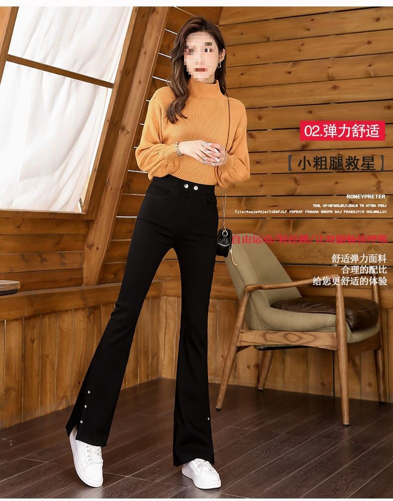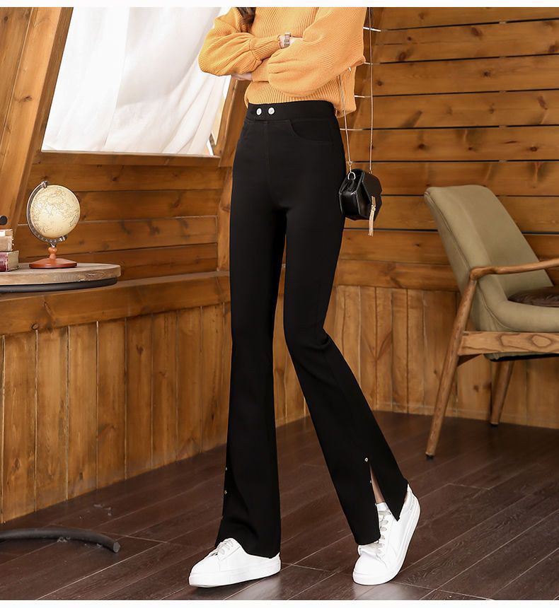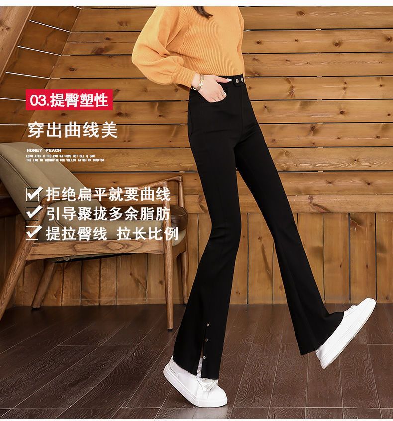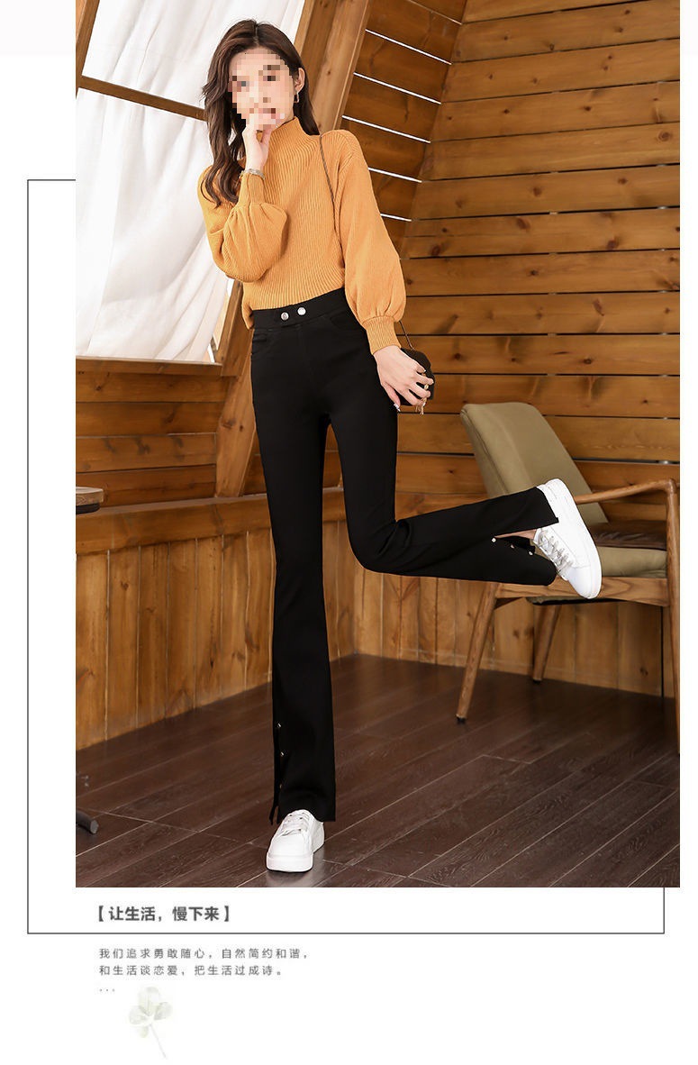 스플릿 플래 팬츠 여성의 높은 허리 슬리밍 작은 9 점 외부 착용베이스 와이드 레그 스프링 새로운 도착 마이크로 팬츠스토어 가기