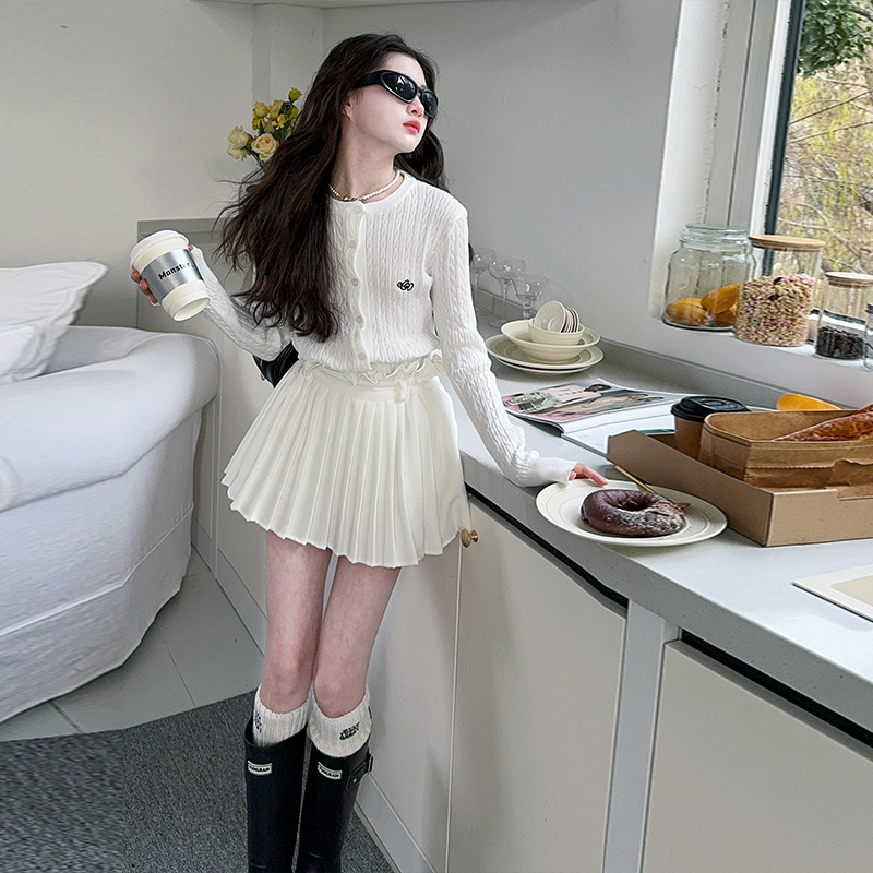 여자 대학 스타일 세트 2025 봄 새로운 니트 백킹 셔츠 주름 치마 2 조각 어린이 대외 무역 아동복 세트스토어 가기