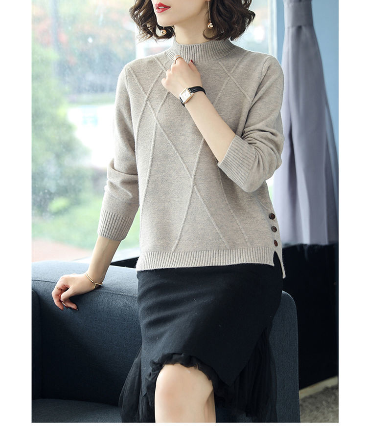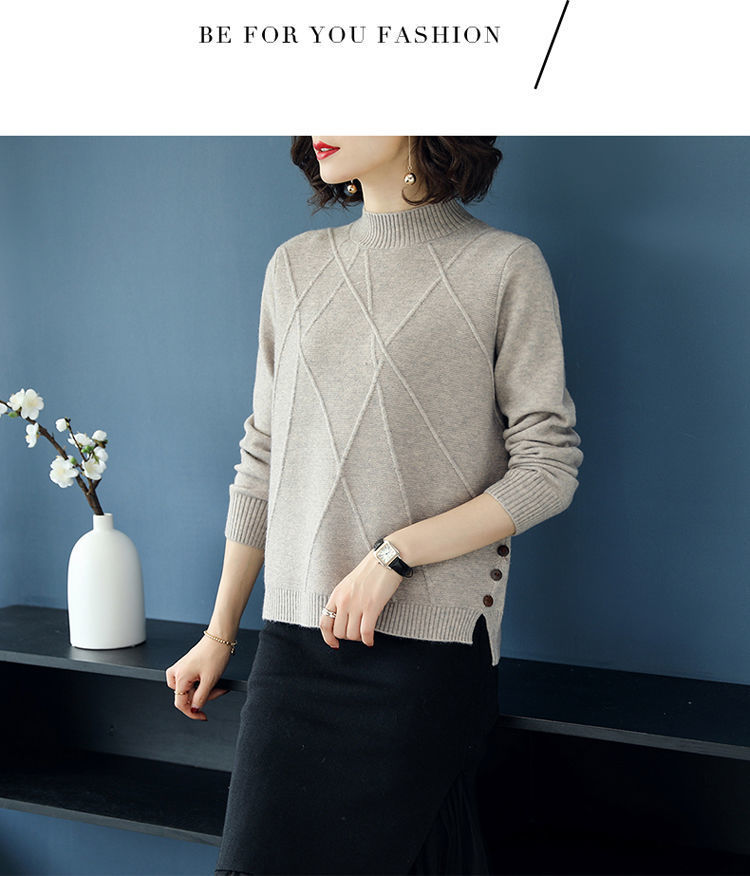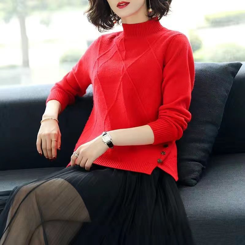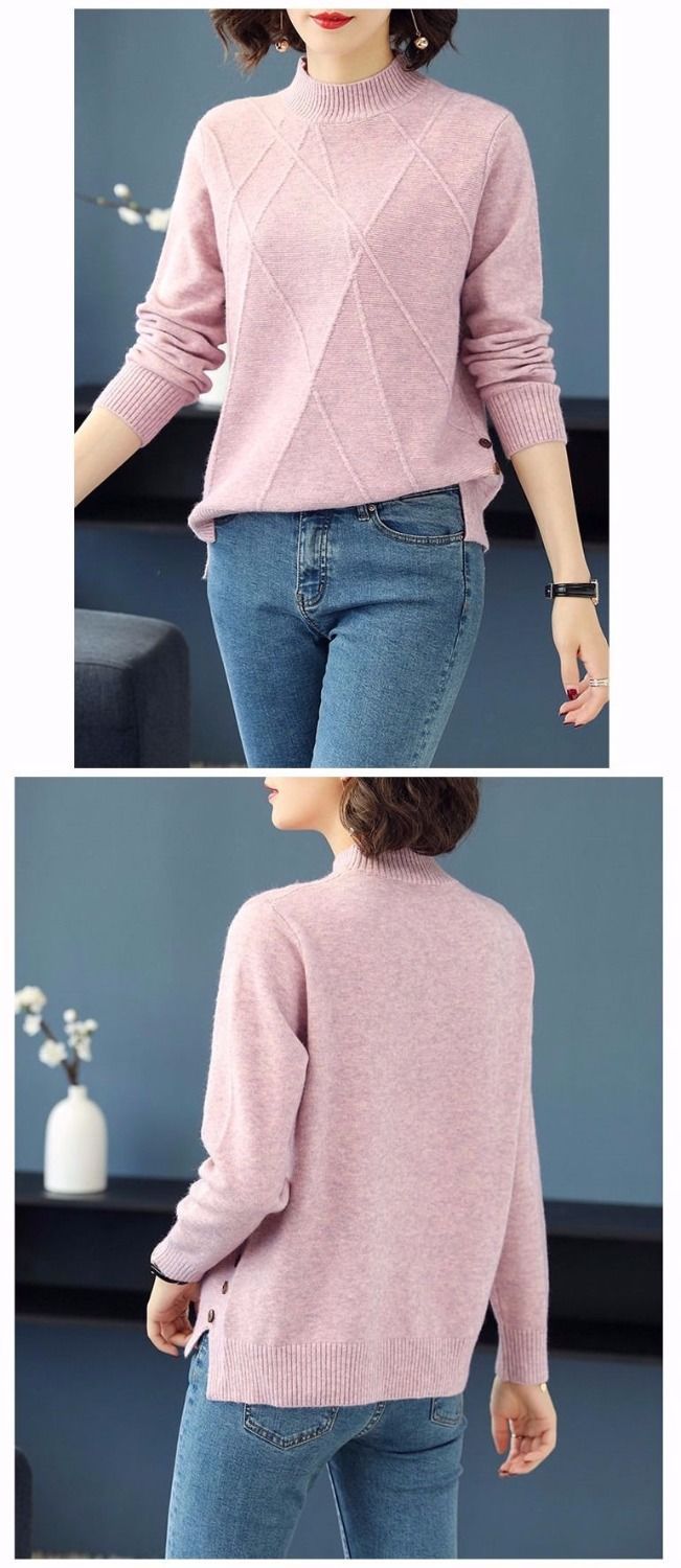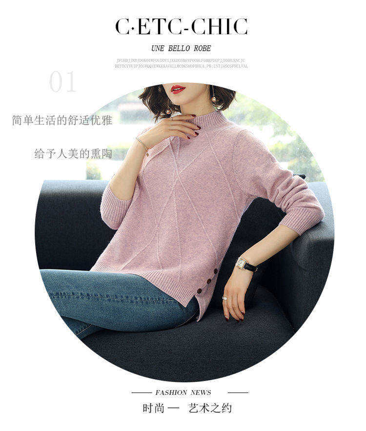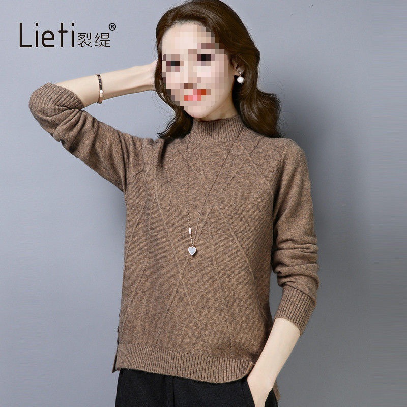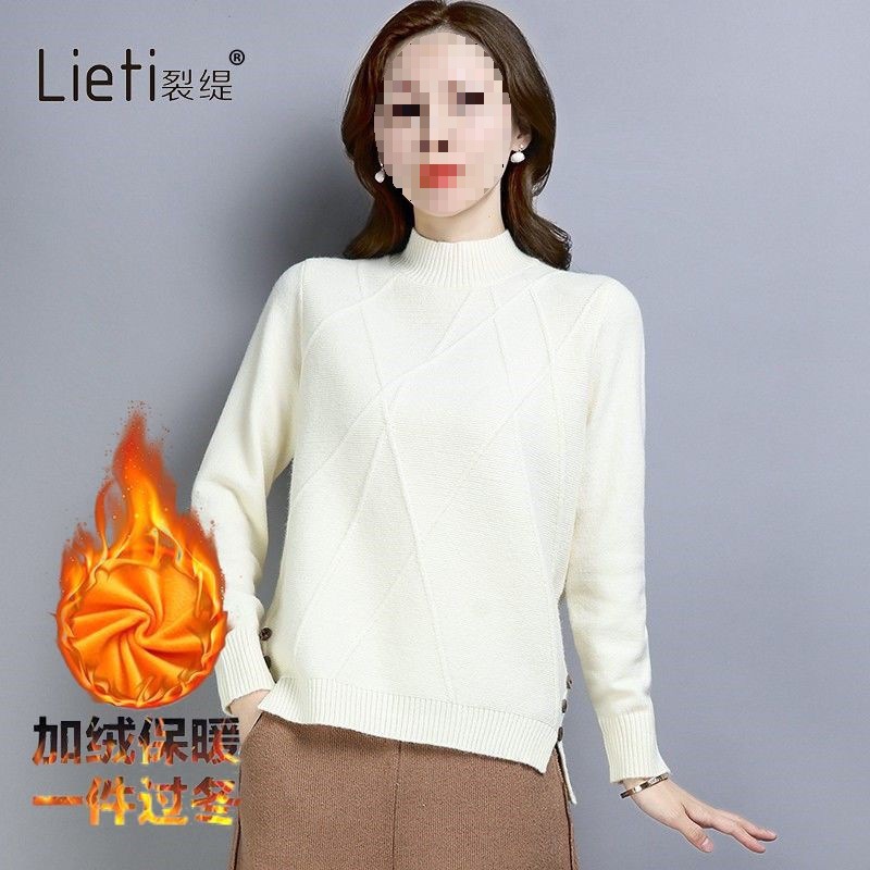 기모/아니 기모 짧은 반 터틀넥 두꺼운 스웨터 여성의 가을과 겨울 새로운 느슨한 한국 니트 기지 긴 소매스토어 가기