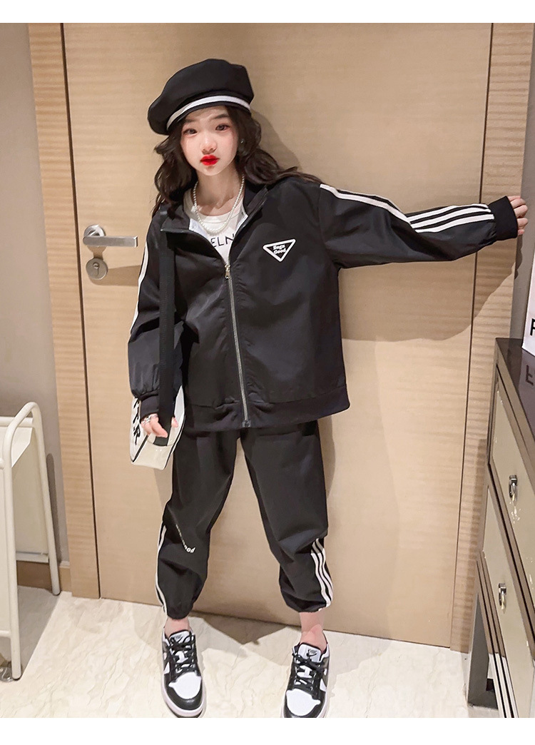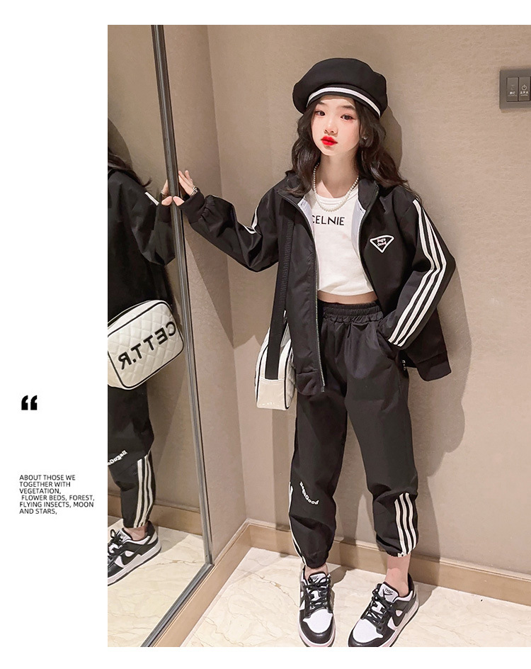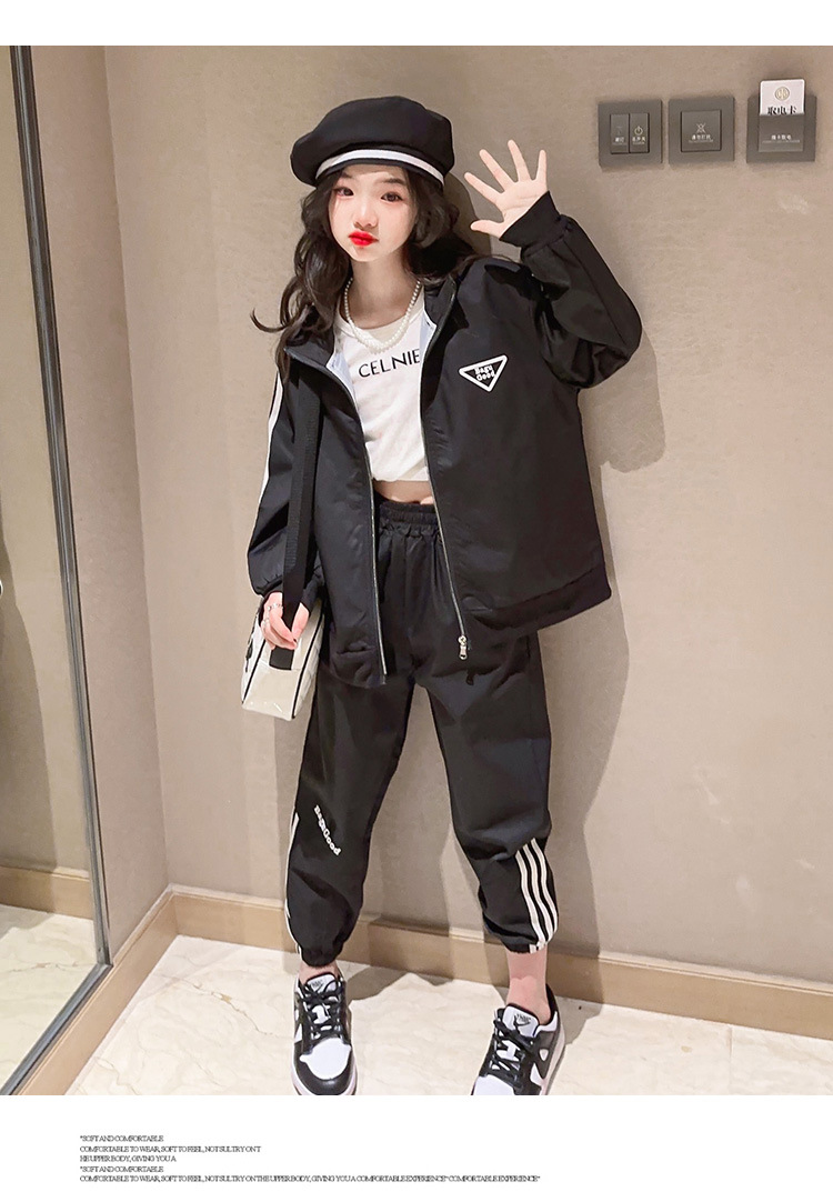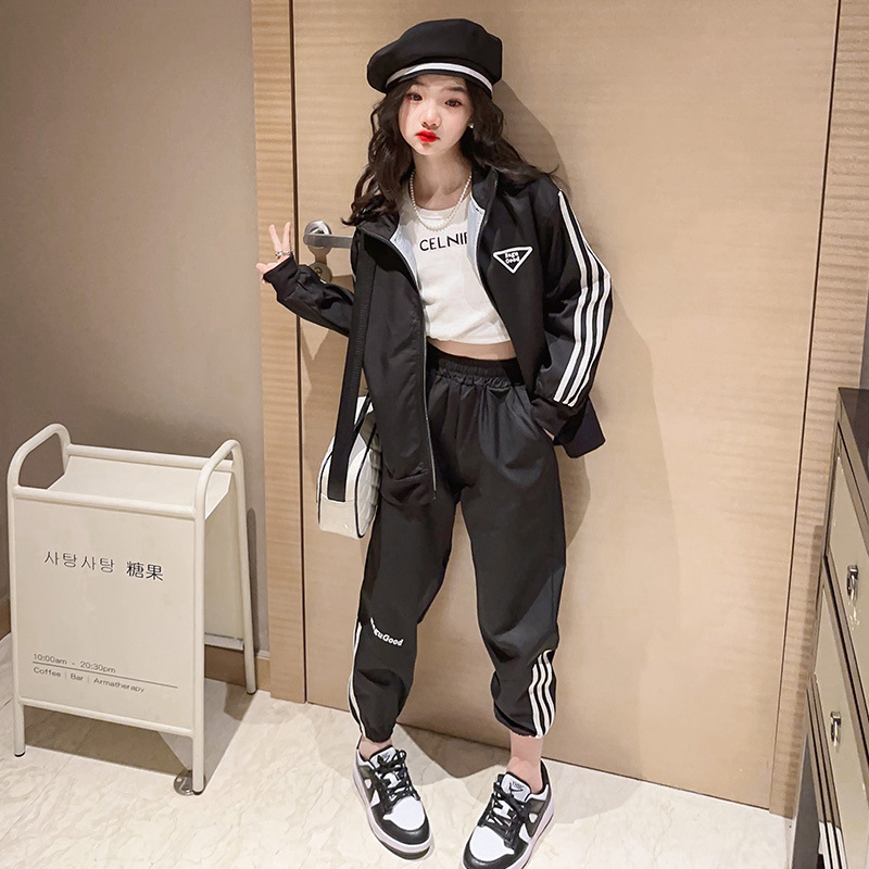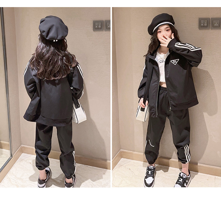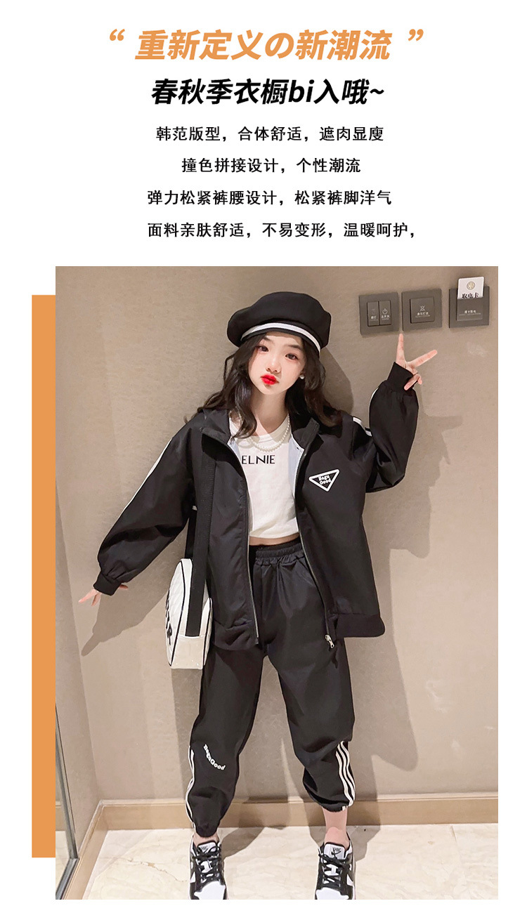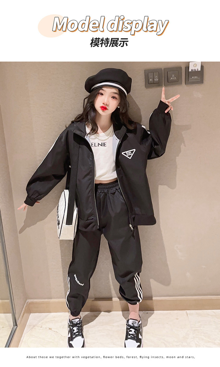 여자 세트 봄 어린이 착용 한국 스타일 어린이 스포츠 인터넷 인기있는 느슨한 재킷 학생 소녀 바지 Huzhou Zhili