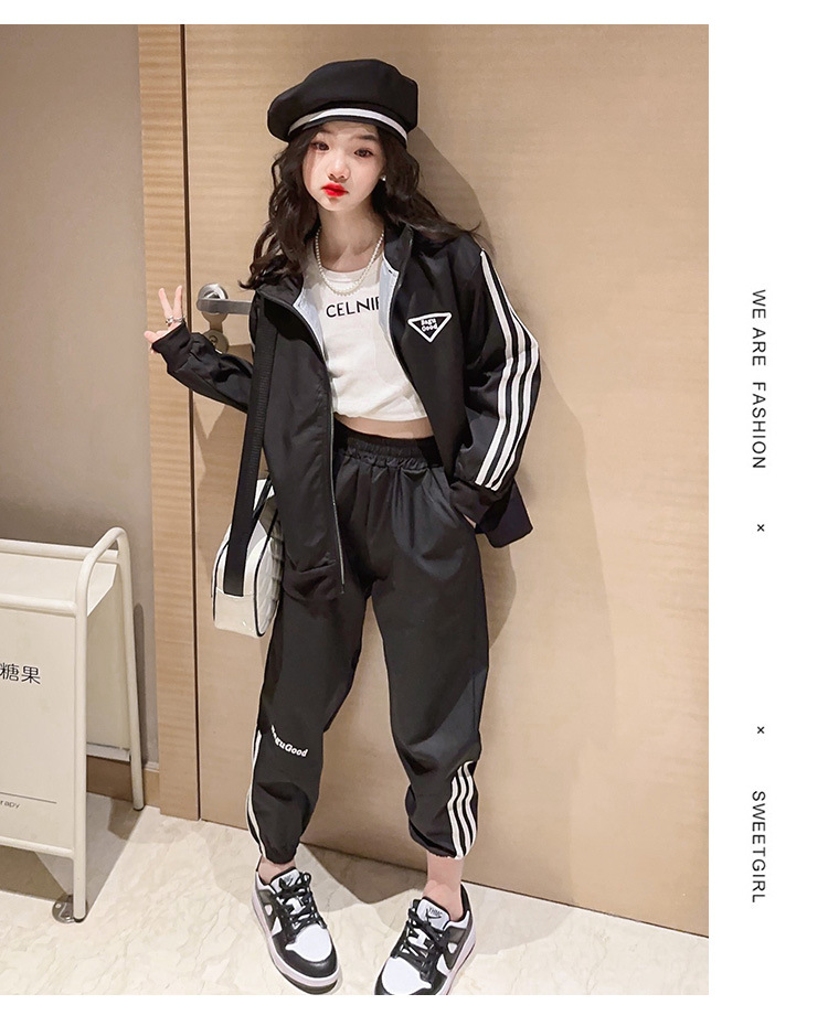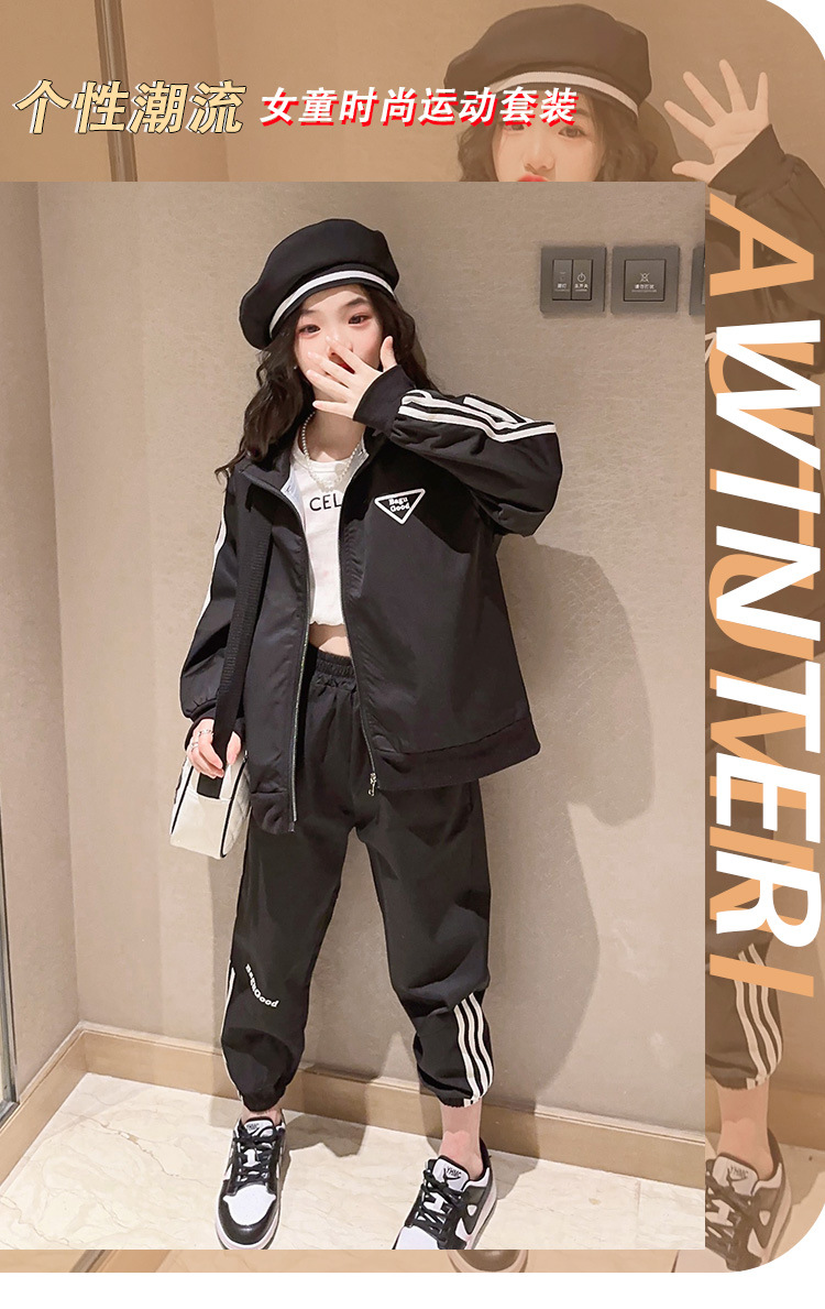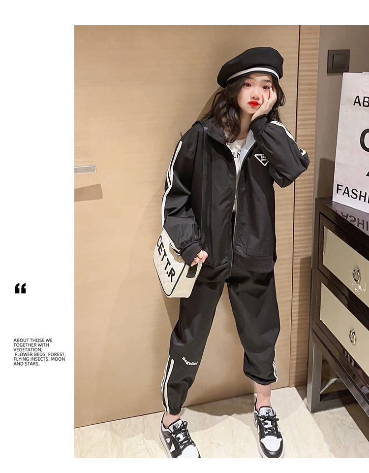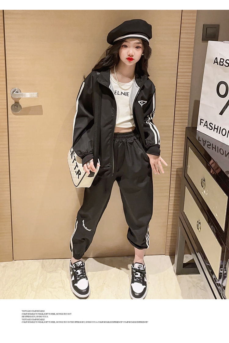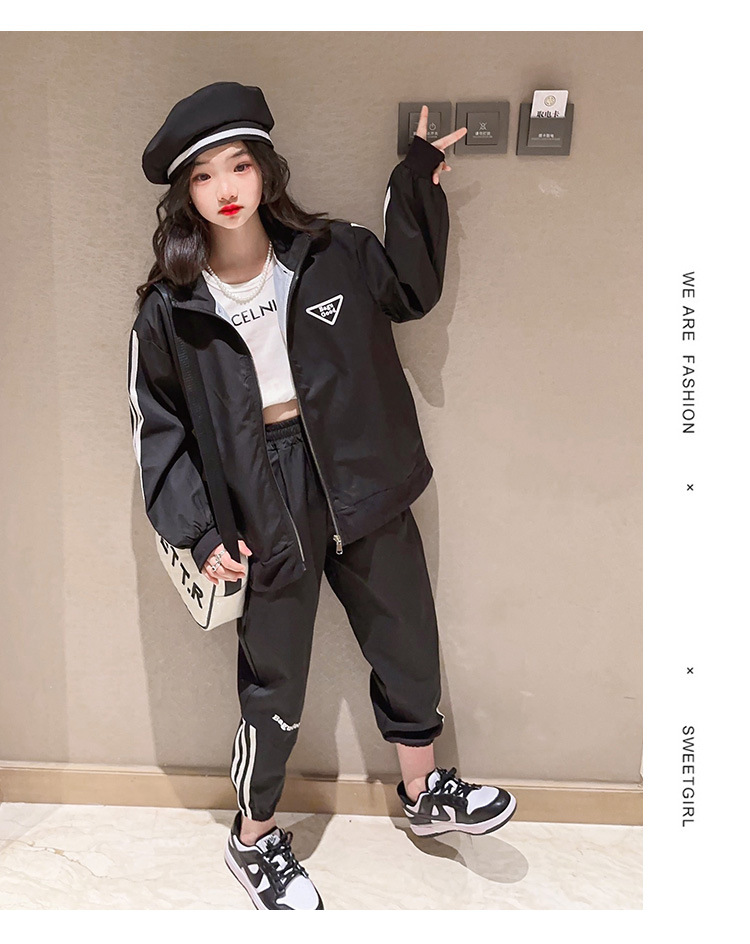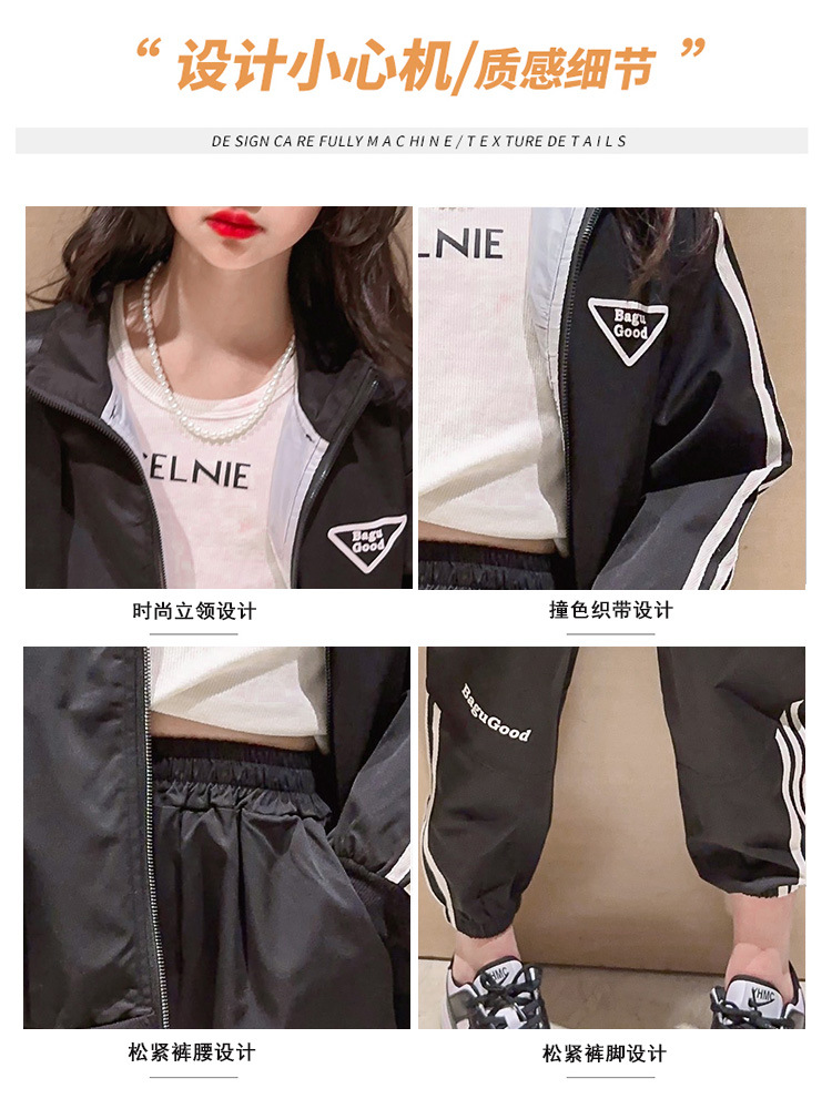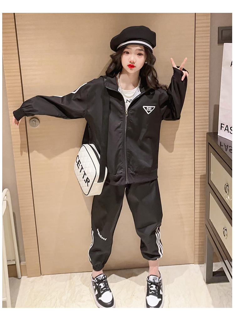 여자 세트 봄 어린이 착용 한국 스타일 어린이 스포츠 인터넷 인기있는 느슨한 재킷 학생 소녀 바지 Huzhou Zhili