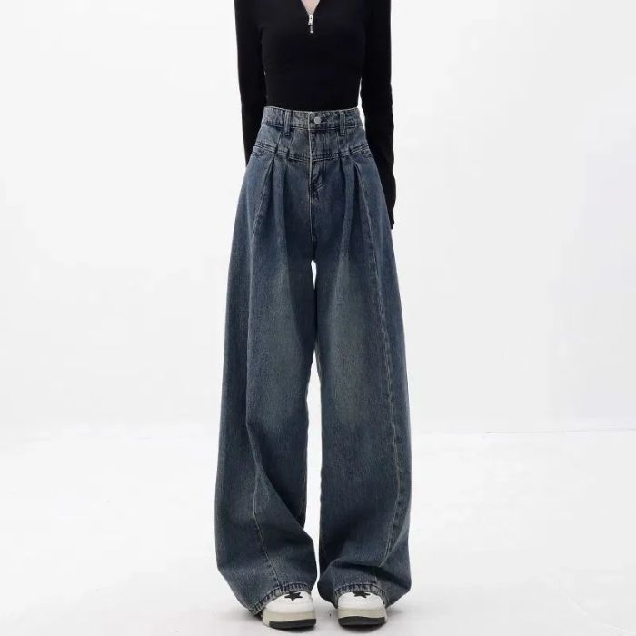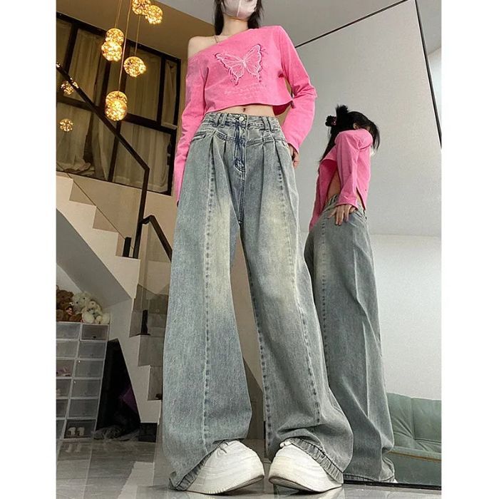 아메리칸 스타일 블랙 그레이 와이드 레그 청바지 여성의 봄과 여름 새로운 느슨한 높은 허리 올매치 스트레이트 트렌디 바지스토어 가기