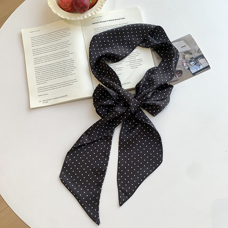 설문 조사 도트 작은 실크 스카프 여름 올 매치 Ins 얇은 좁은 긴 스카프 한국 스타일 빈티지 리본 헤어 밴드 타이 백