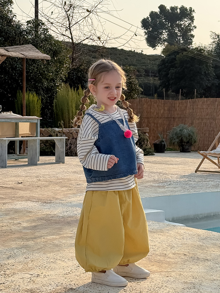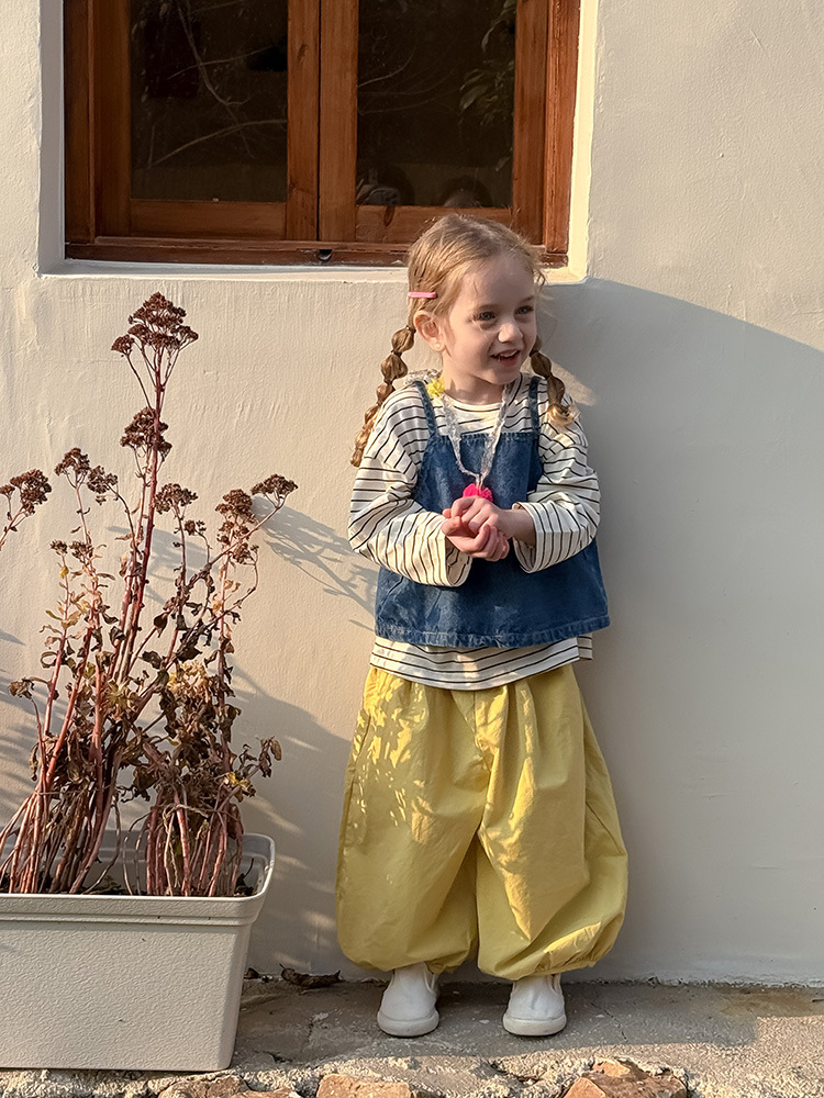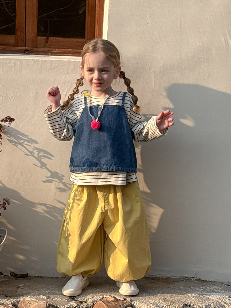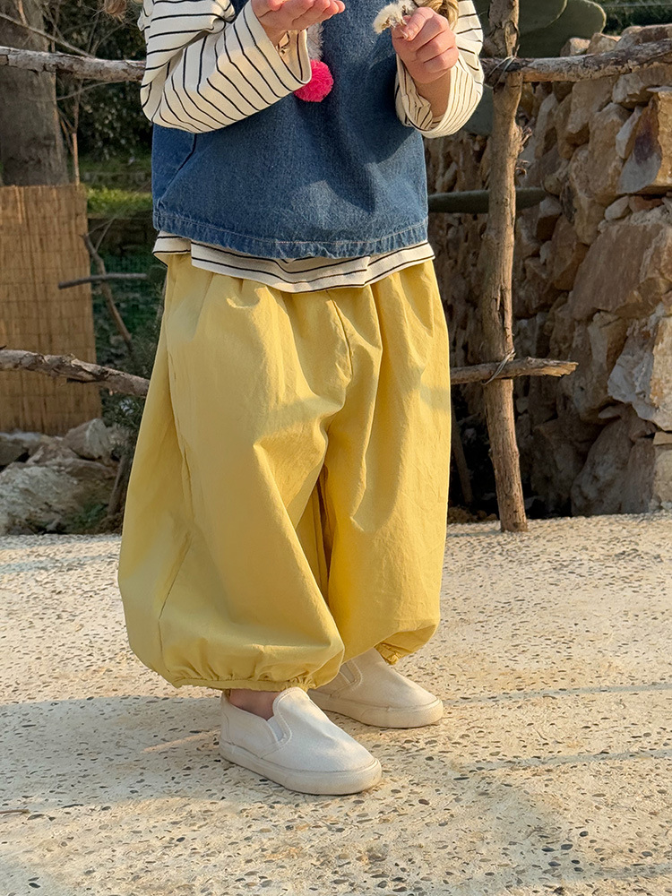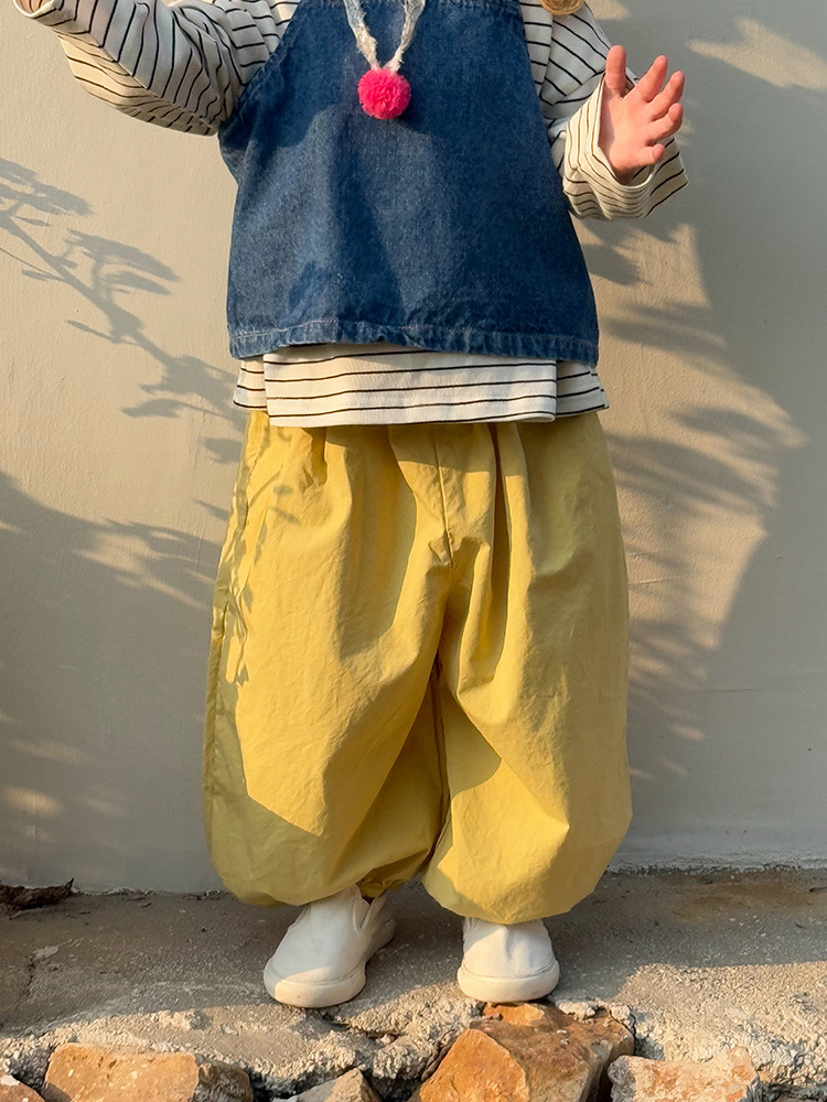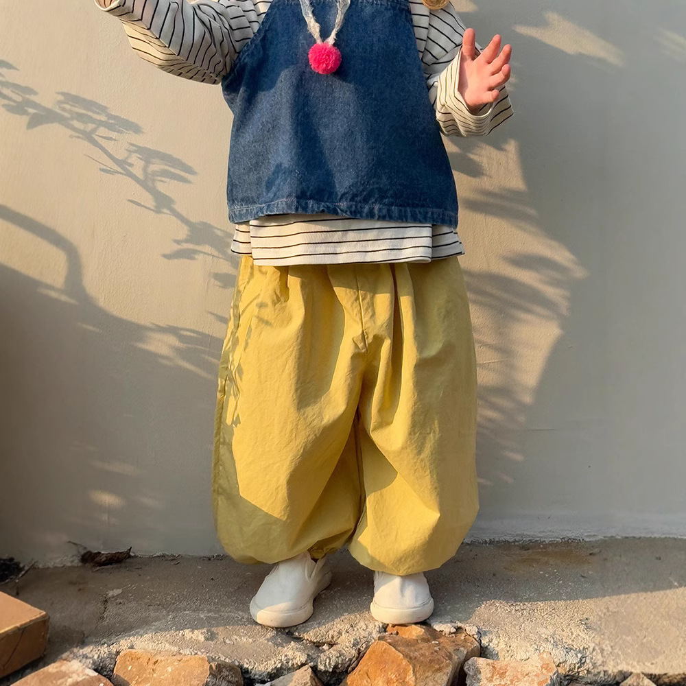 좌샤오란 아동복 아동 바지 어린이 랜턴 팬츠 2025 봄 여름 신상 한국 스타일 여아 단색 방충 바지 긴바지