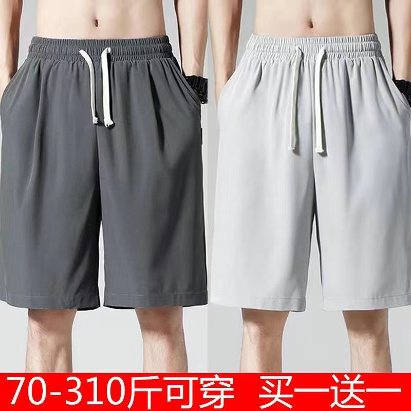플러스 대형 반바지 남자 여름 지방 남자 올 매치 캐주얼 아이스 실크 빠른 건조 바지 통기성 얇은 바지 홍콩 스타일스토어 가기