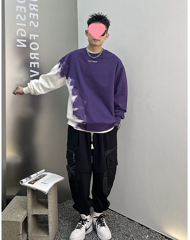 2025 봄과 가을 흑백 그라디언트 라운드 넥 스웨트 남성용 루즈 후드 중공업 남성용 트렌디 탑스토어 가기