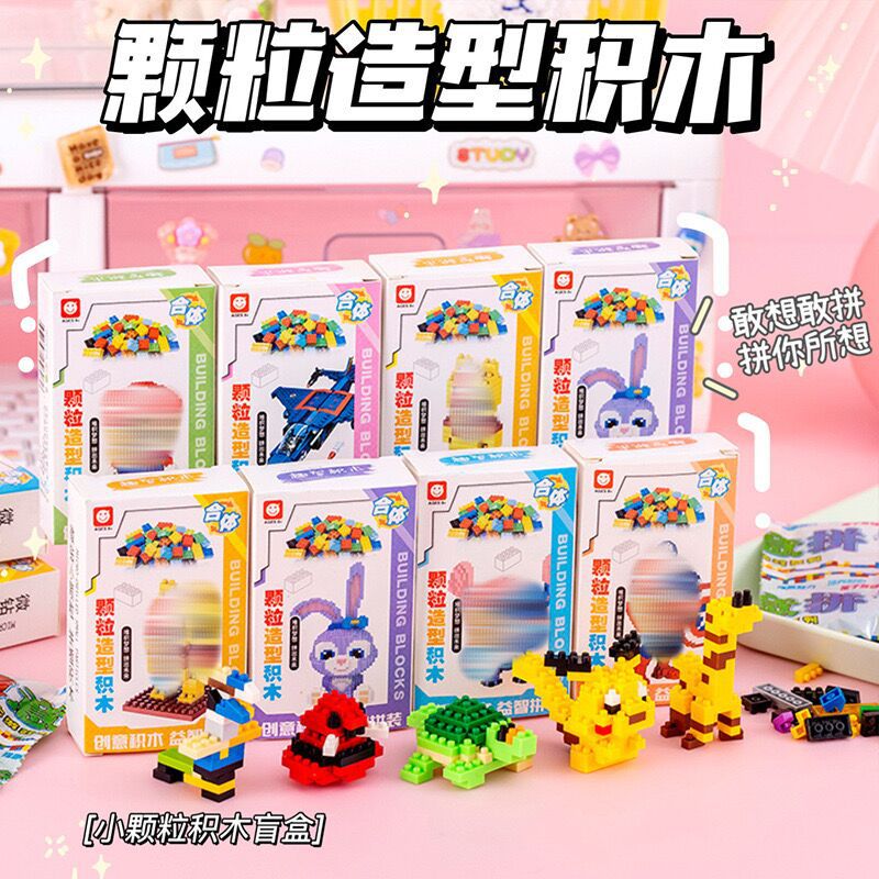 조립 된 만화 작은 입자 학생 선물 상자 건물 블록 동물 캐릭터 교육 장난감 장식품스토어 가기
