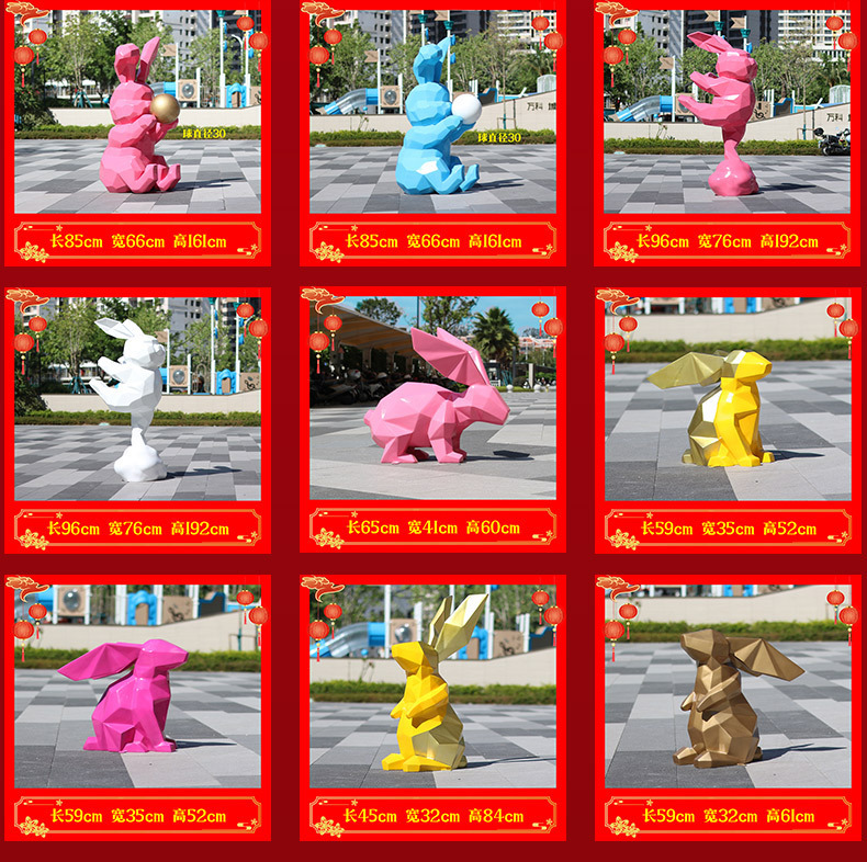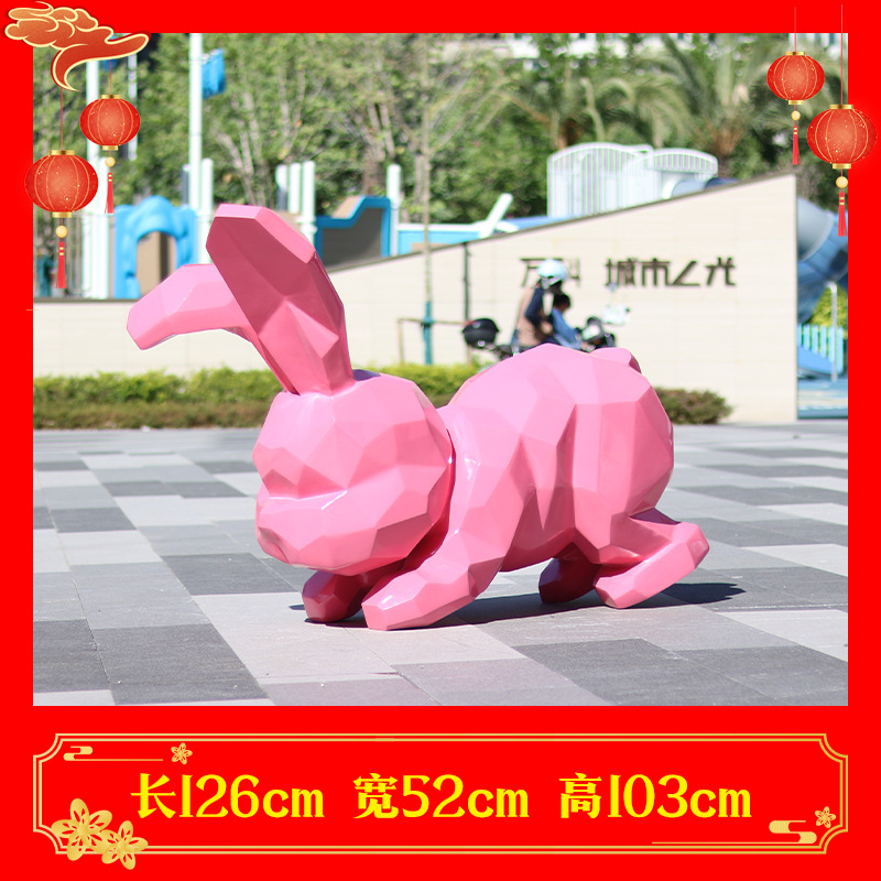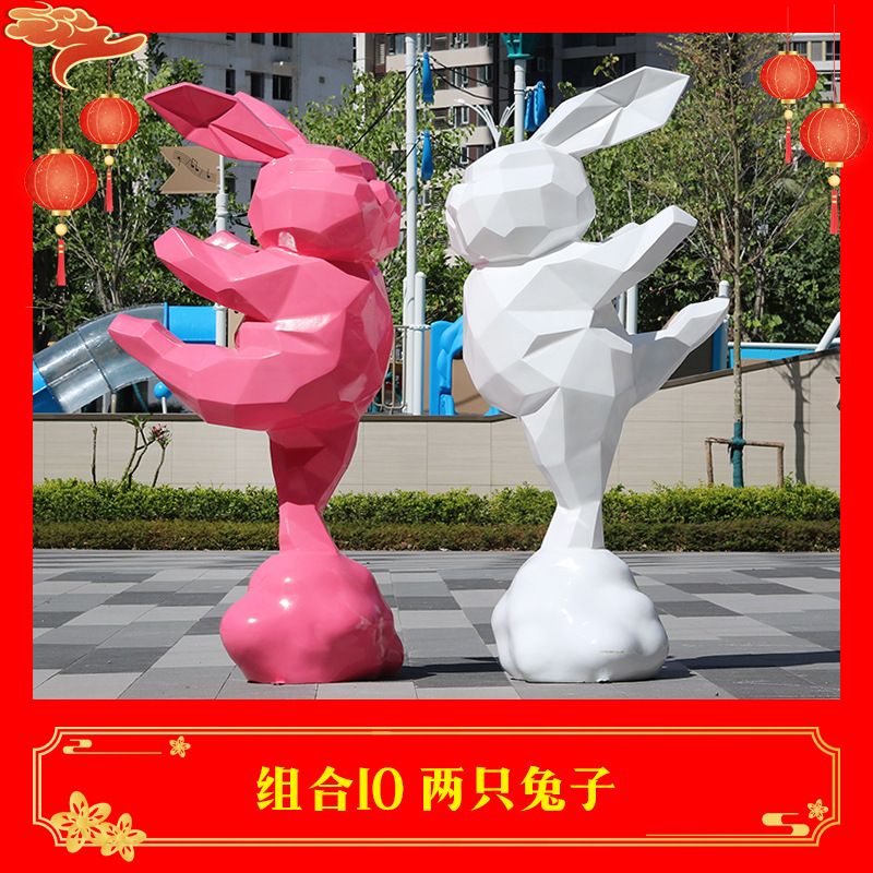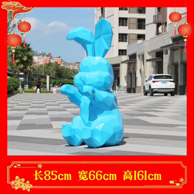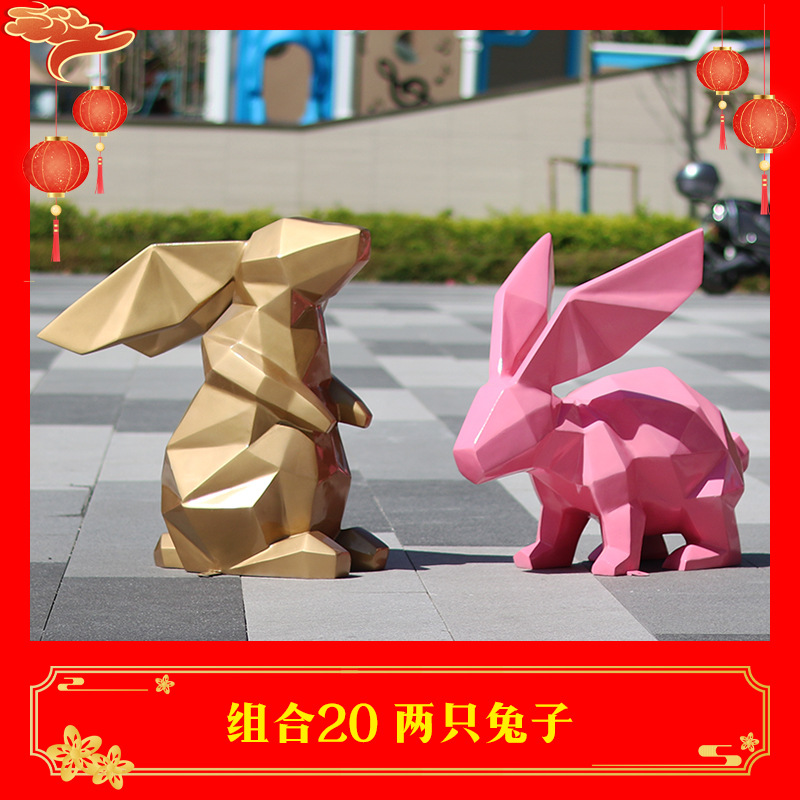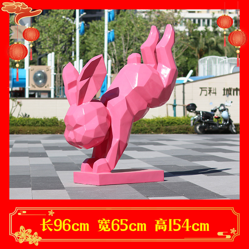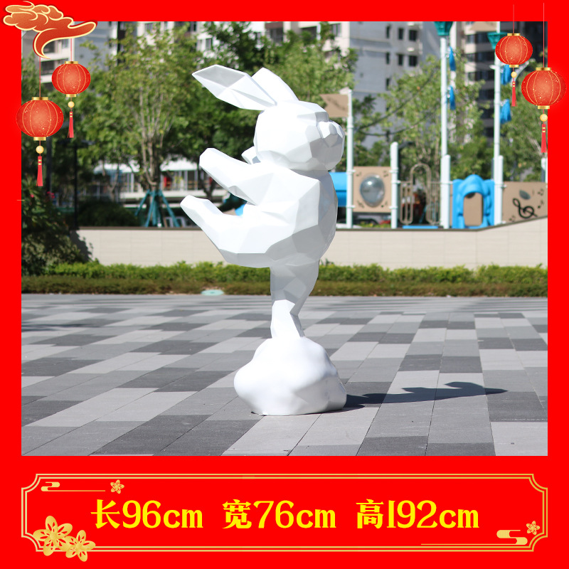 추상 토끼 조각 야외 대형 토끼 장식품 유리 섬유 강화 플라스틱 경관 지역 쇼핑몰 꽃 정원 풍경 스케치스토어 가기