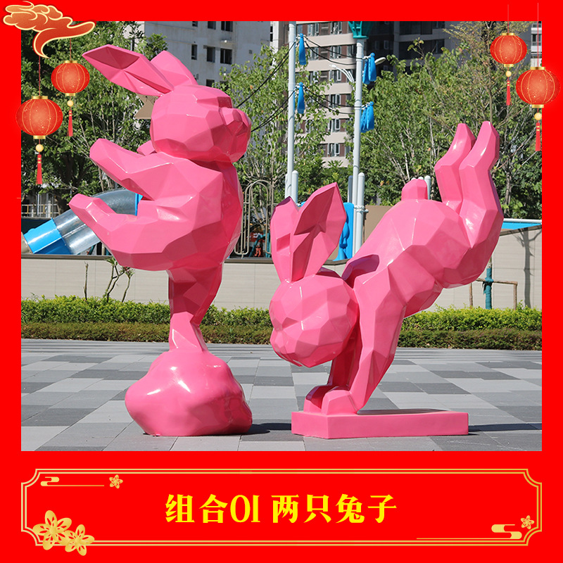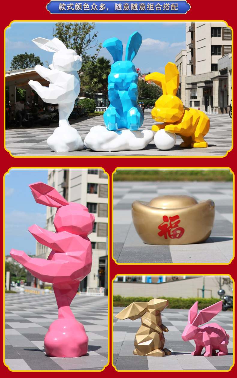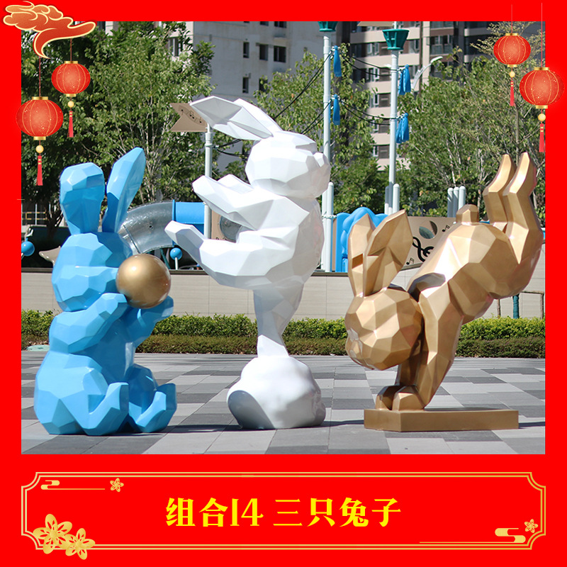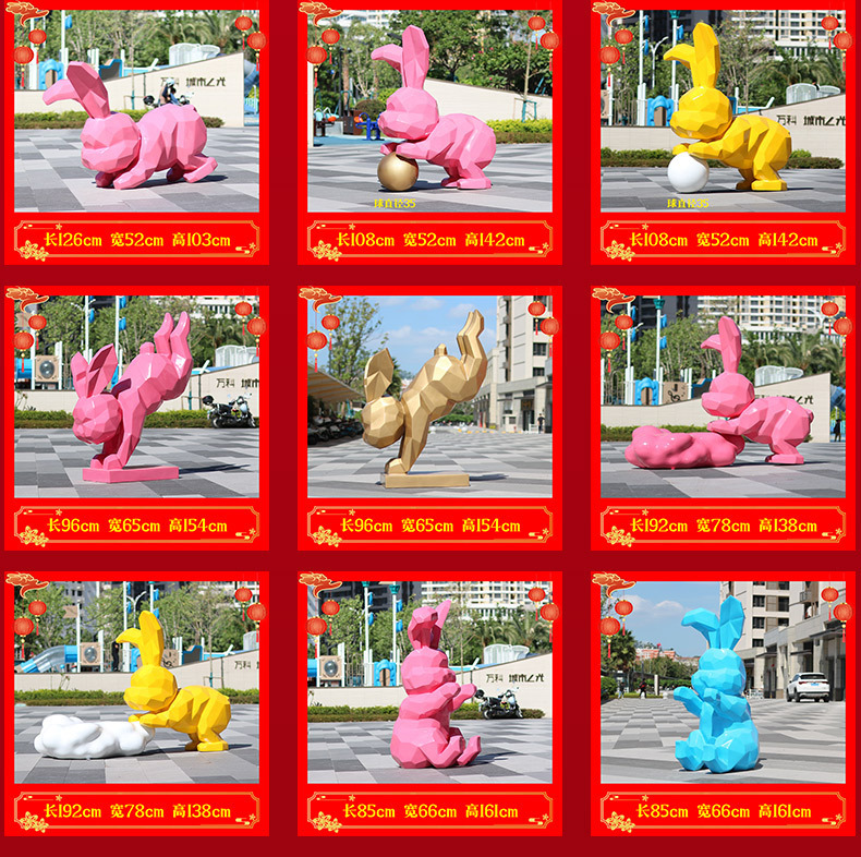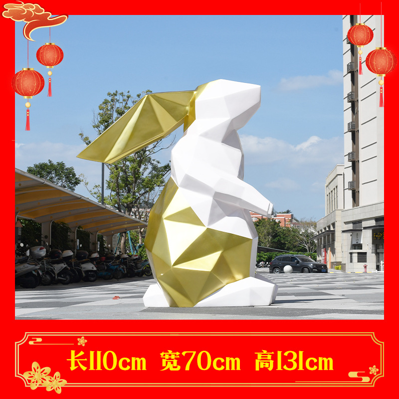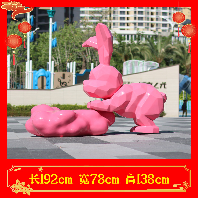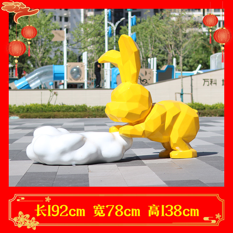 추상 토끼 조각 야외 대형 토끼 장식품 유리 섬유 강화 플라스틱 경관 지역 쇼핑몰 꽃 정원 풍경 스케치스토어 가기