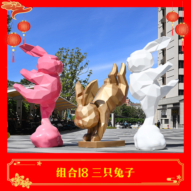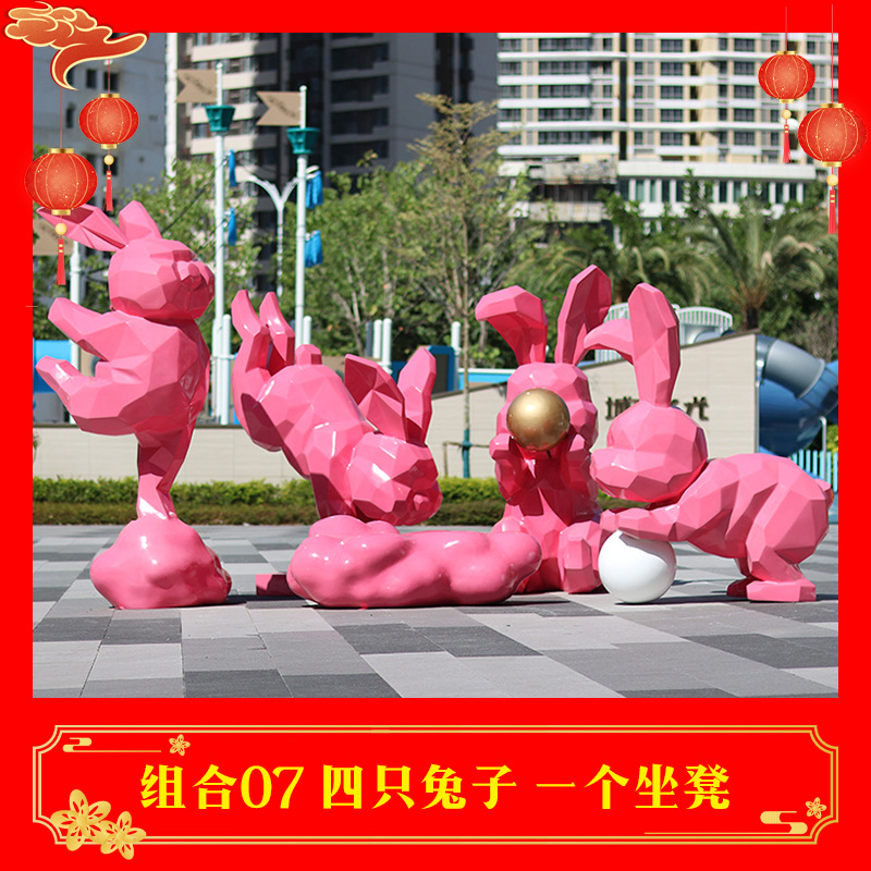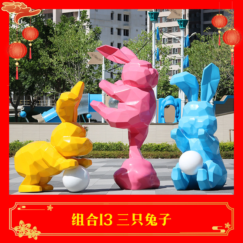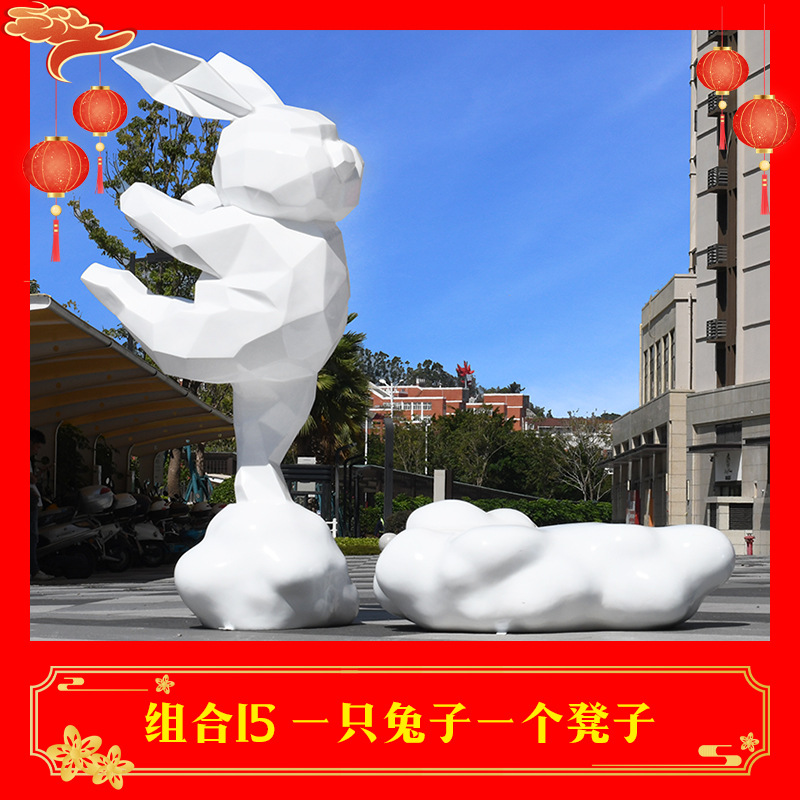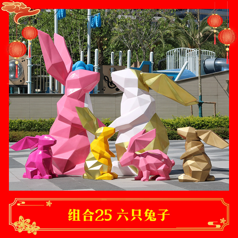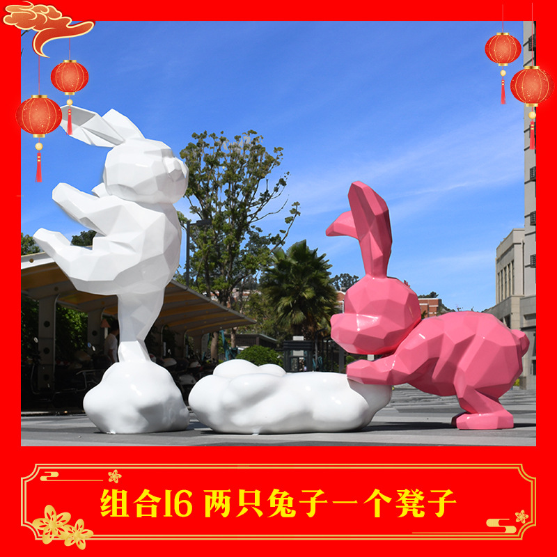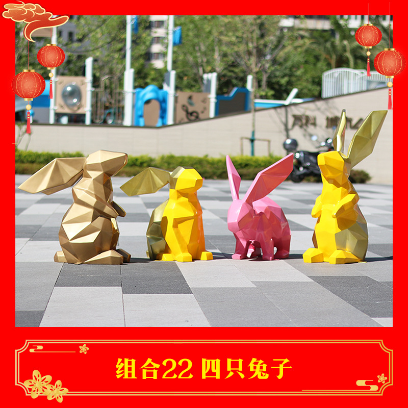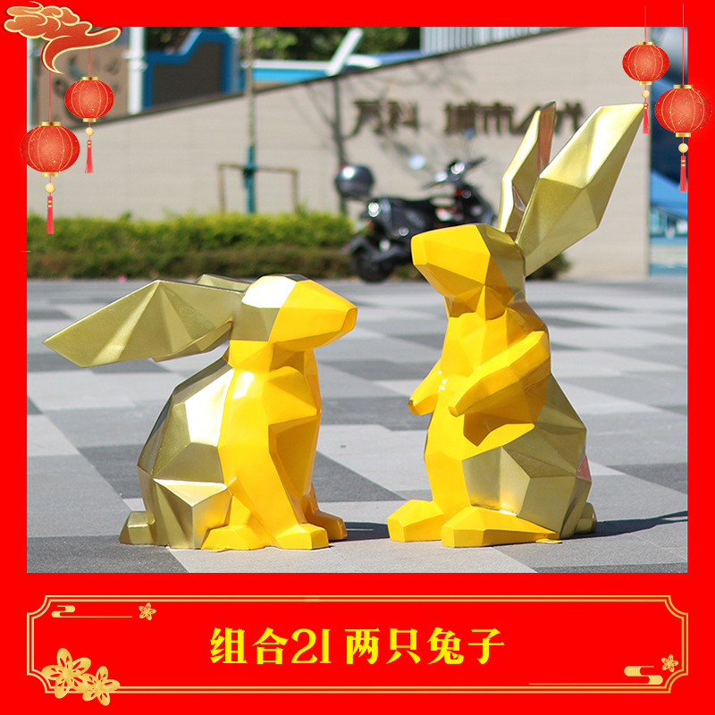 추상 토끼 조각 야외 대형 토끼 장식품 유리 섬유 강화 플라스틱 경관 지역 쇼핑몰 꽃 정원 풍경 스케치스토어 가기