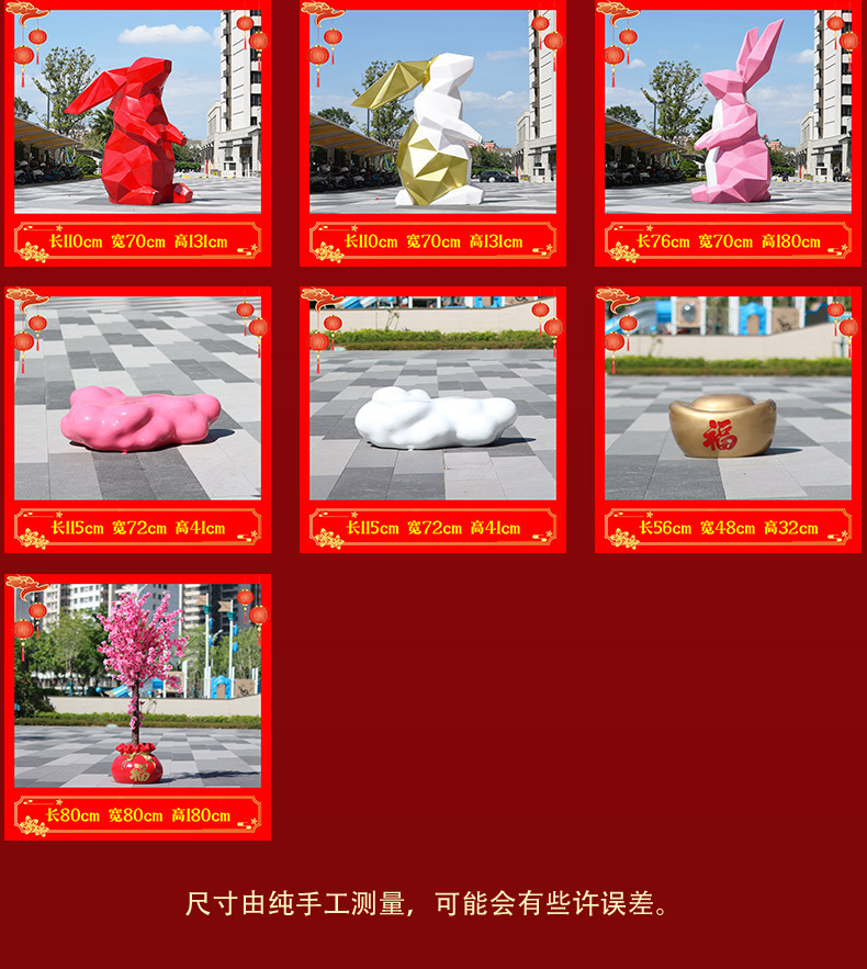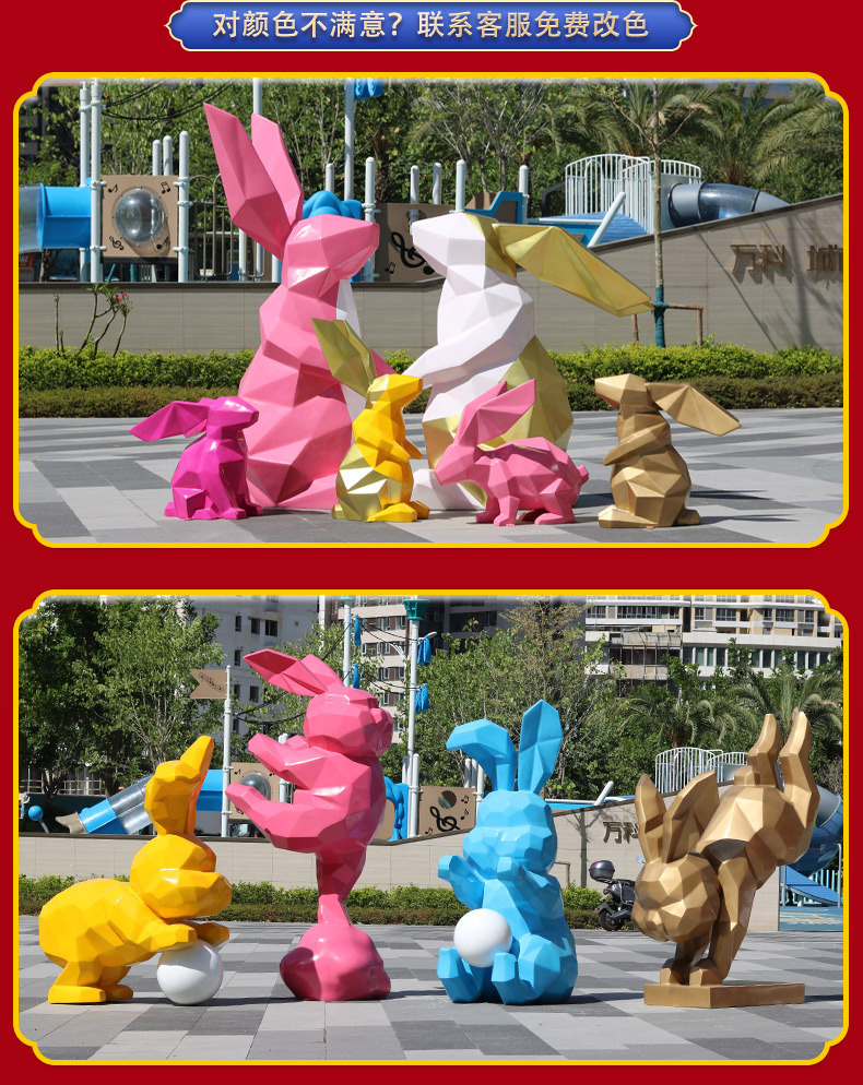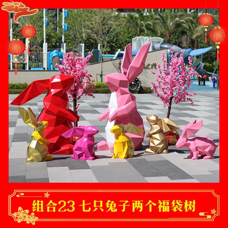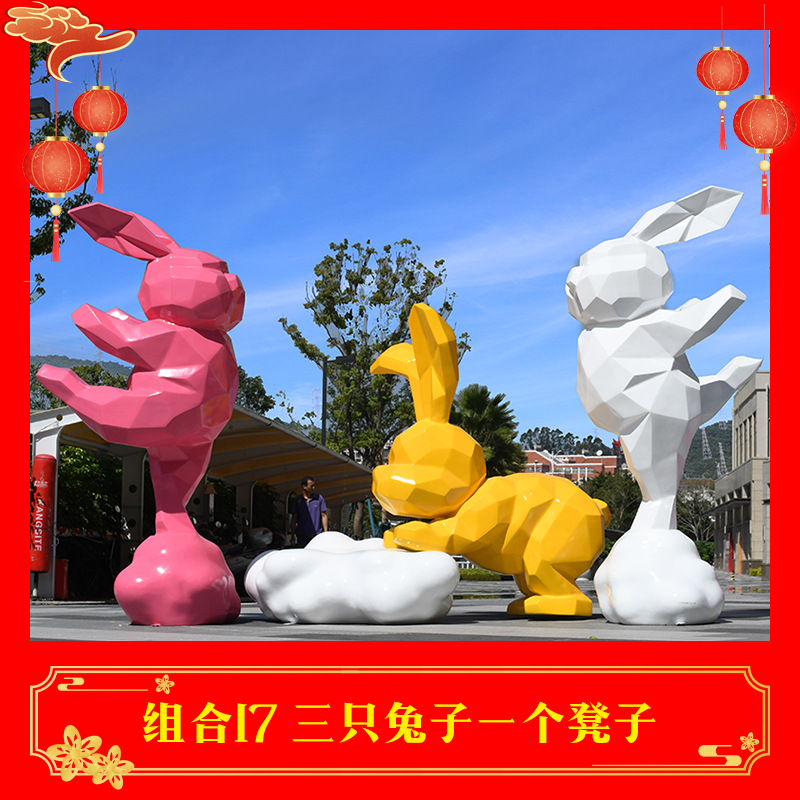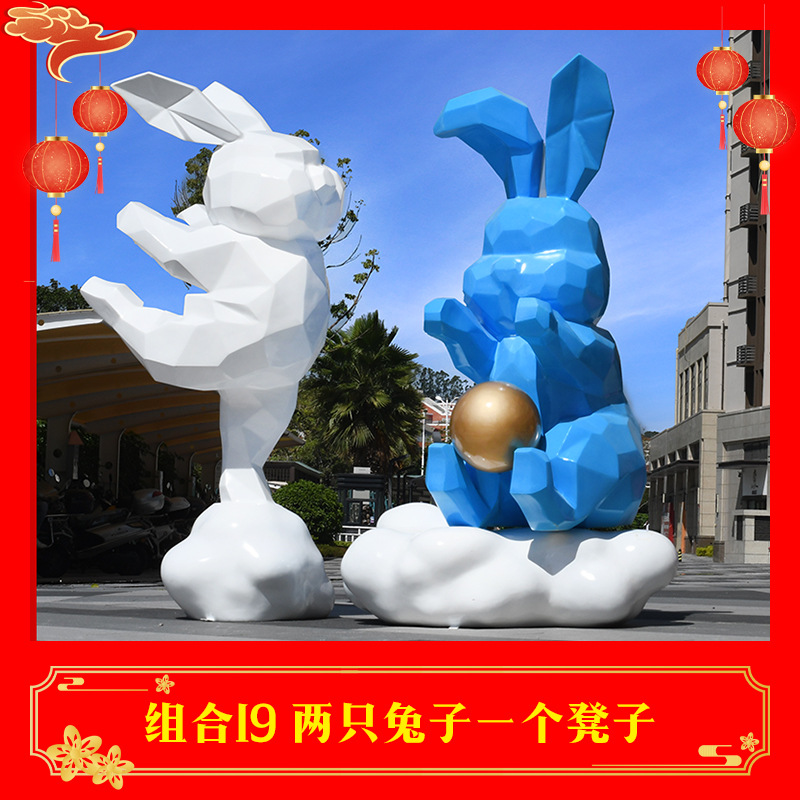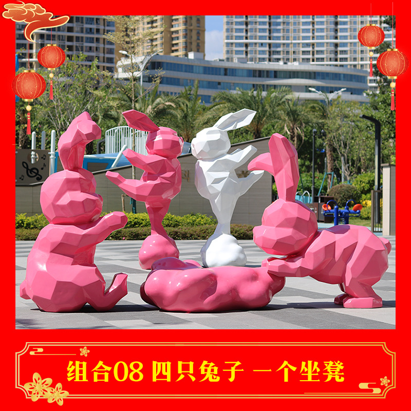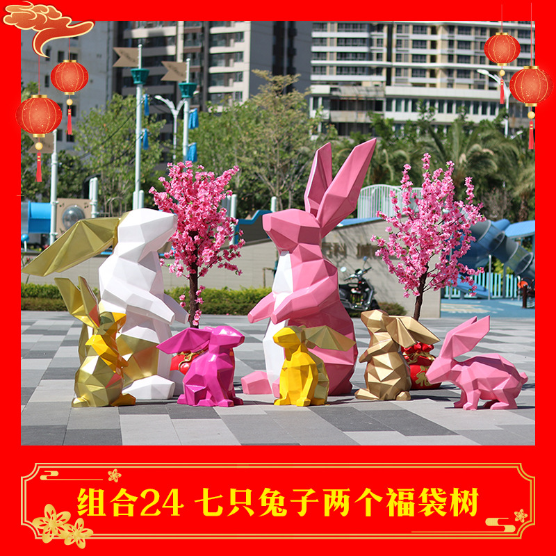 추상 토끼 조각 야외 대형 토끼 장식품 유리 섬유 강화 플라스틱 경관 지역 쇼핑몰 꽃 정원 풍경 스케치스토어 가기