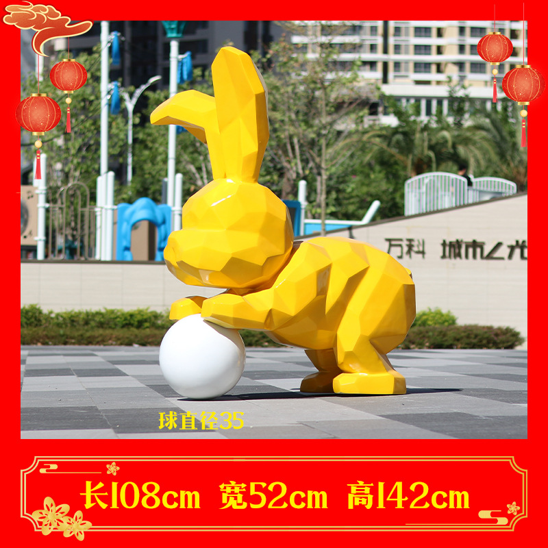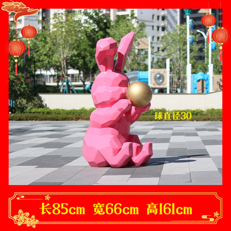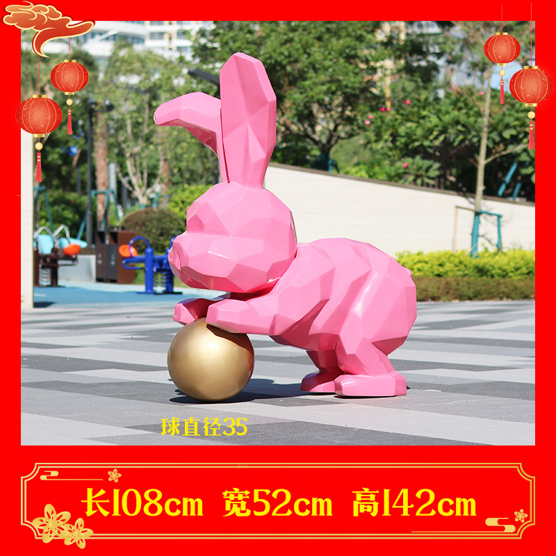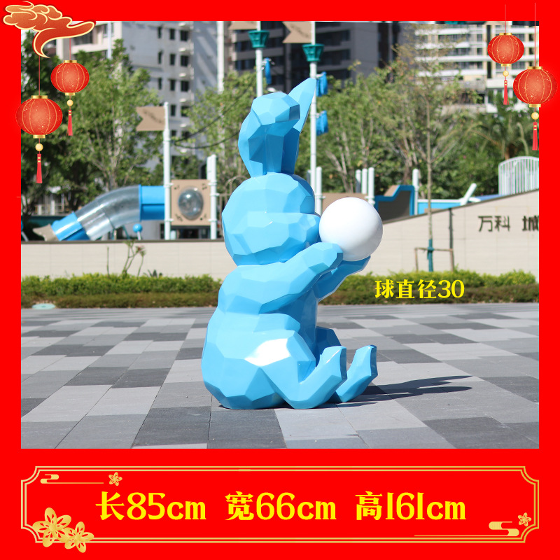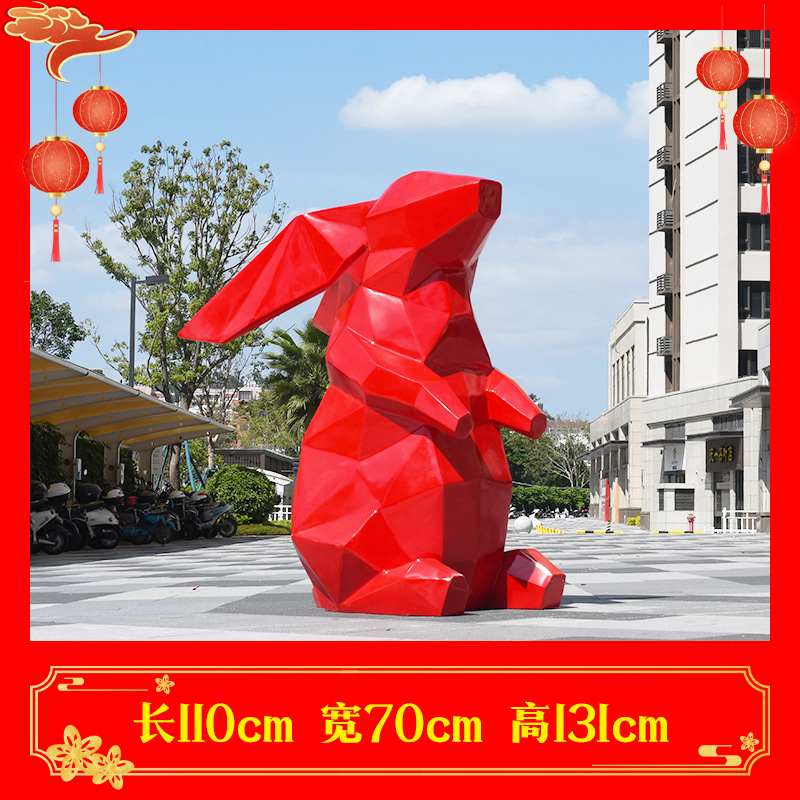 추상 토끼 조각 야외 대형 토끼 장식품 유리 섬유 강화 플라스틱 경관 지역 쇼핑몰 꽃 정원 풍경 스케치