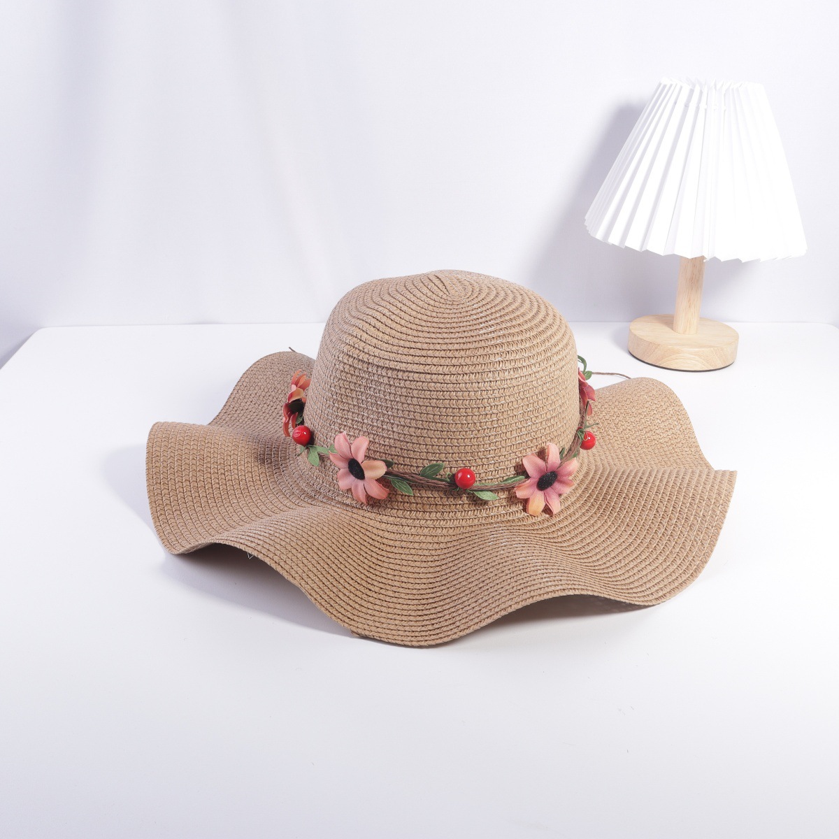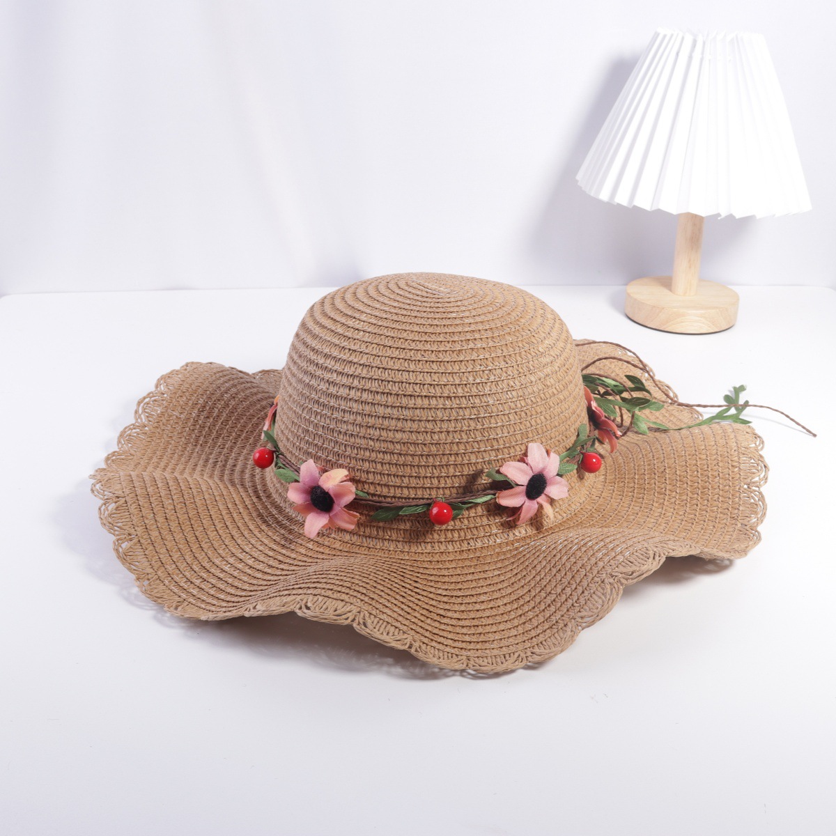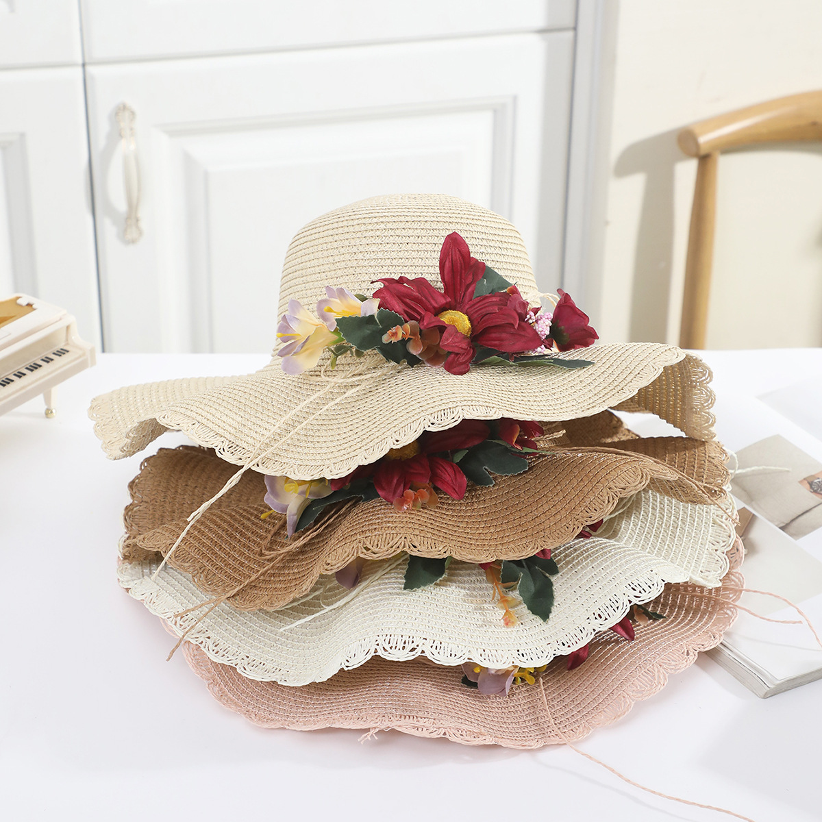 2025 년 여름 새로운 한국 여성 꽃 밀짚 모자 가정 조수 해변 모자 선 스크린 차양 모자 태양 제조 업체