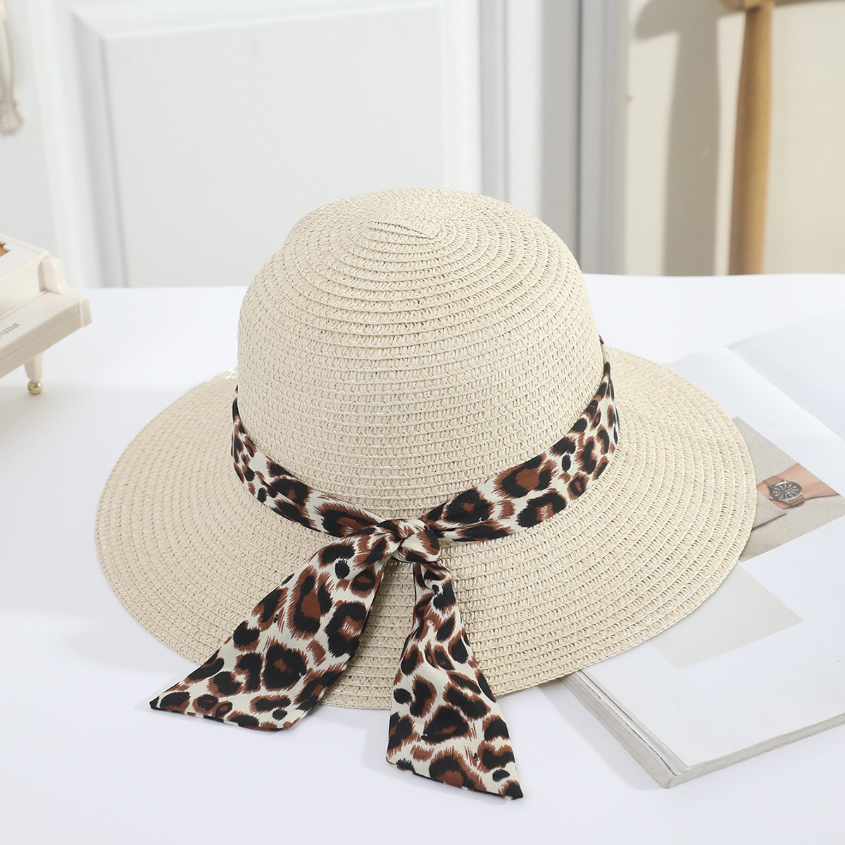 • 성인 표범 도트 리본 분지 모자 쌀