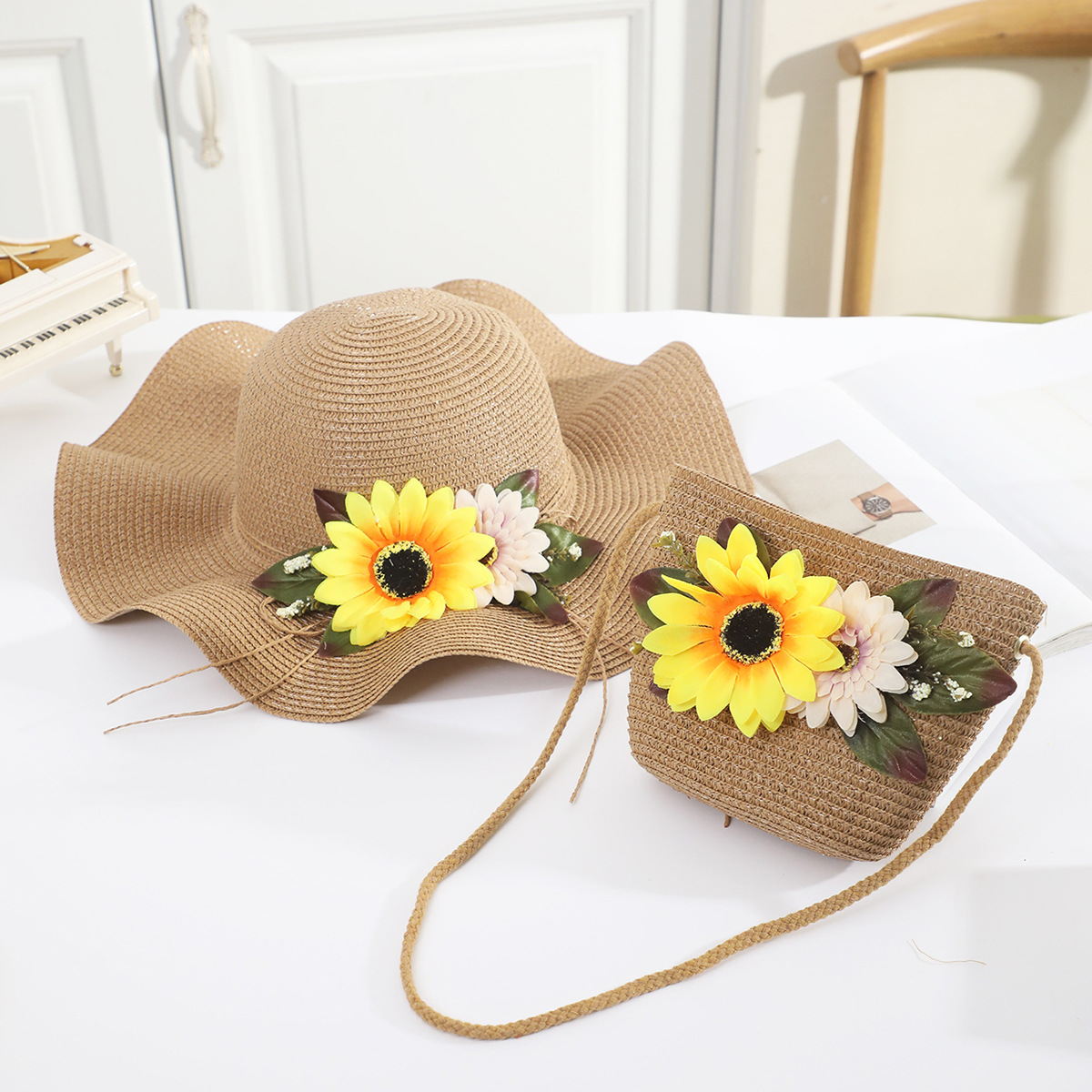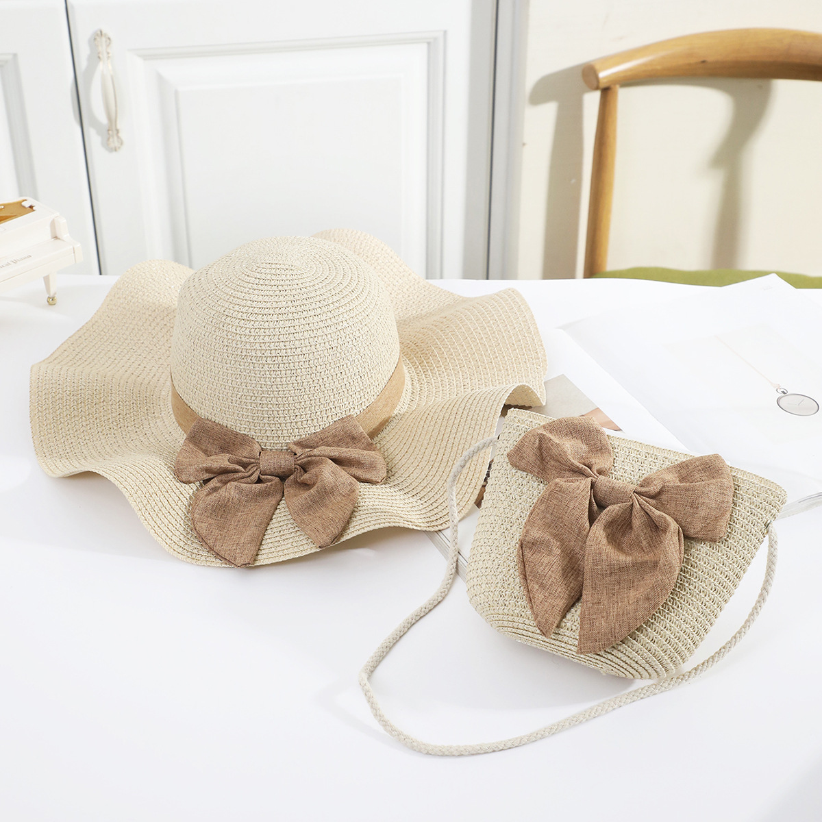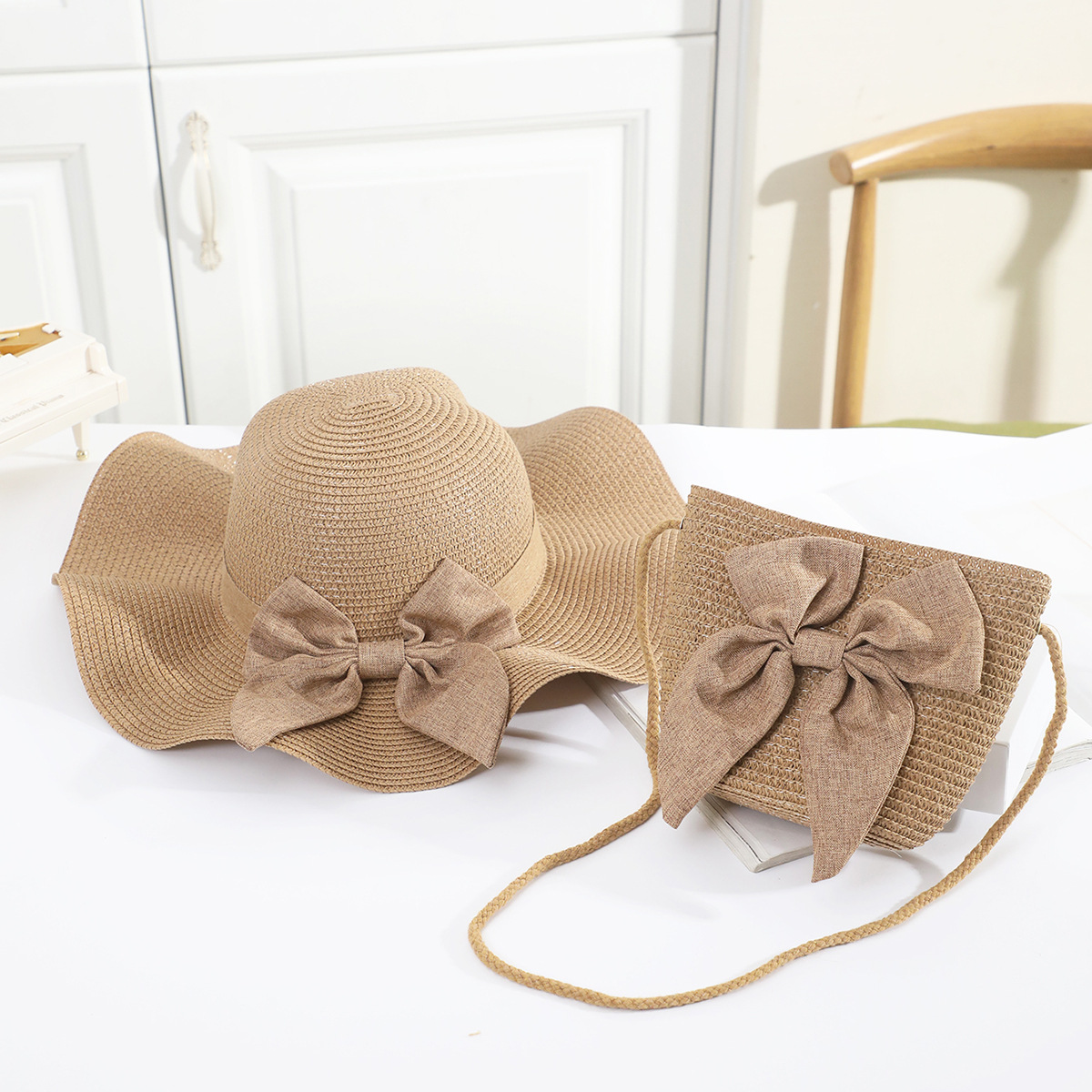 • 성인 카키색 리본 모자 세트 쌀