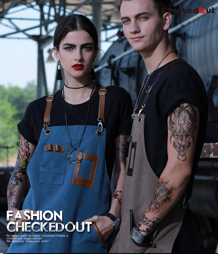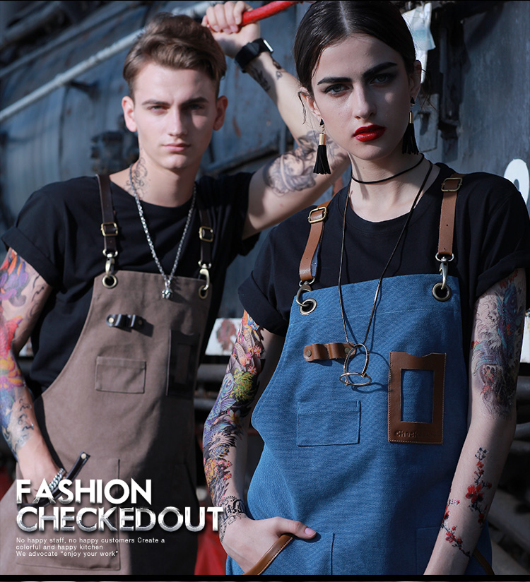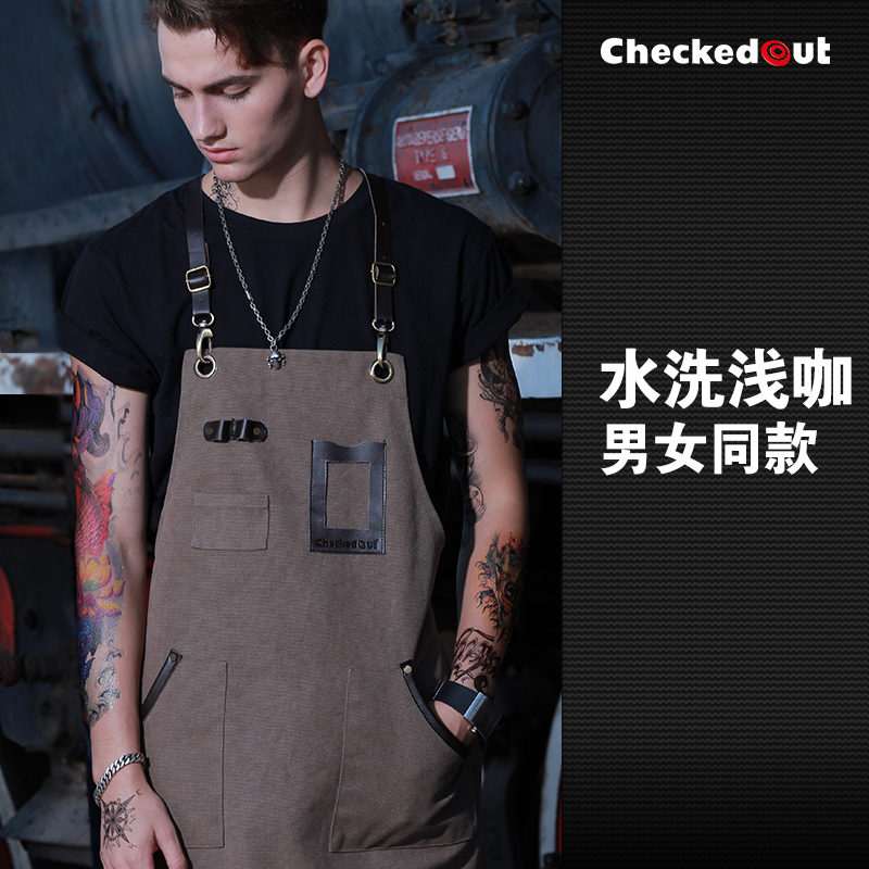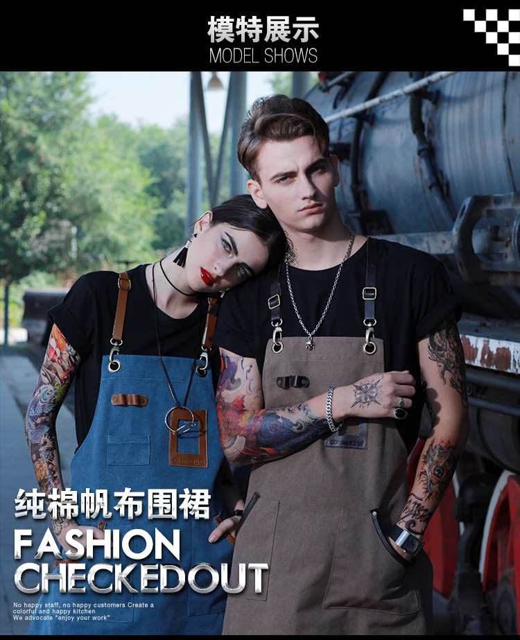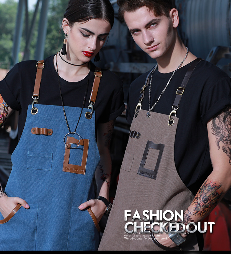 앞치마 홈 주방 앞치마 체크 아웃 커피 숍 남성과 여성 원피스 패션 캔버스 앞치마 맞춤 로고