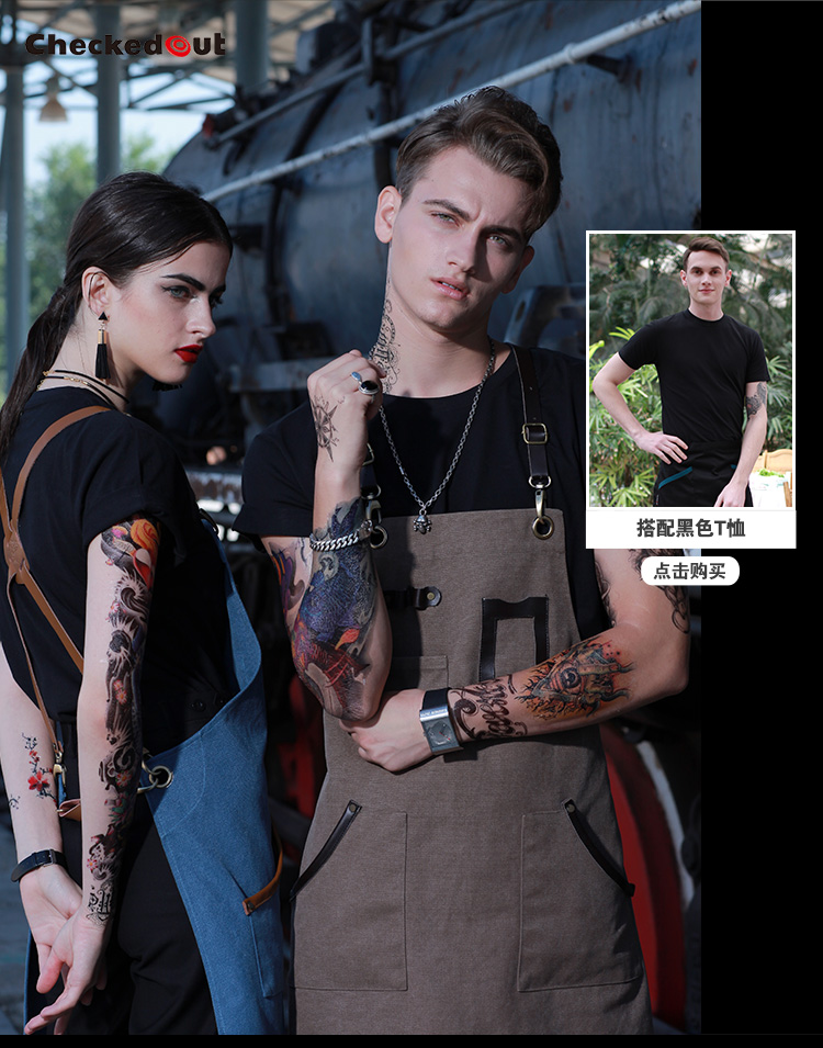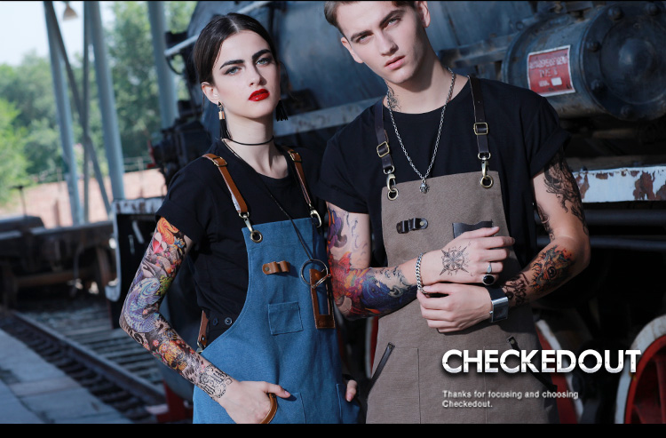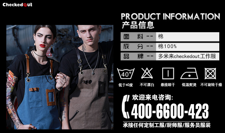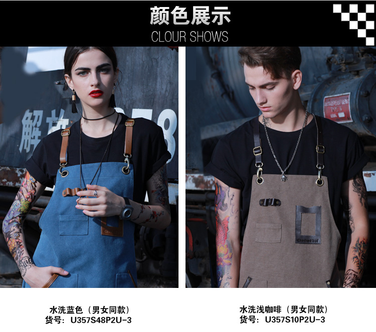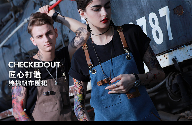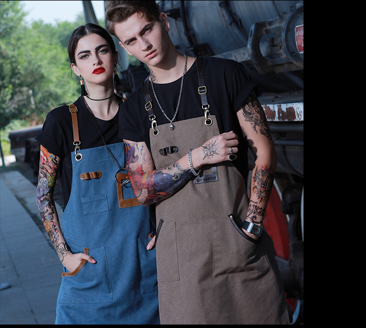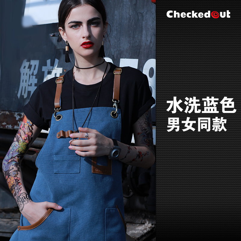 앞치마 홈 주방 앞치마 체크 아웃 커피 숍 남성과 여성 원피스 패션 캔버스 앞치마 맞춤 로고