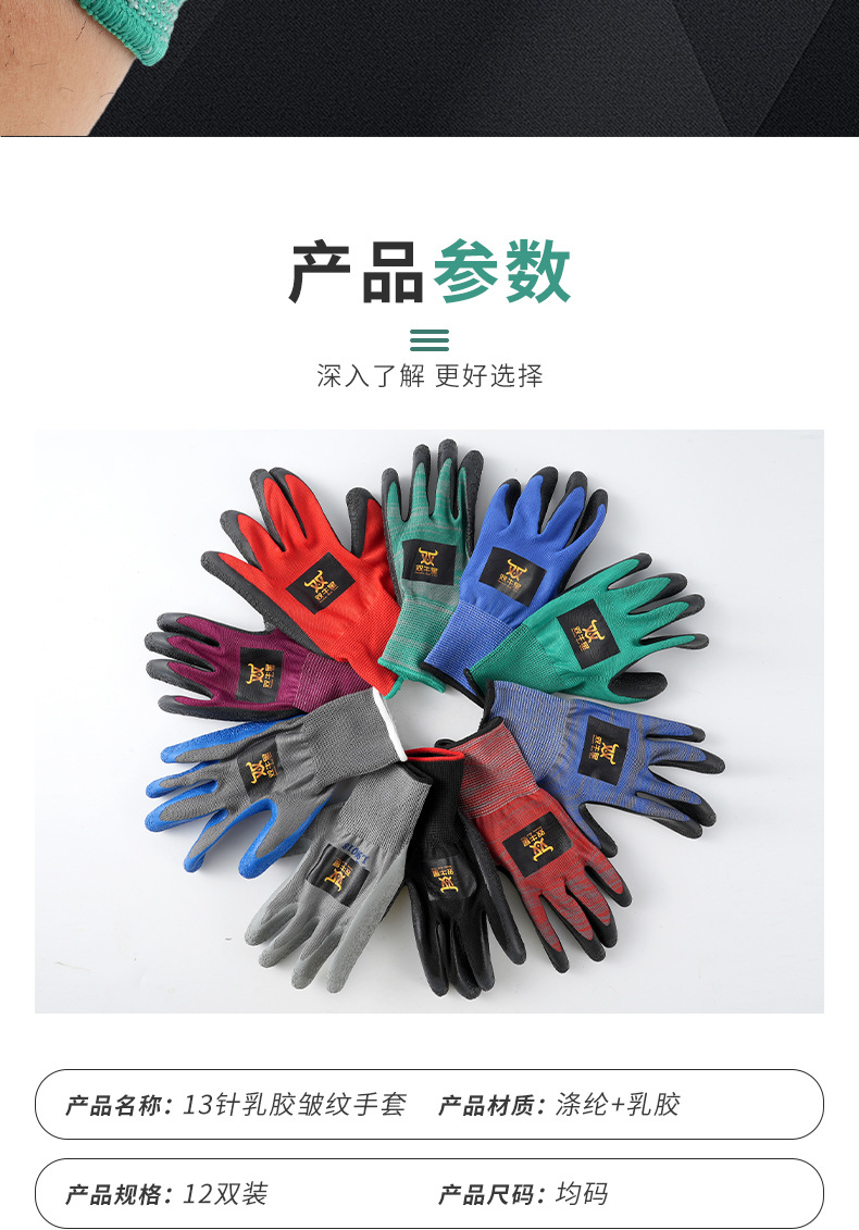 13 개의 바늘 통기성 내마모성 노동 장갑 주름 미끄럼 방지 접착 장갑 사이트 미끄럼 방지 장갑 작업 장갑스토어 가기