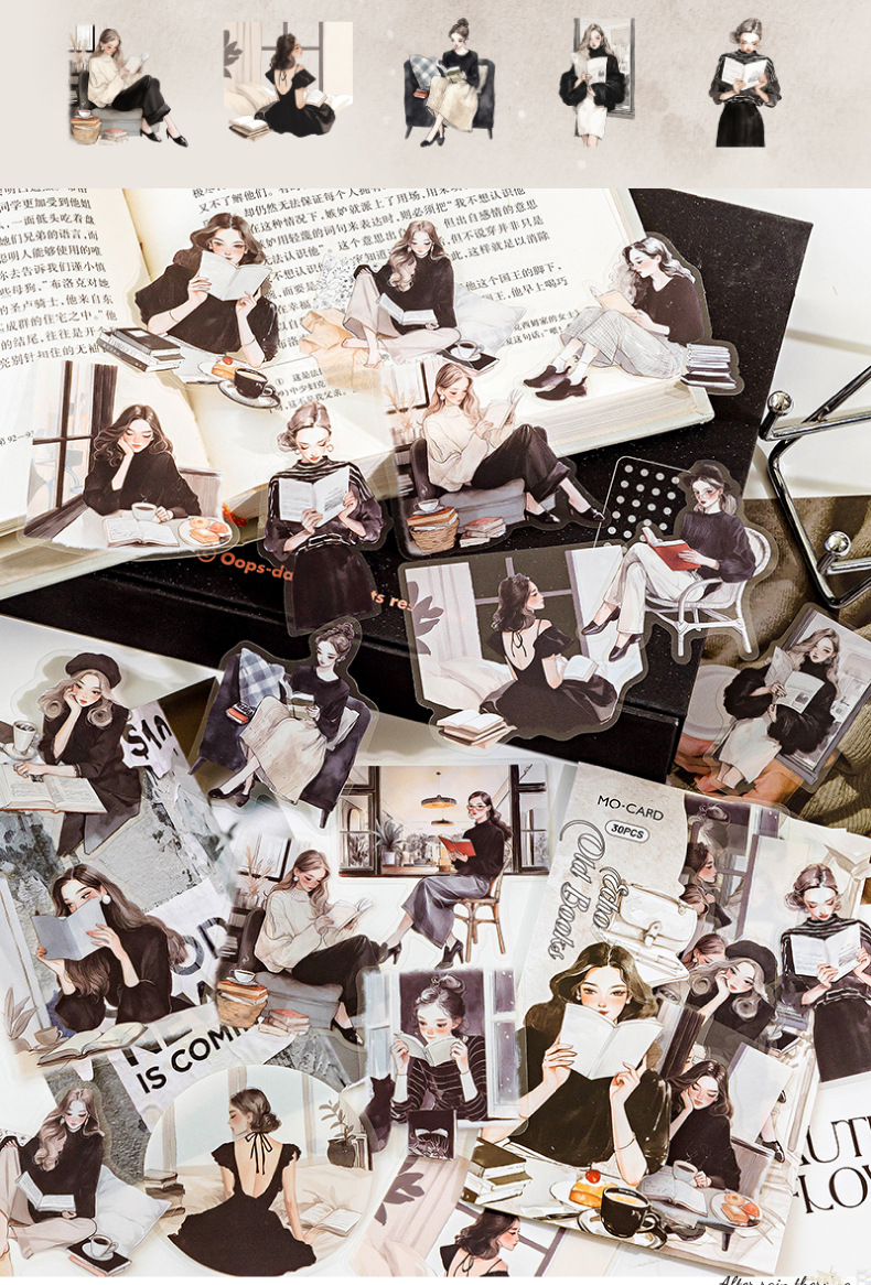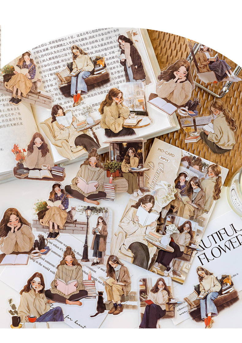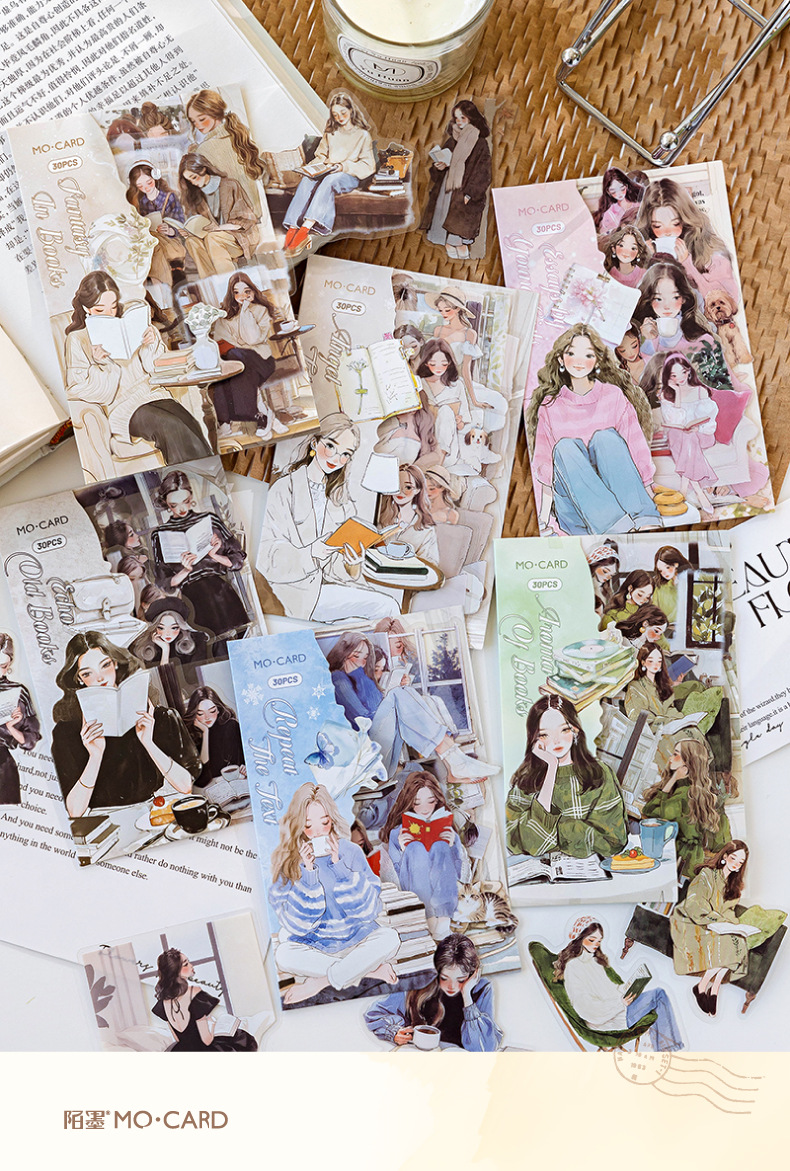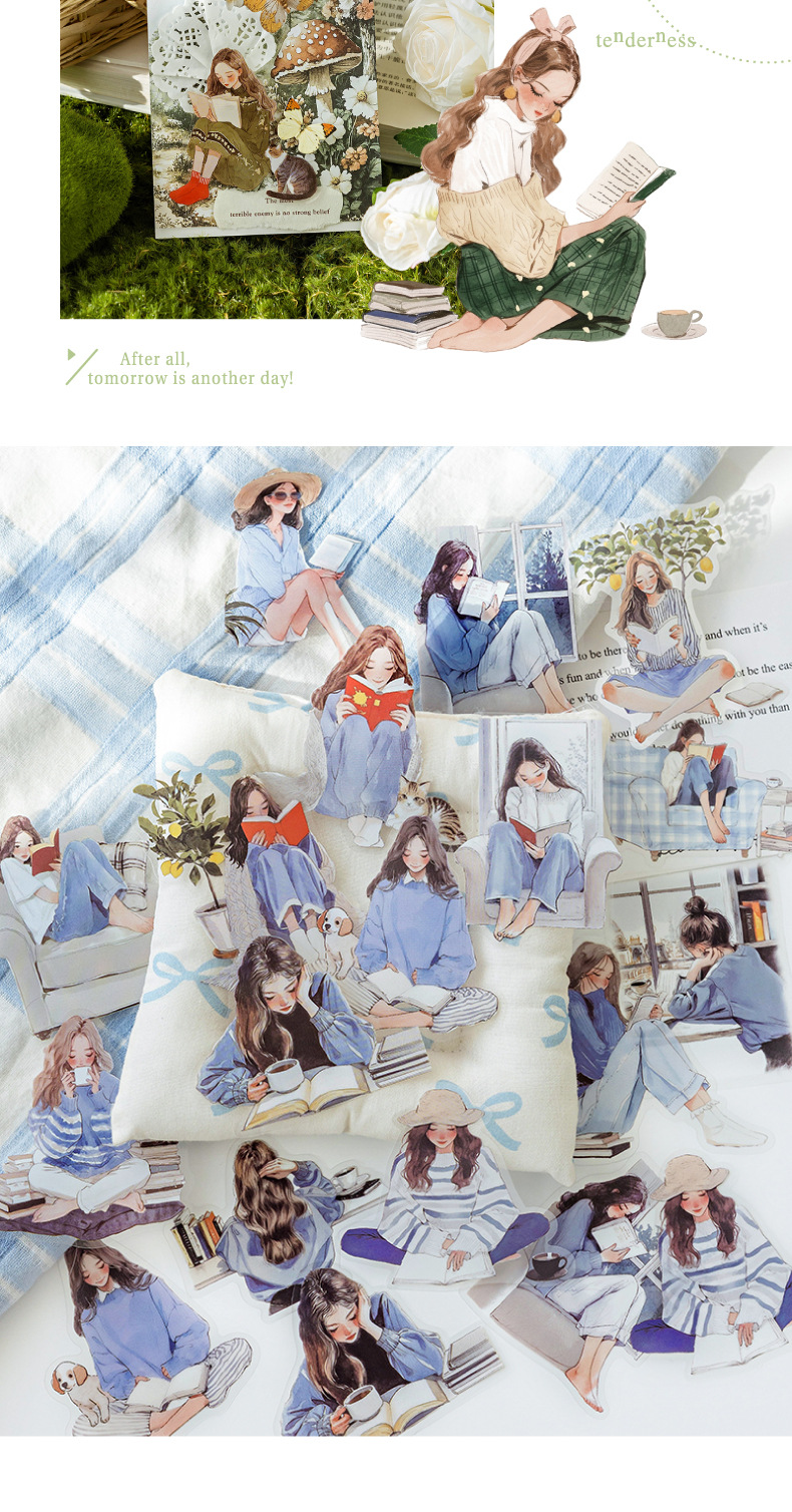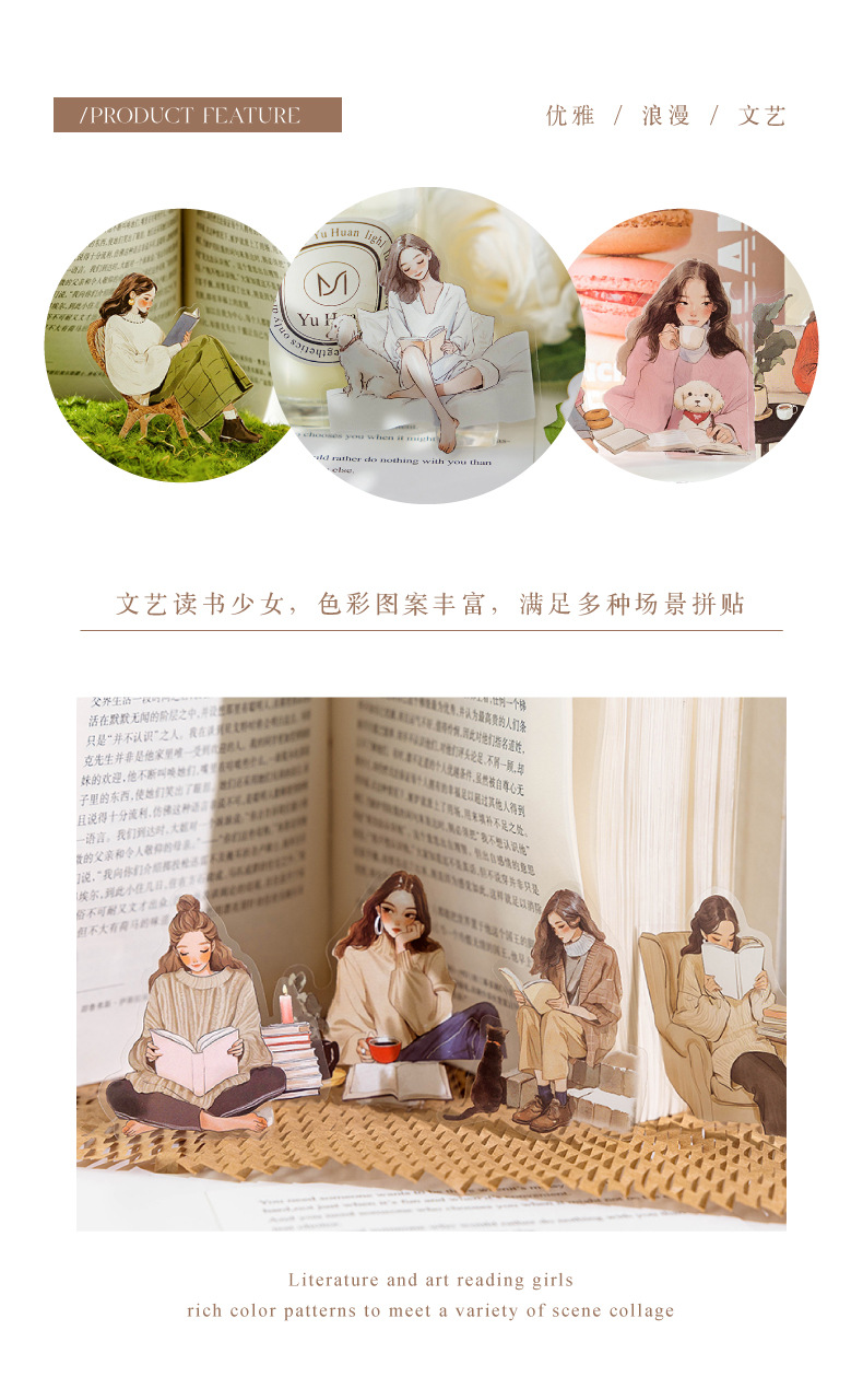 모 모 애완 동물 스티커 팩 우아한 독서 시리즈 문학 스타일 캐릭터 소재 손 계정 DIY 풍경 구오 카드 스티커스토어 가기