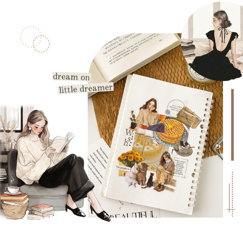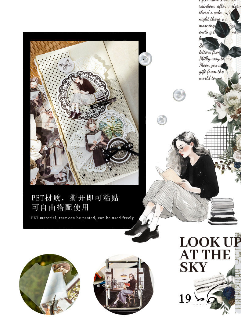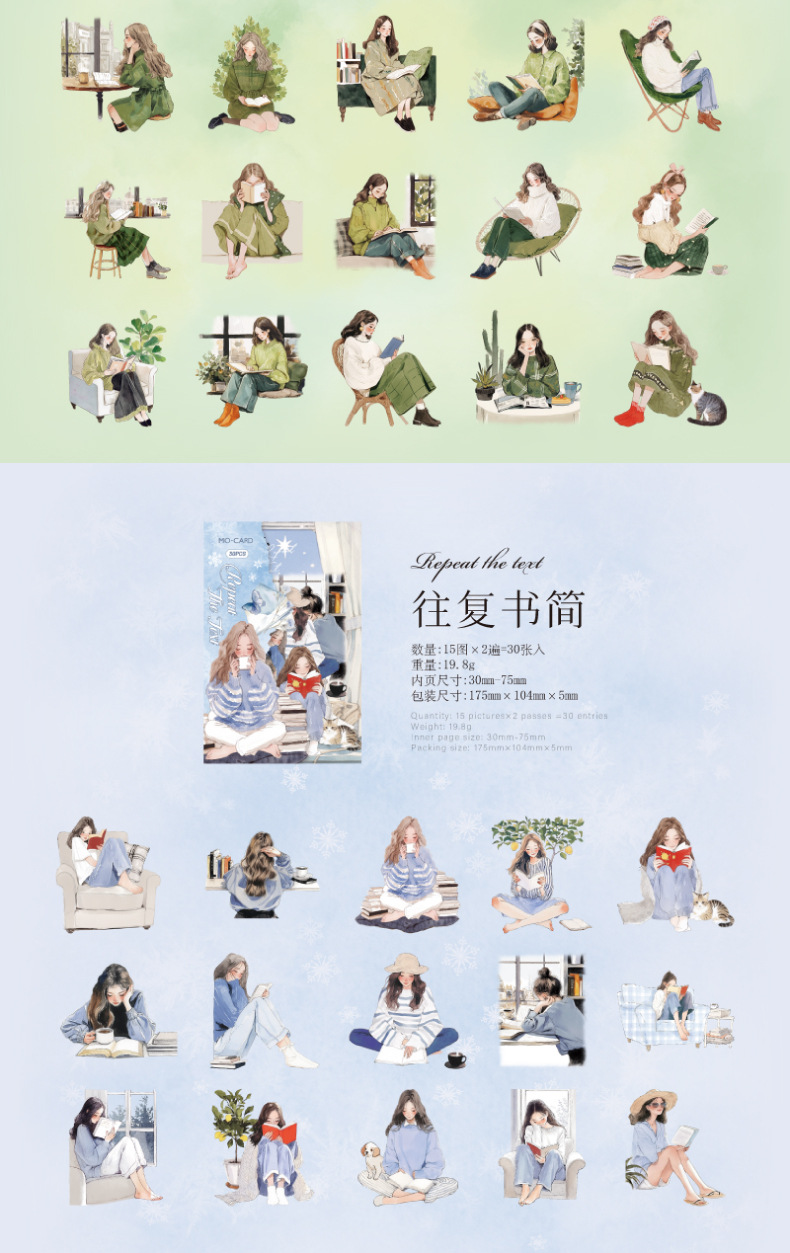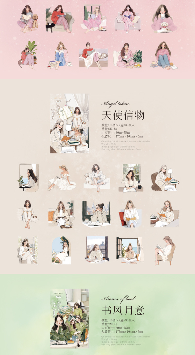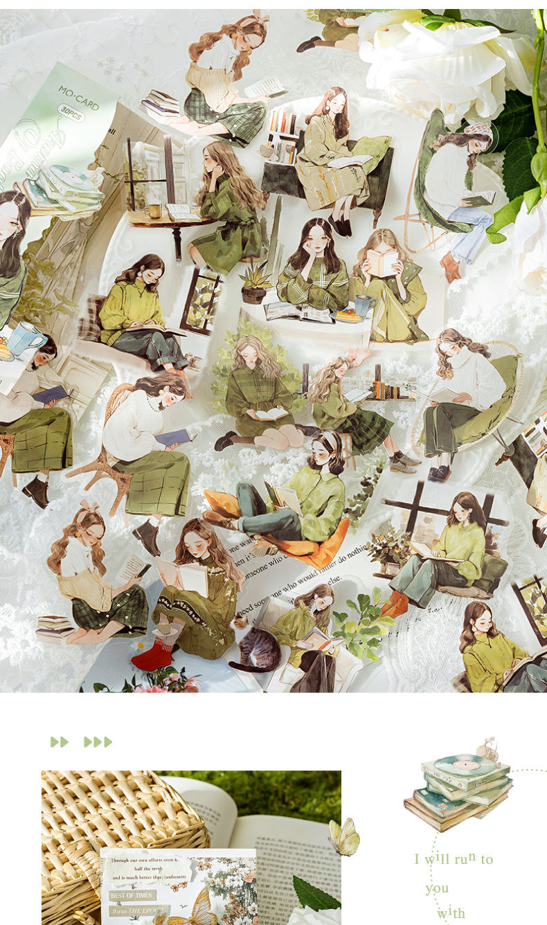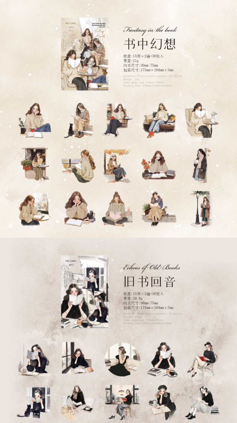 모 모 애완 동물 스티커 팩 우아한 독서 시리즈 문학 스타일 캐릭터 소재 손 계정 DIY 풍경 구오 카드 스티커스토어 가기