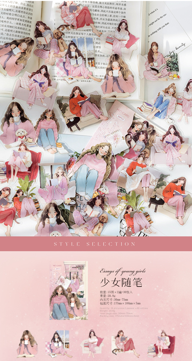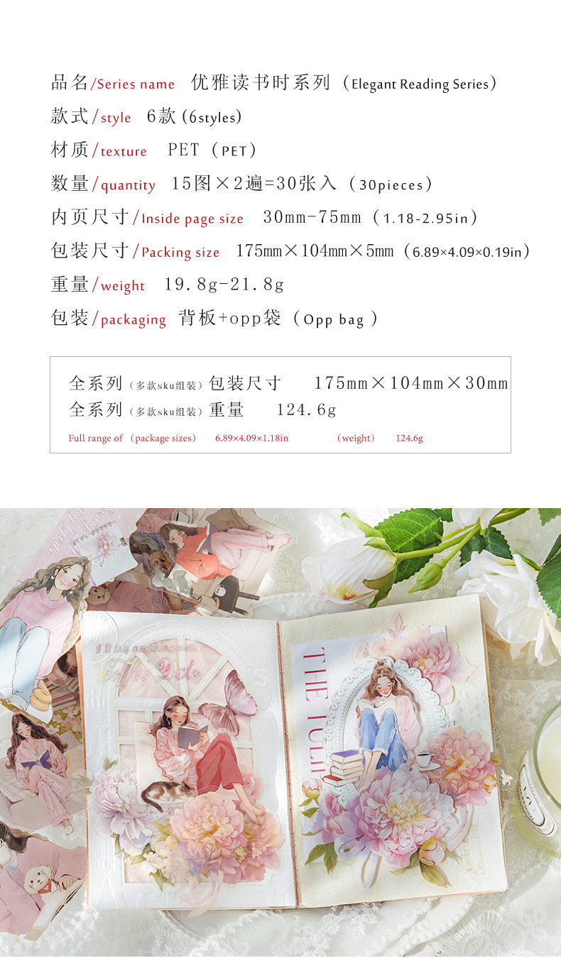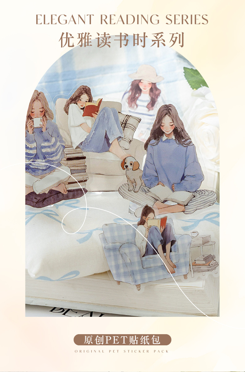 모 모 애완 동물 스티커 팩 우아한 독서 시리즈 문학 스타일 캐릭터 소재 손 계정 DIY 풍경 구오 카드 스티커
