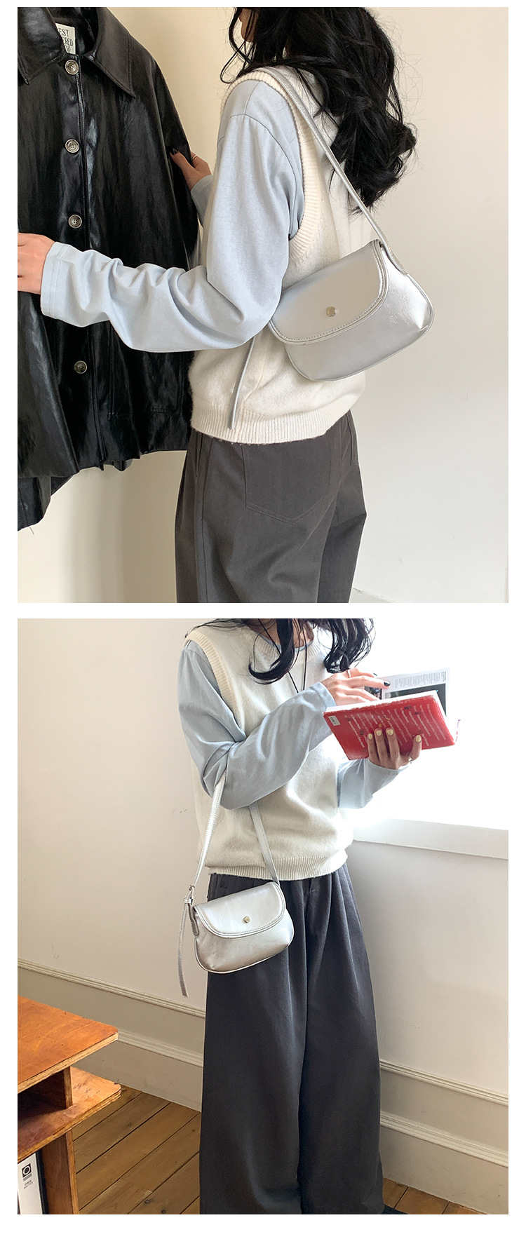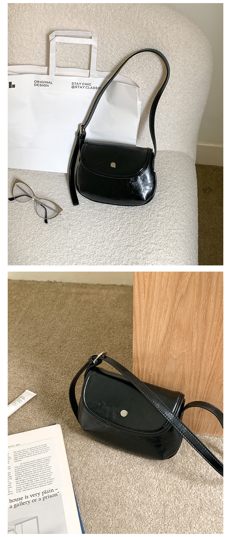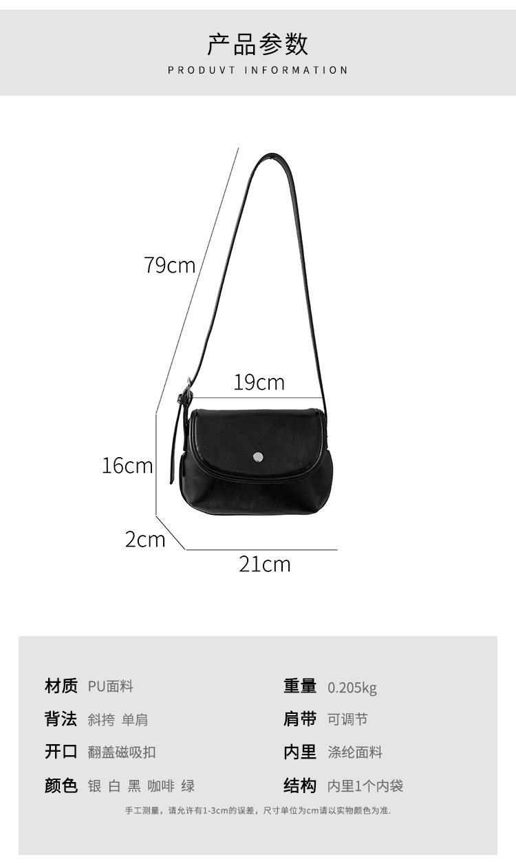 새로운 패션 간단한 어깨 작은 사각형 가방 PU 가죽 틈새 스타일 속옷 가방 하이 엔드 레트로 쉘 안장 가방