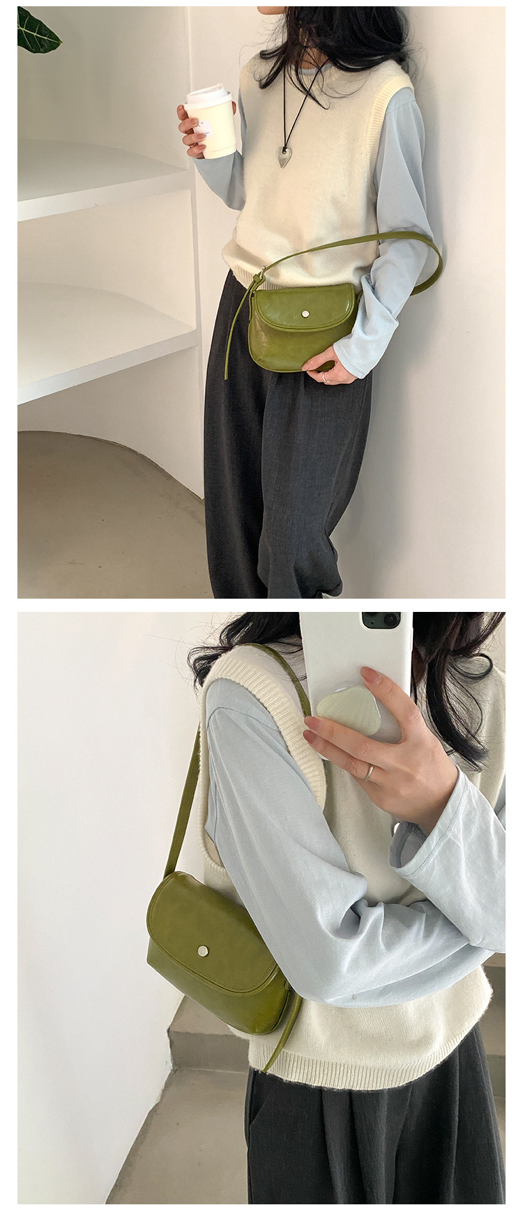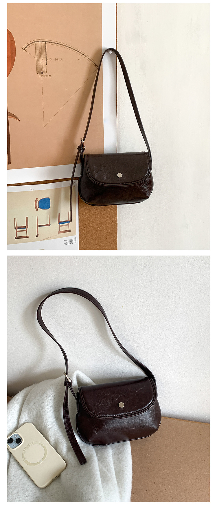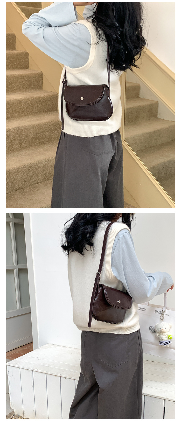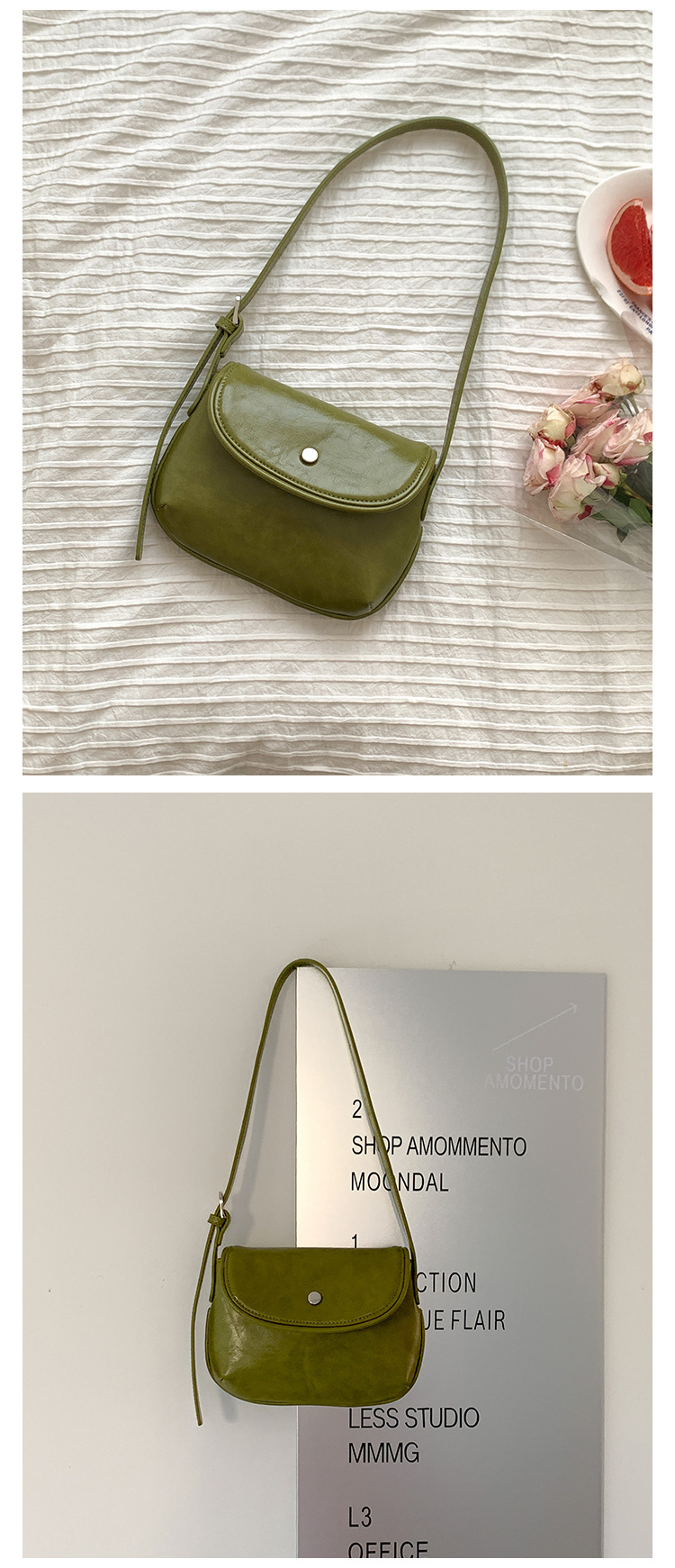새로운 패션 간단한 어깨 작은 사각형 가방 PU 가죽 틈새 스타일 속옷 가방 하이 엔드 레트로 쉘 안장 가방스토어 가기