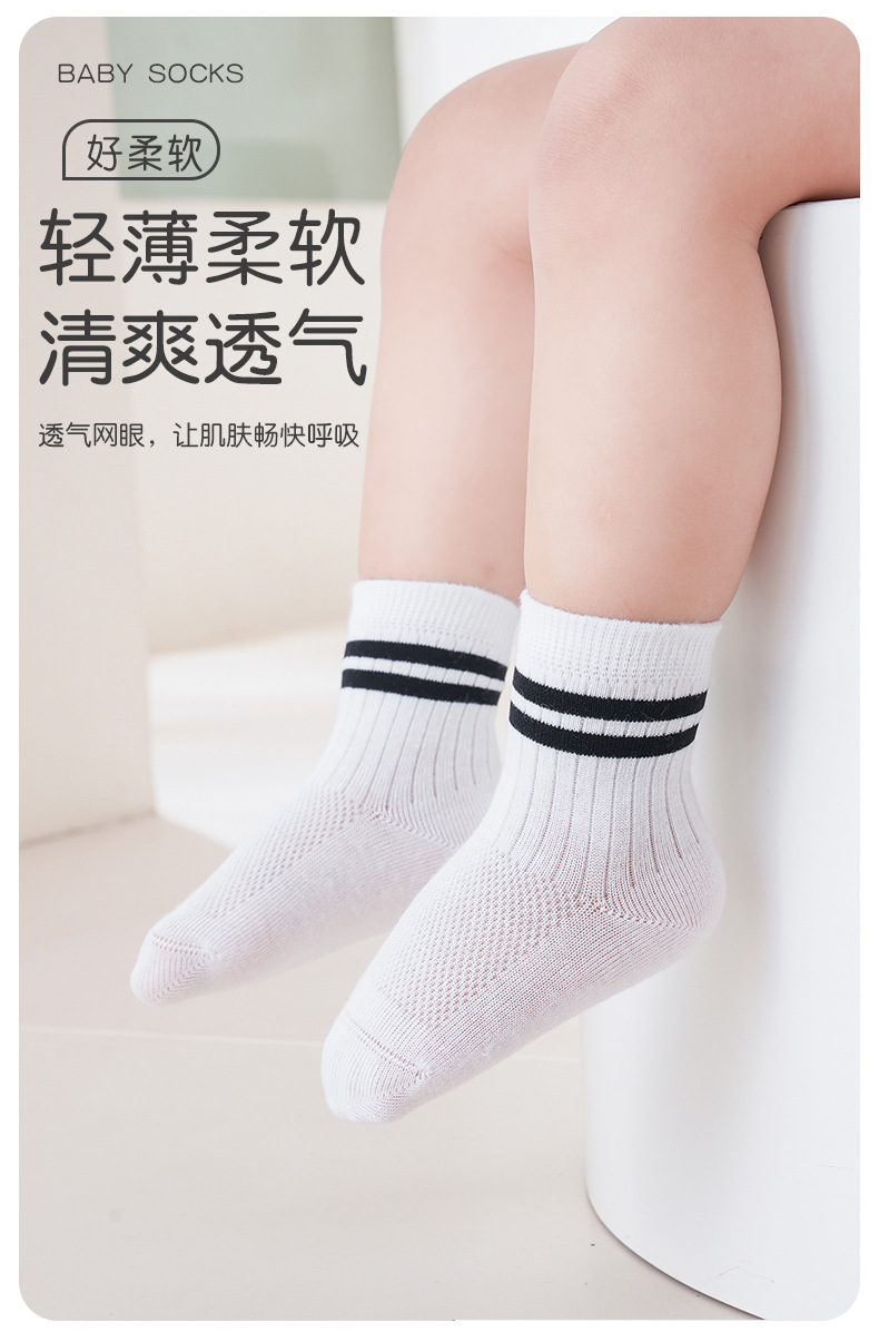 Sunseeker Yujia 봄과 여름 새로운 아기 양말 얇은 소년과 소녀 화이트 베이비 여름 메쉬 통기성 미드 튜브 양말