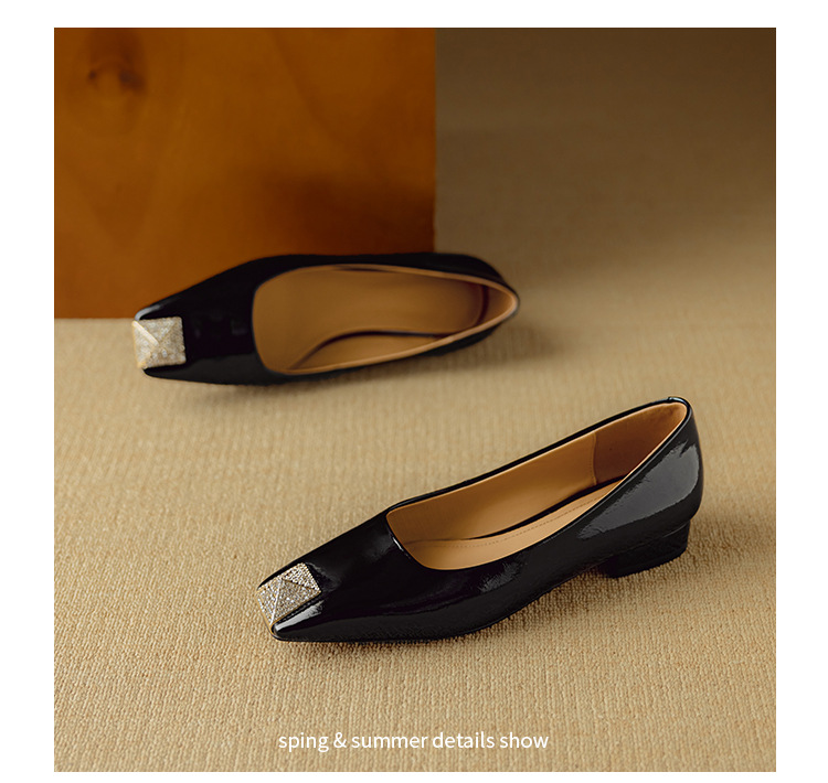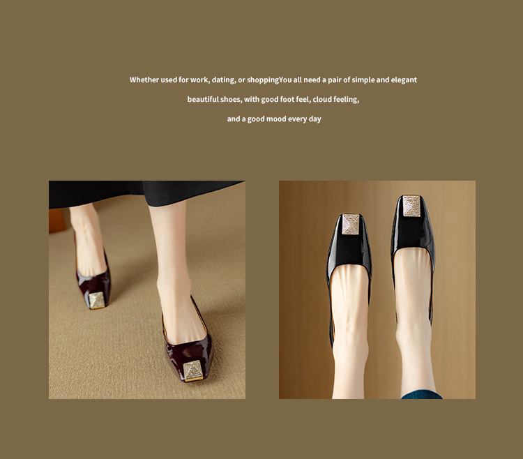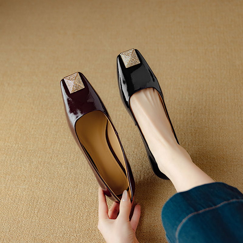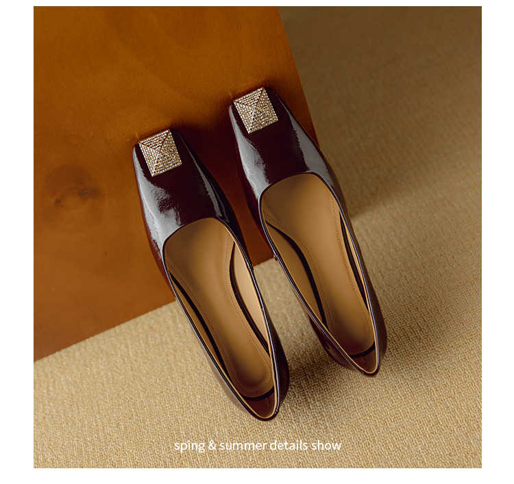 2025 새로운 스웨이드 얕은 입 싱글 레이어 신발 여성 스퀘어 토 플랫 슈즈 여성용 소프트 솔 편안한 디자인 센스 니치 우아한 특허 가죽