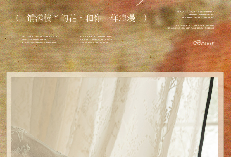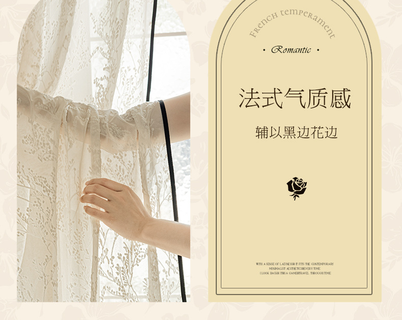 프랑스 아마의 커튼 골동품 빛 투명하고 불투과성 거즈 커튼 Tulle 발코니 베이 창 음영 분위기 검은 가장자리스토어 가기