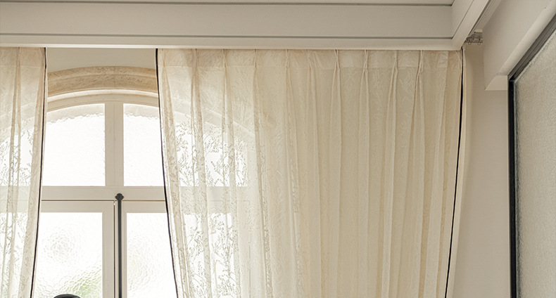 프랑스 아마의 커튼 골동품 빛 투명하고 불투과성 거즈 커튼 Tulle 발코니 베이 창 음영 분위기 검은 가장자리