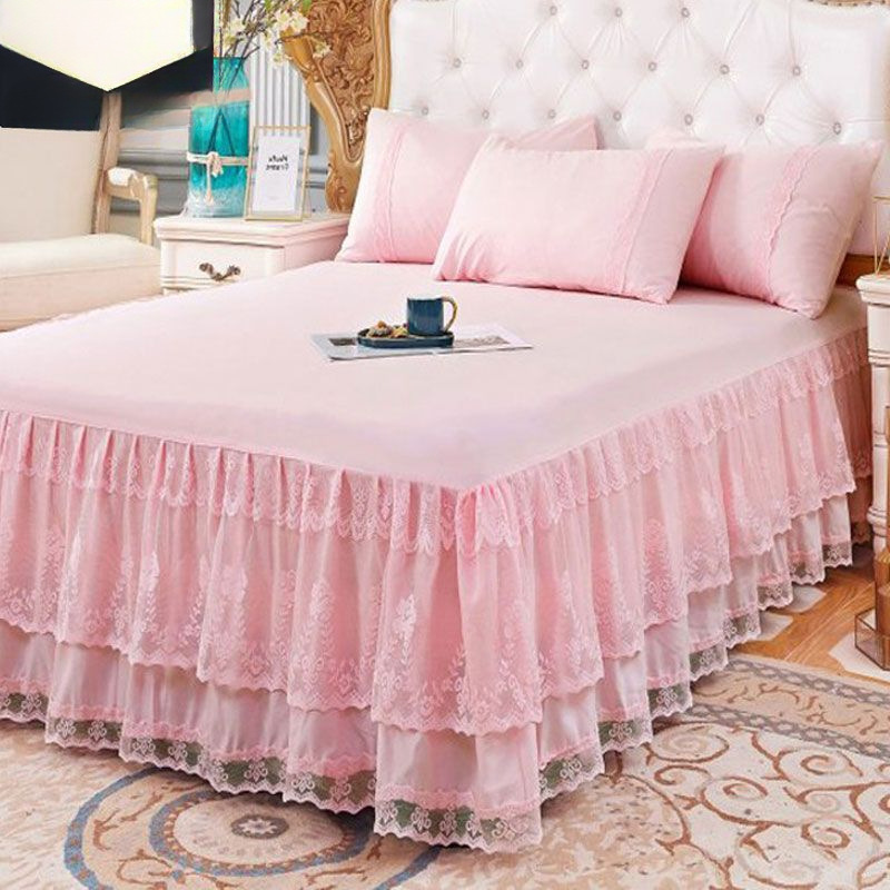 침대 스커트 싱글 피스 침대보 스커트 레이스 엣지 인터넷 레드 스타일 가정용 1.8x2m 침대 모자 투인원 포시즌