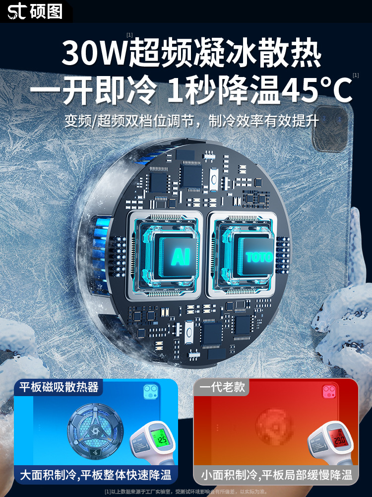 • 30W 오버클럭 [태블릿 전용 모델] 초대형 냉각판❄이중 속도 조정❄매우 빠른 냉각