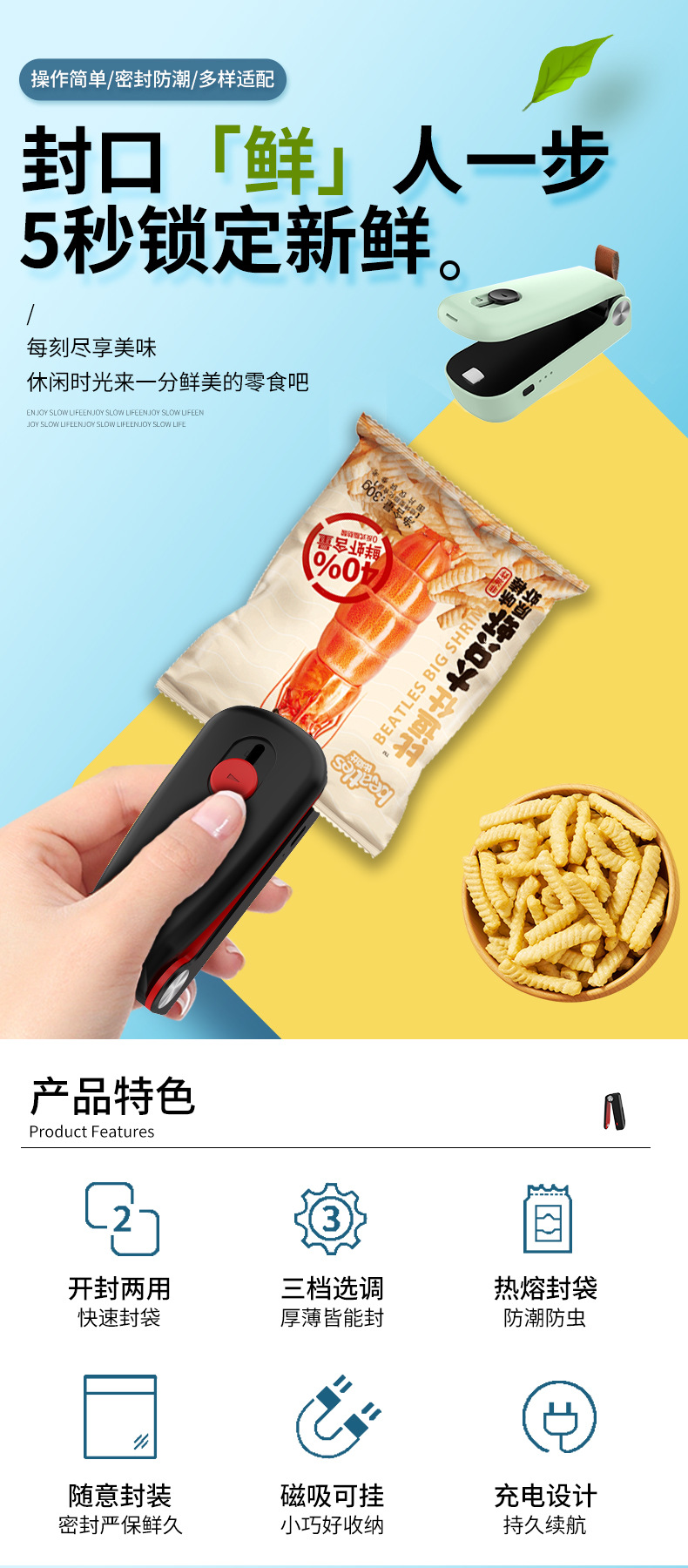 국경 간 밀봉기 소형 가정용 스낵 밀봉기 비닐봉투 플라스틱 밀봉 충전식 열 밀봉기 식품 밀봉스토어 가기