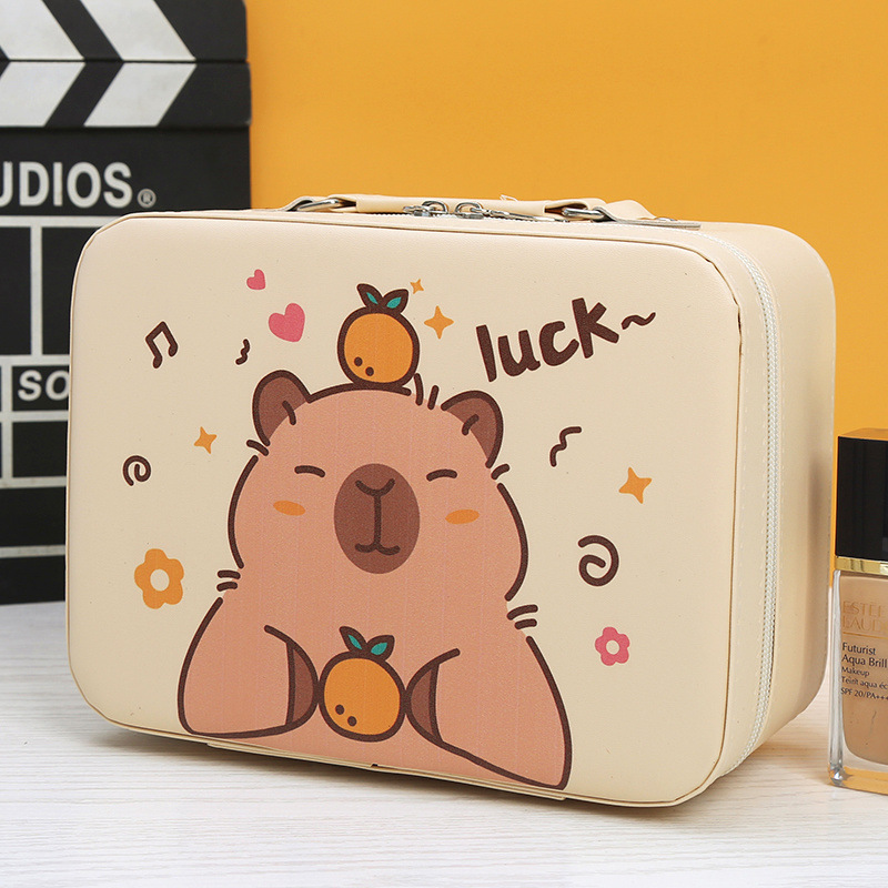 곰 화장품 케이스 동반 선물 상자 휴대용 미니 14 인치 가방 여성 수 짐 3D 만화 학생