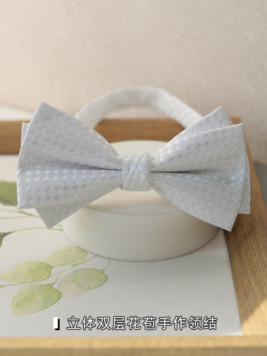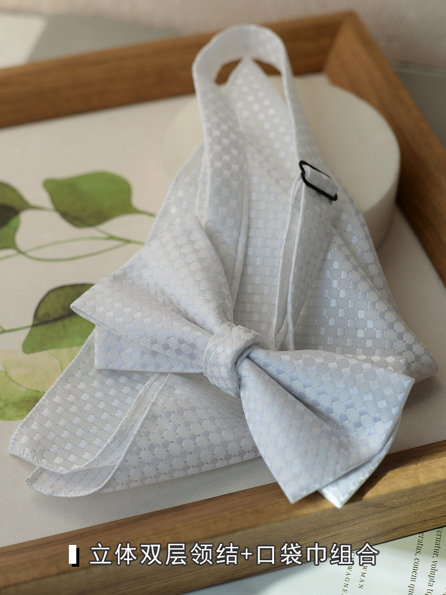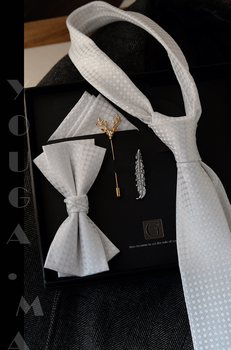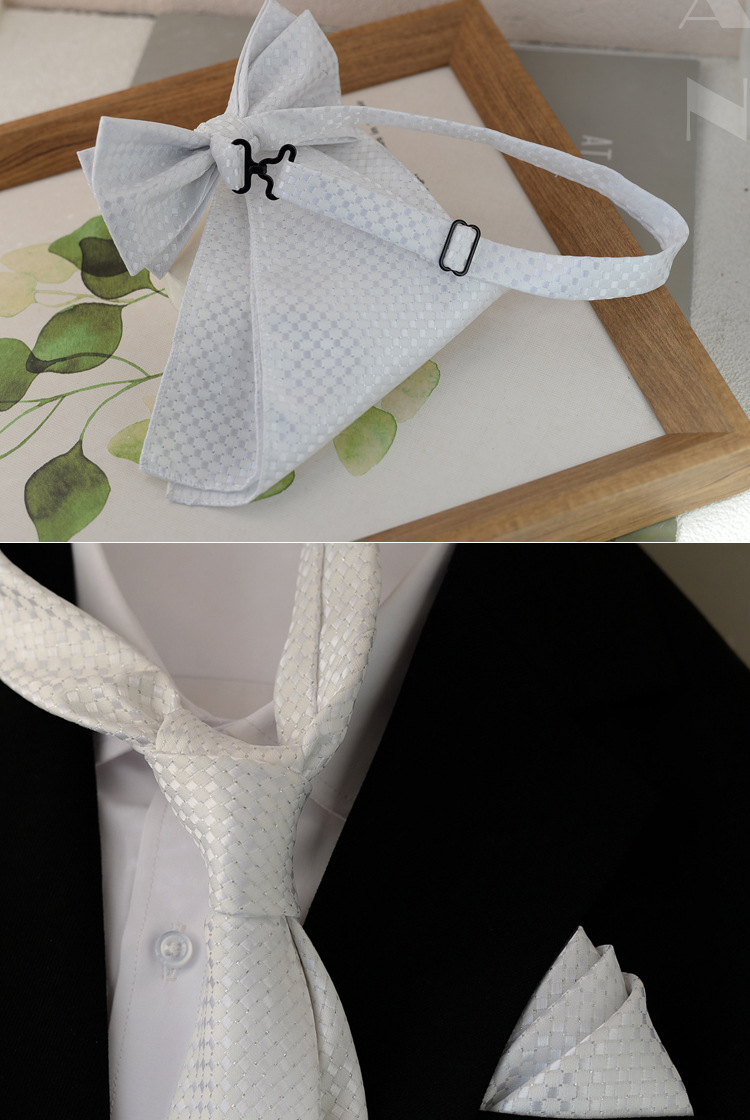 • 심플한 의상/넥타이+나비넥타이+포켓스퀘어, 실버 도트, 우아한 화이트