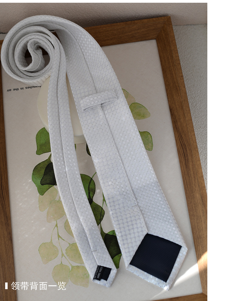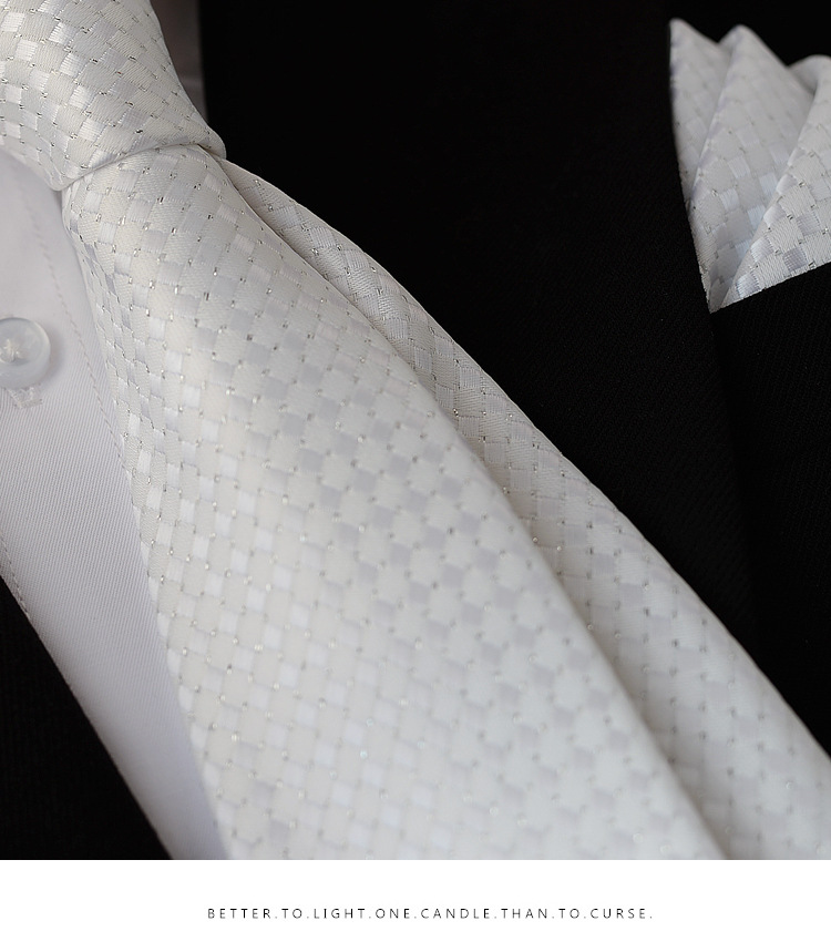 • 넥타이 + 포켓스퀘어/실버 도트 우아한 화이트