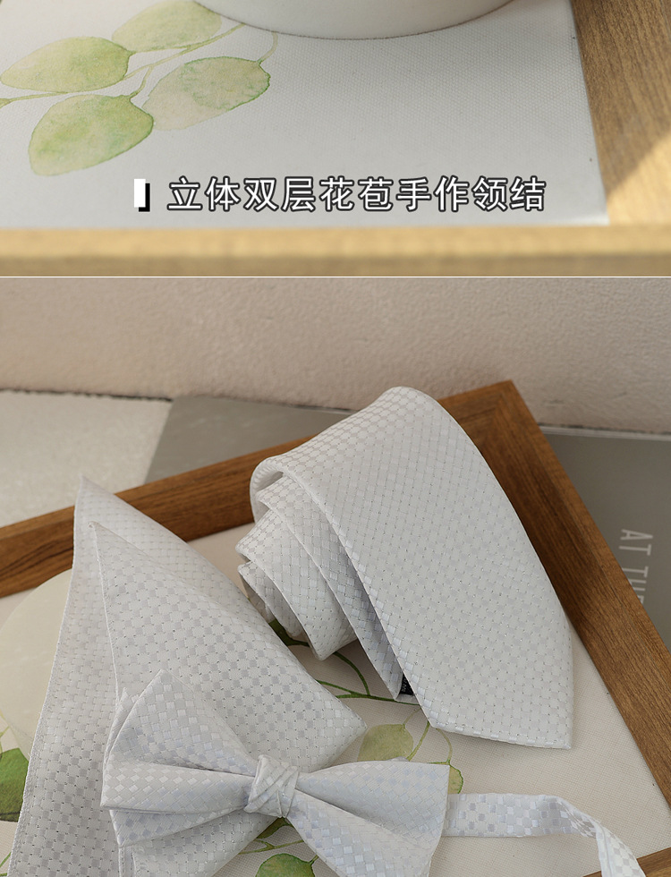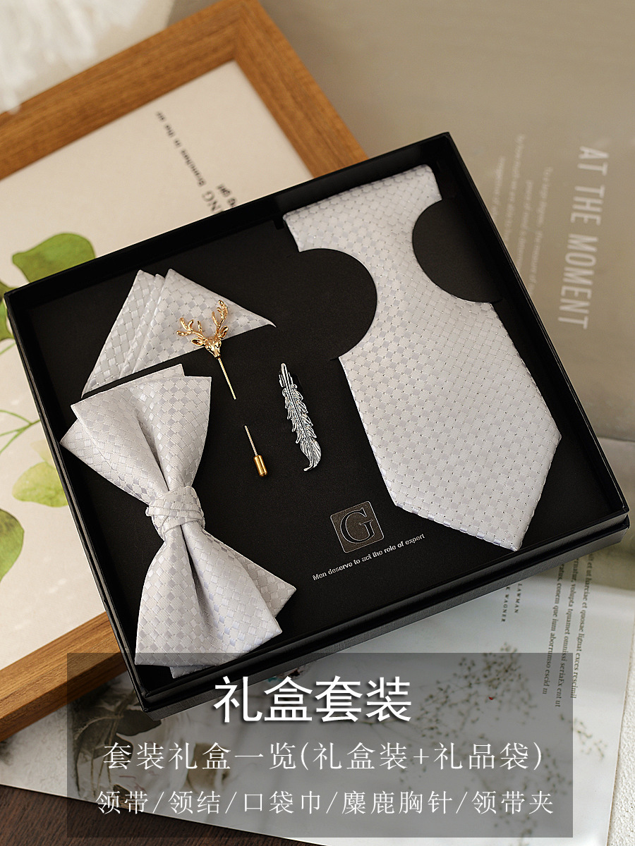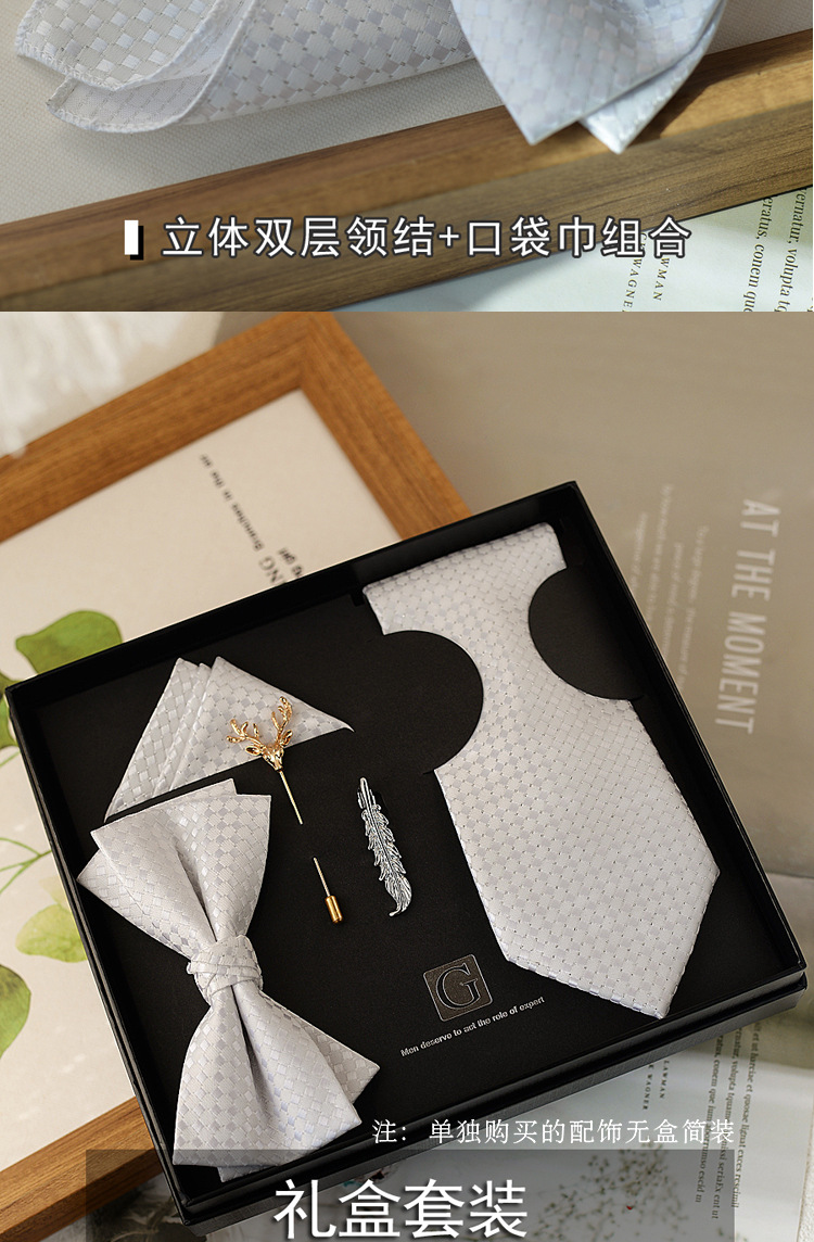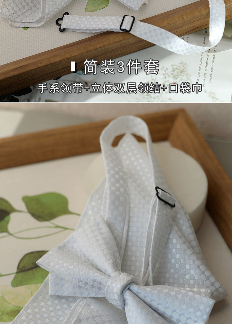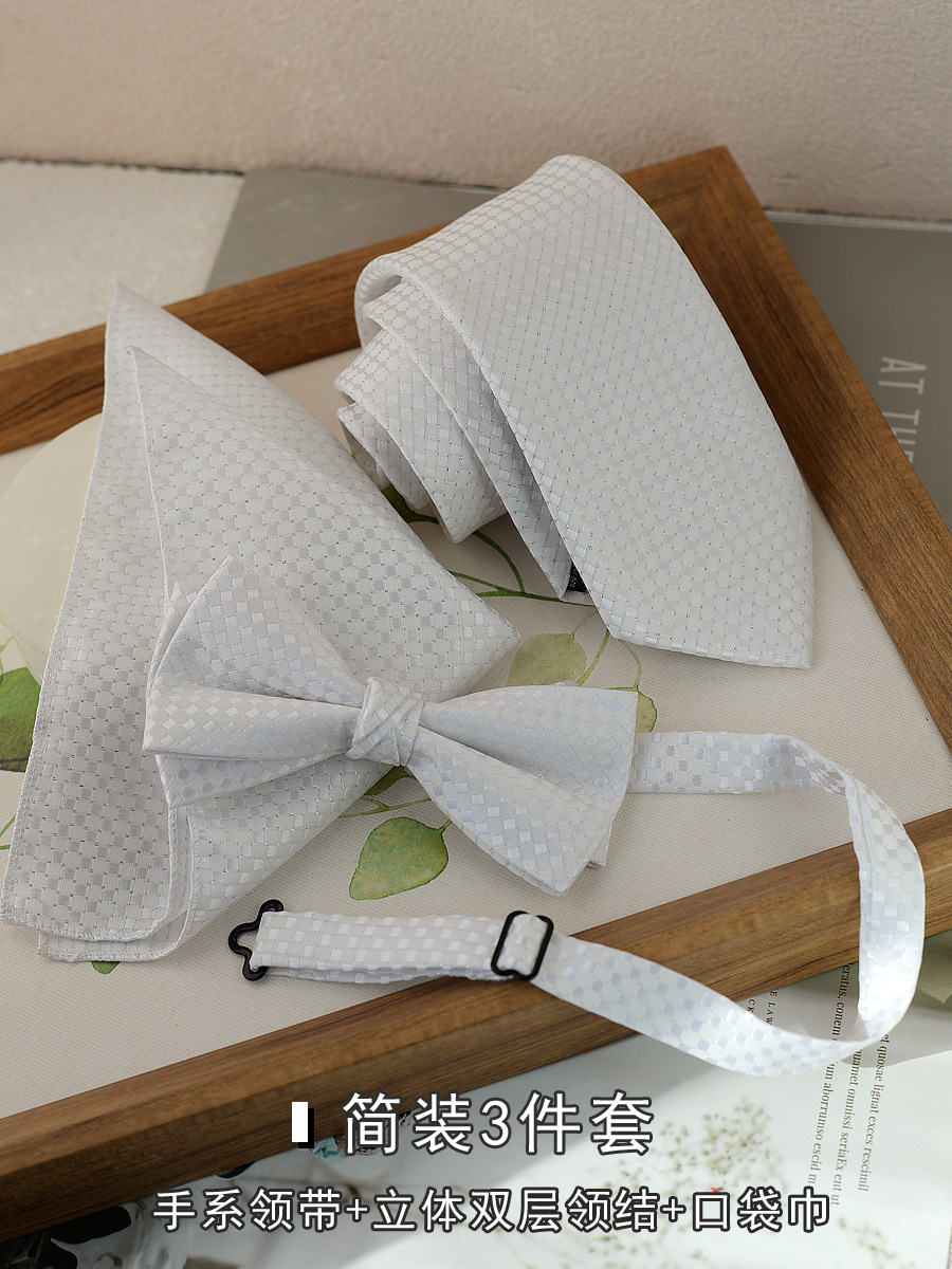 제조업체 크로스보더 화이트 타이 남성 복고풍 비즈니스 캐주얼 하이 엔드 영국 한국 스타일 정장 포켓 스카프 나비 넥타이 안감