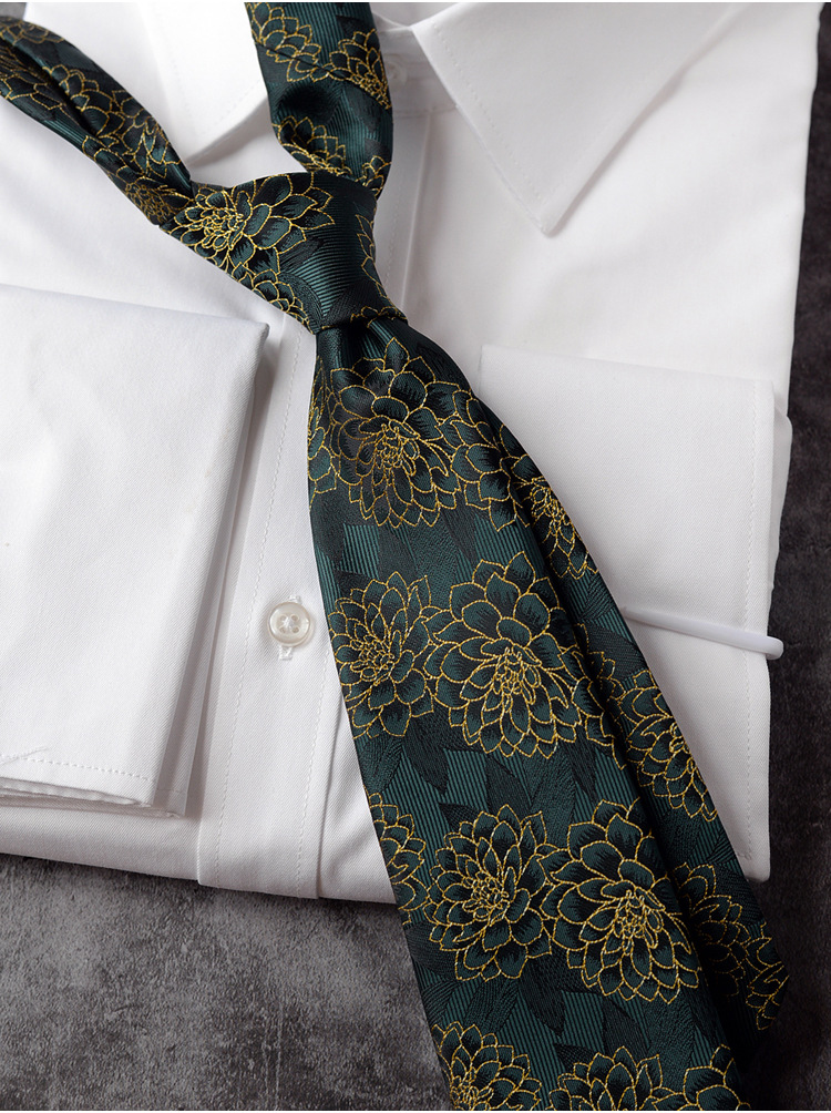 • y9 짙은 녹색 게상 꽃 손 넥타이