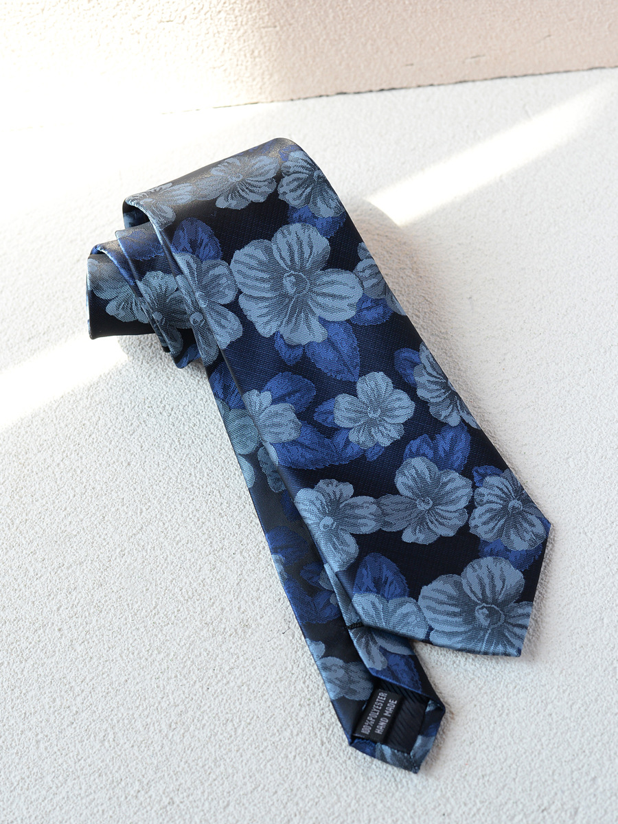 • y2 진한 파란색 작은 꽃 무늬 핸드 타이
