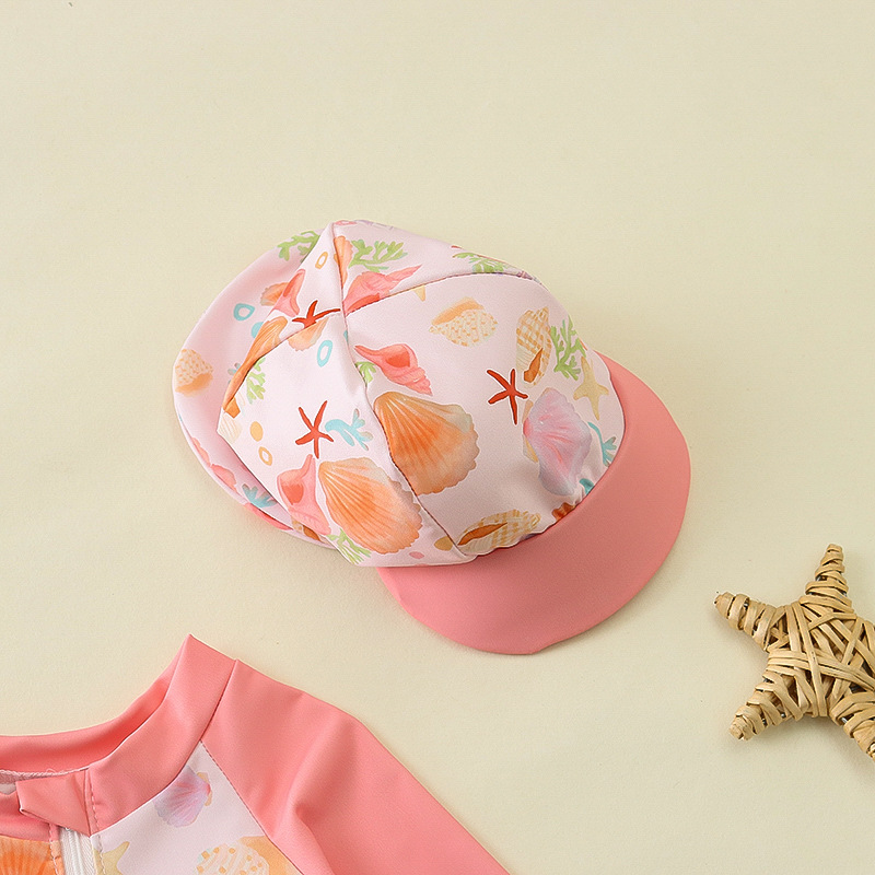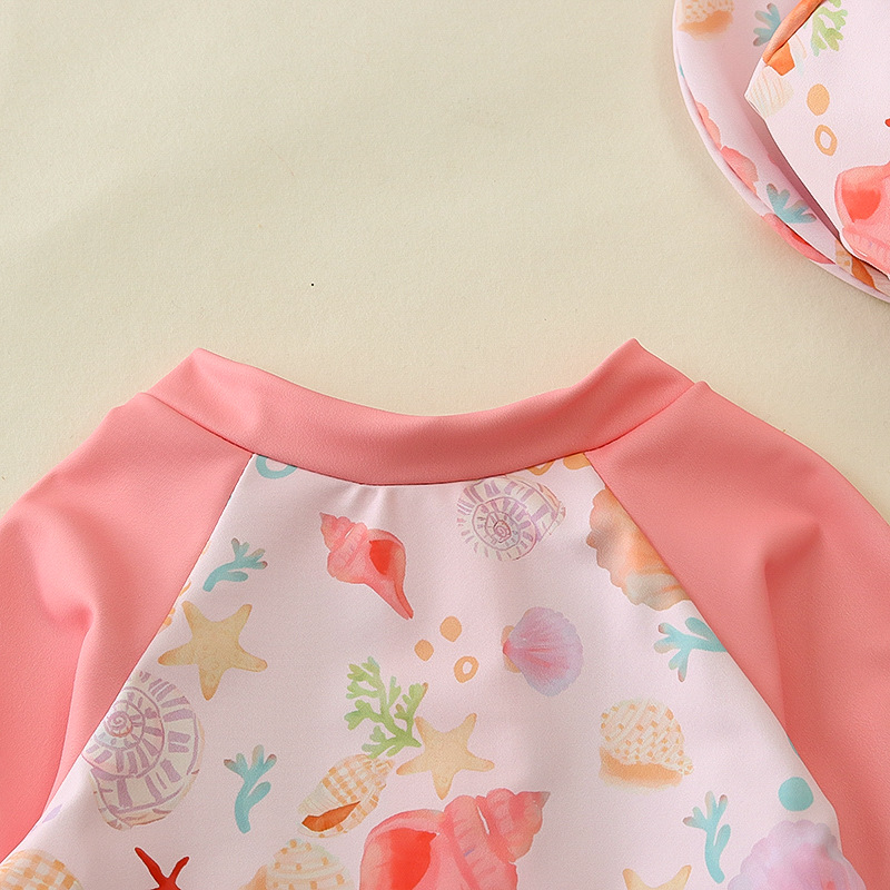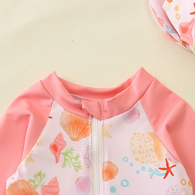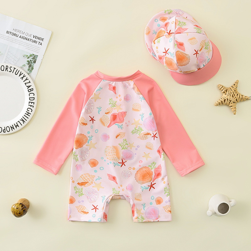 어린이 의류 여학생 쉘 전체 인쇄 맞춤법 슬리브 수영복 아기 소녀의 선 스크린 긴 소매 수영복 어린이 수영복 모자