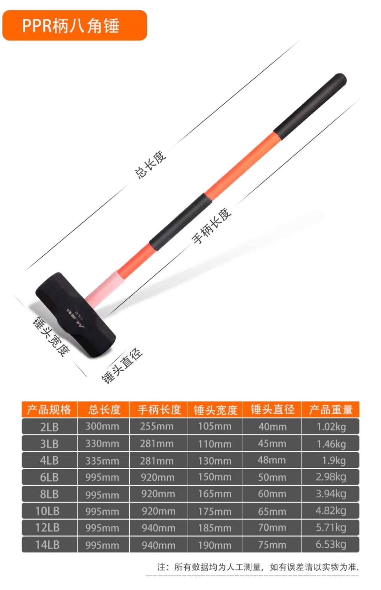 • 14파운드 PPR 핸들 팔각형 해머(높은 탄력성)