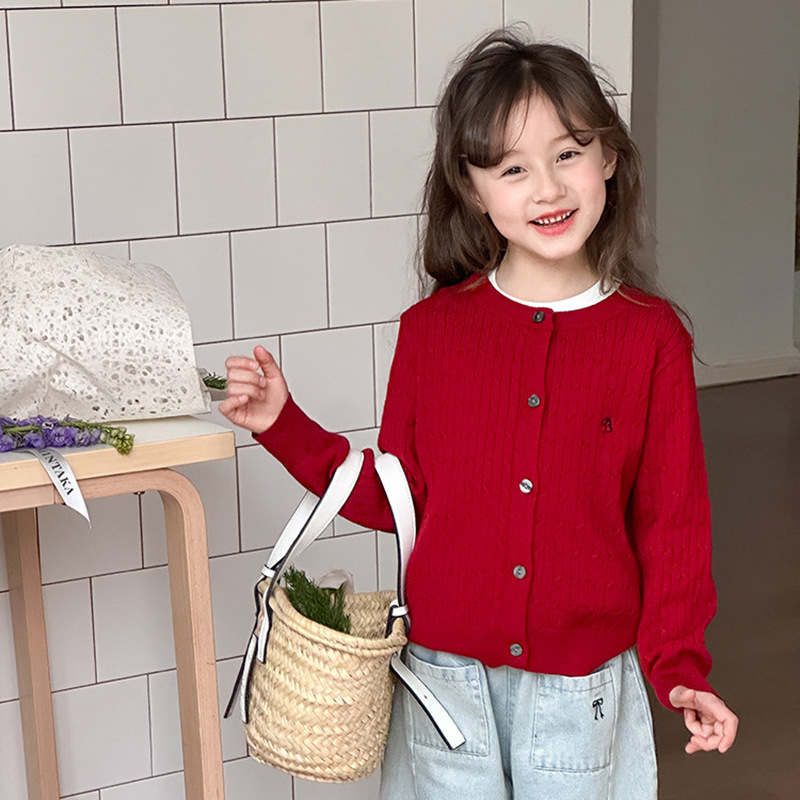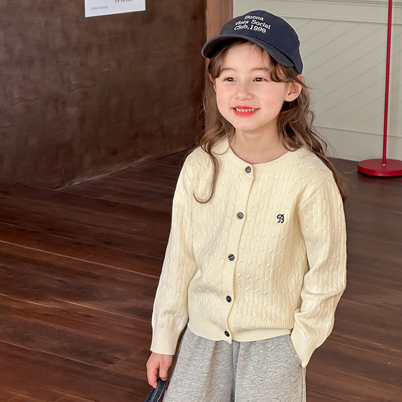 Elmo Beibei 어린이 2025 봄 코어 스펀 원사 트위스트 스웨터 소년과 소녀 패션 자수 니트 카디건 재킷스토어 가기