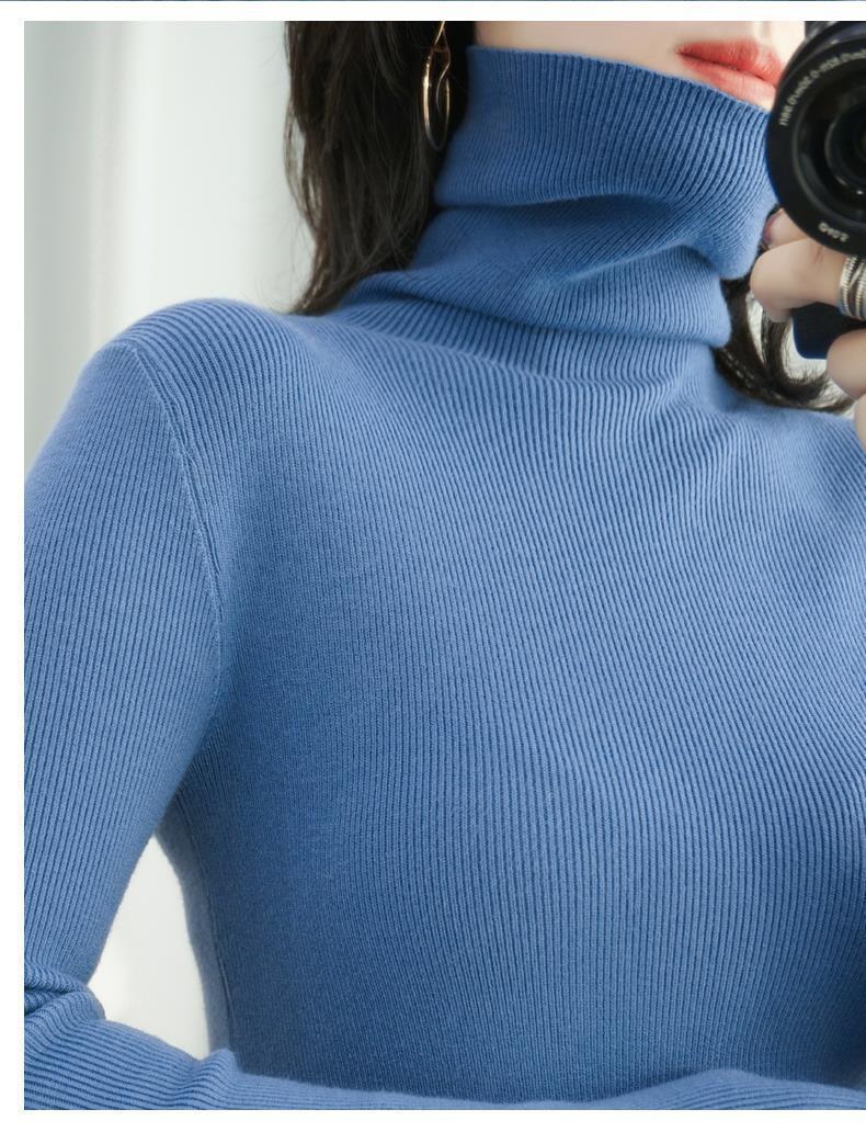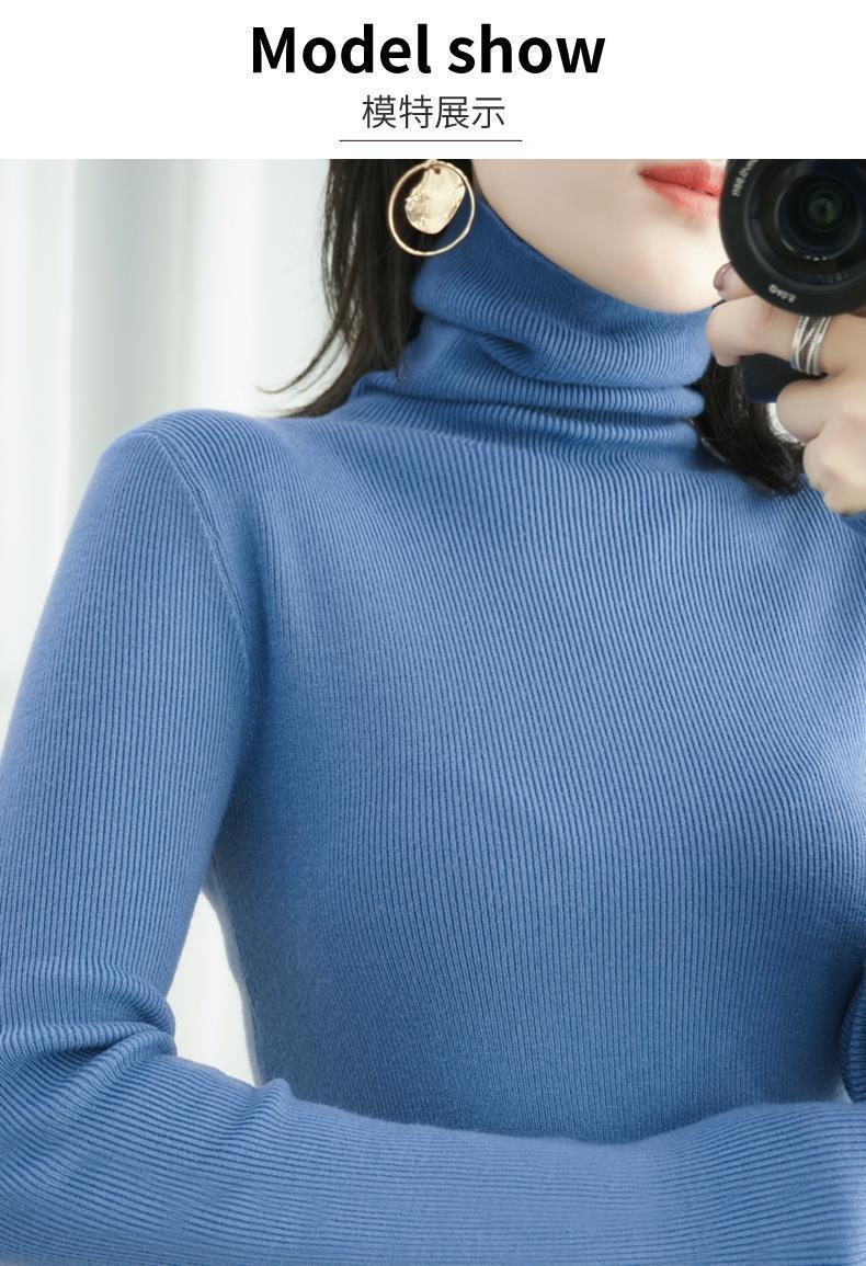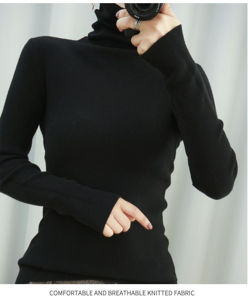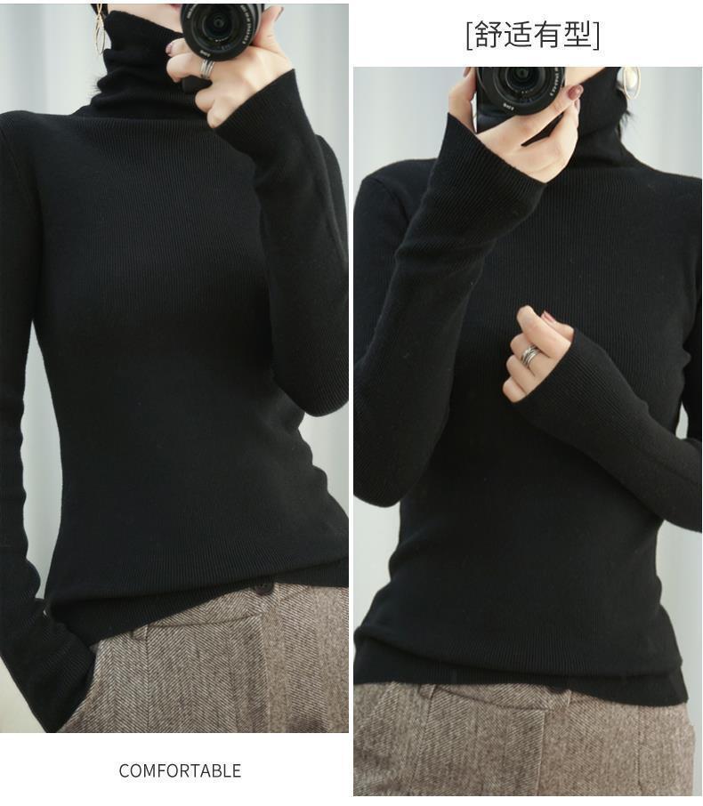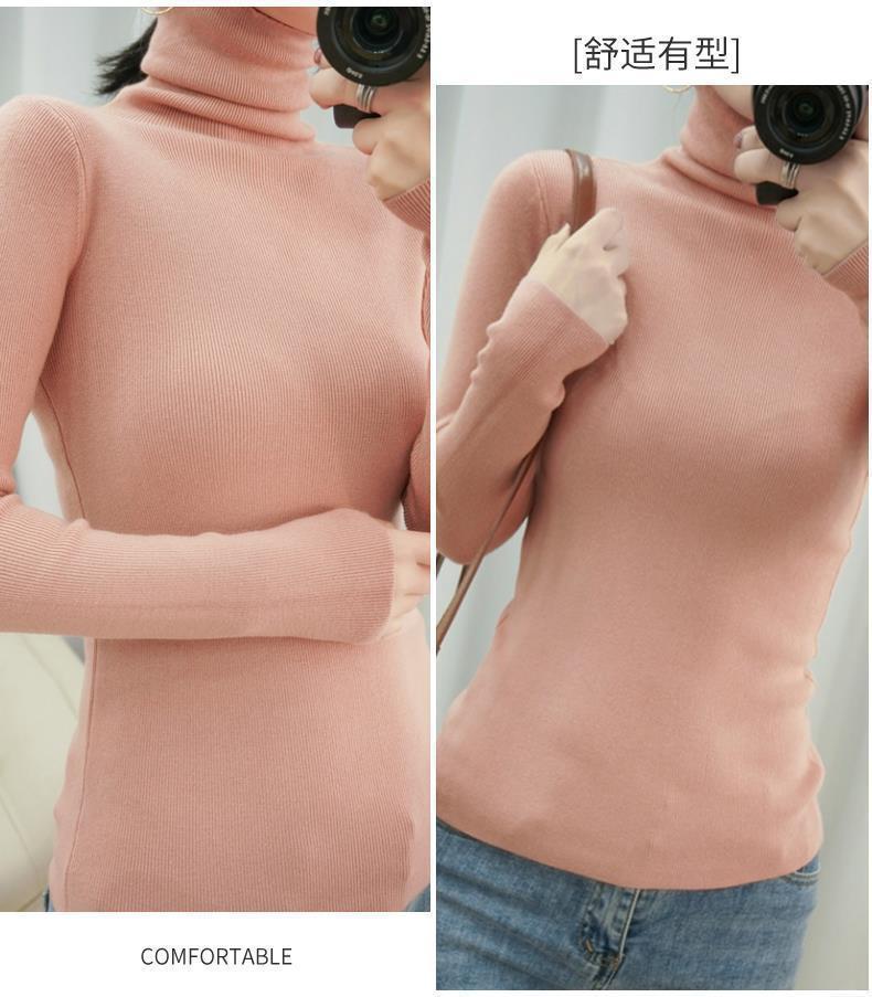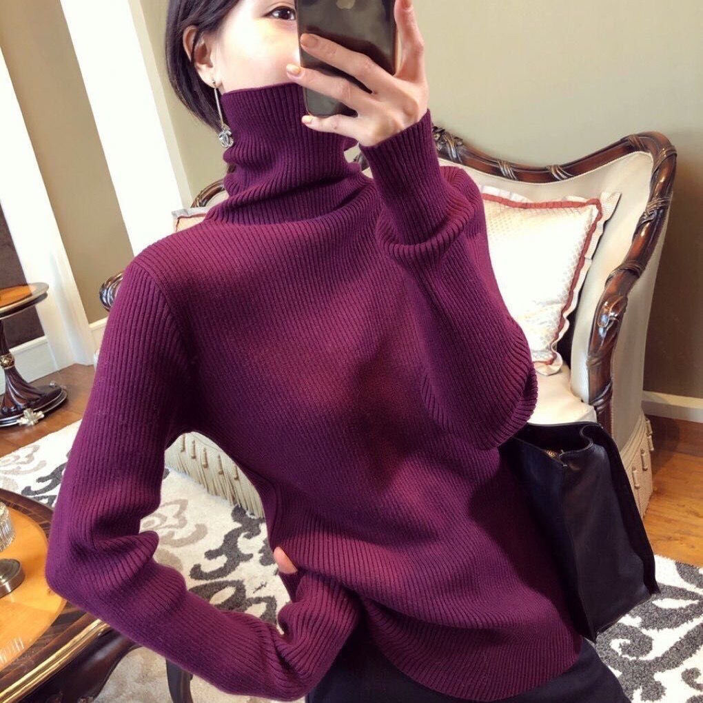 가을과 겨울 착용 포장 터틀넥 스웨터 여성용 풀오버 슬리밍 아우터 착용 내부 긴 소매 슬림 핏 니트베이스 셔츠스토어 가기