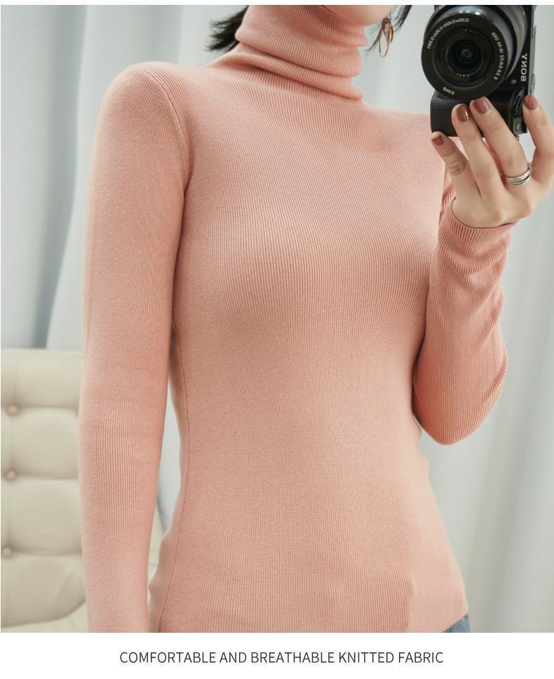가을과 겨울 착용 포장 터틀넥 스웨터 여성용 풀오버 슬리밍 아우터 착용 내부 긴 소매 슬림 핏 니트베이스 셔츠