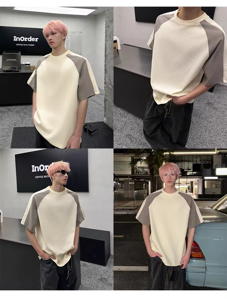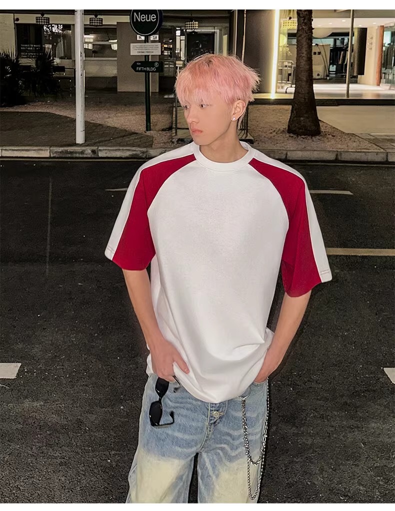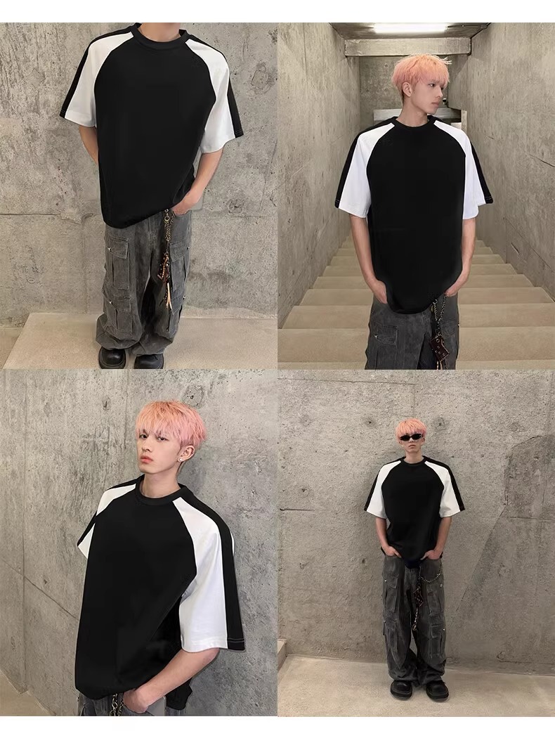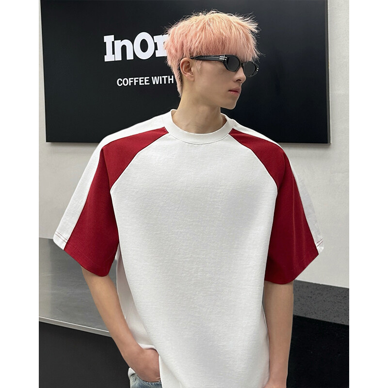 NASA 아메리칸 스타일 반팔 티셔츠 남성 봄과 여름 새로운 패션 브랜드 하이 스트리트 Planky Handsome 스포츠 스타일 컬러 매칭 Raglan 슬리브 탑