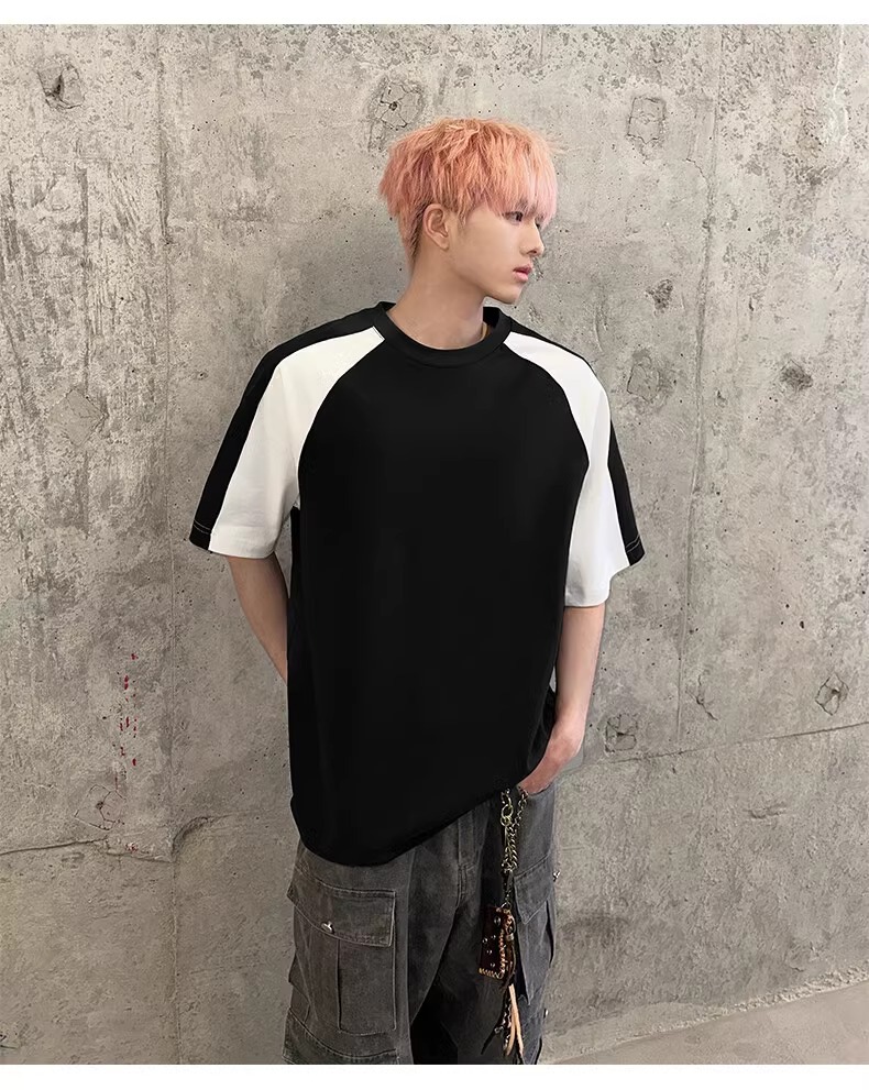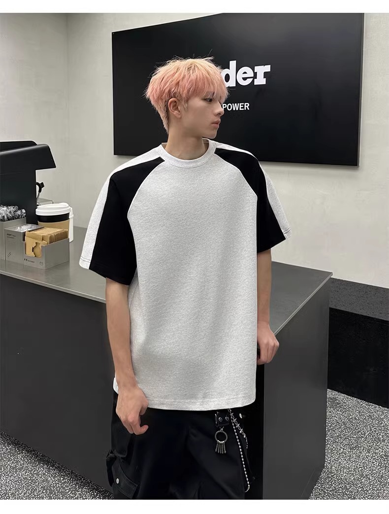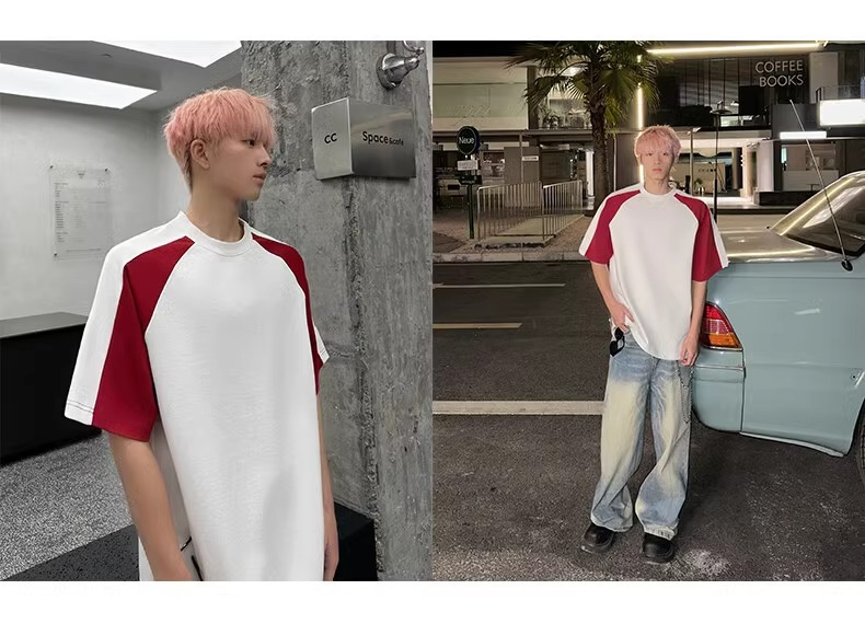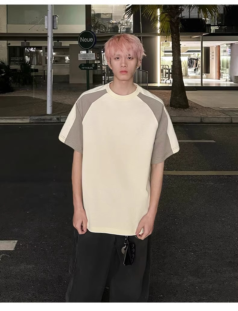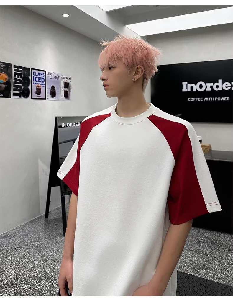 NASA 아메리칸 스타일 반팔 티셔츠 남성 봄과 여름 새로운 패션 브랜드 하이 스트리트 Planky Handsome 스포츠 스타일 컬러 매칭 Raglan 슬리브 탑